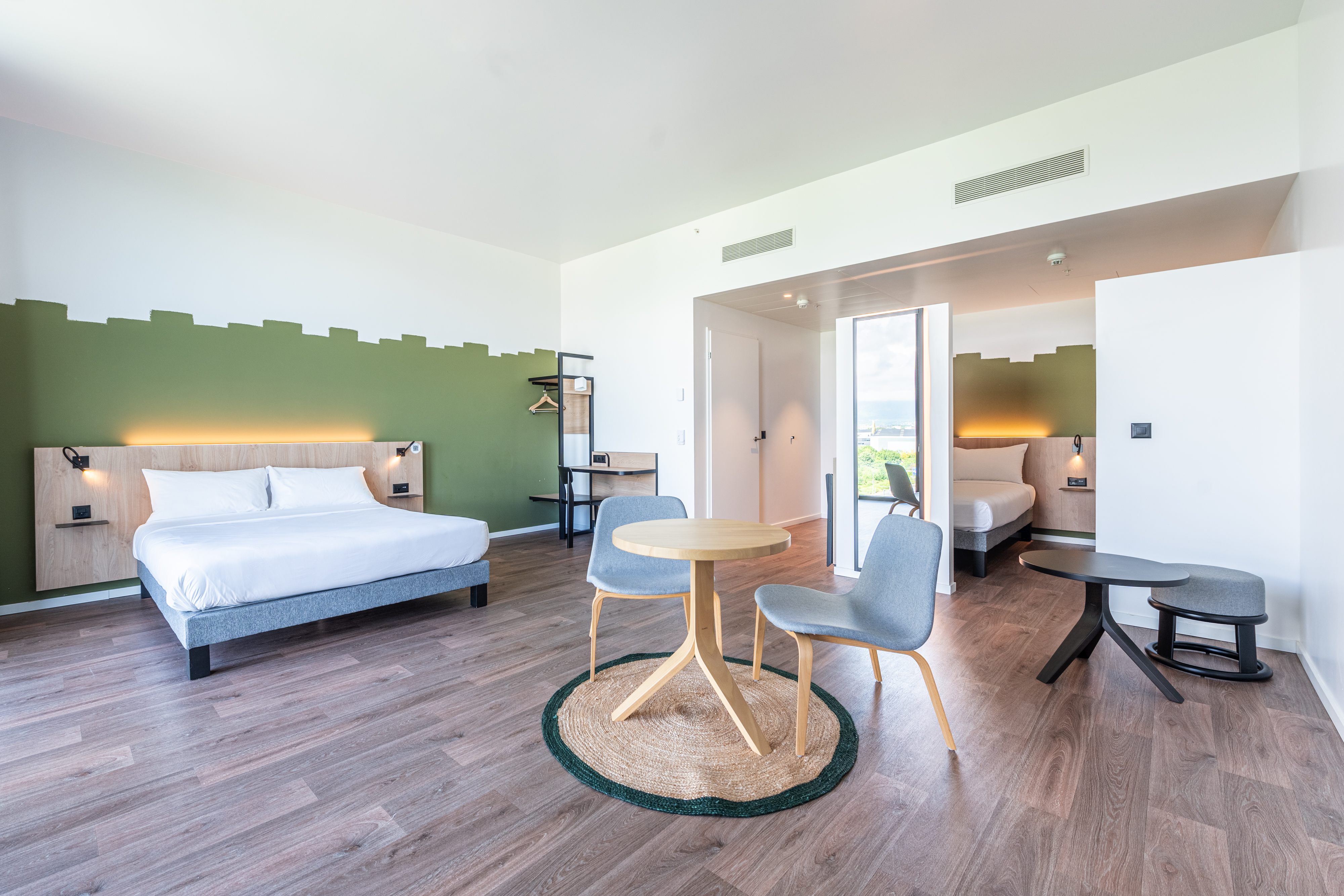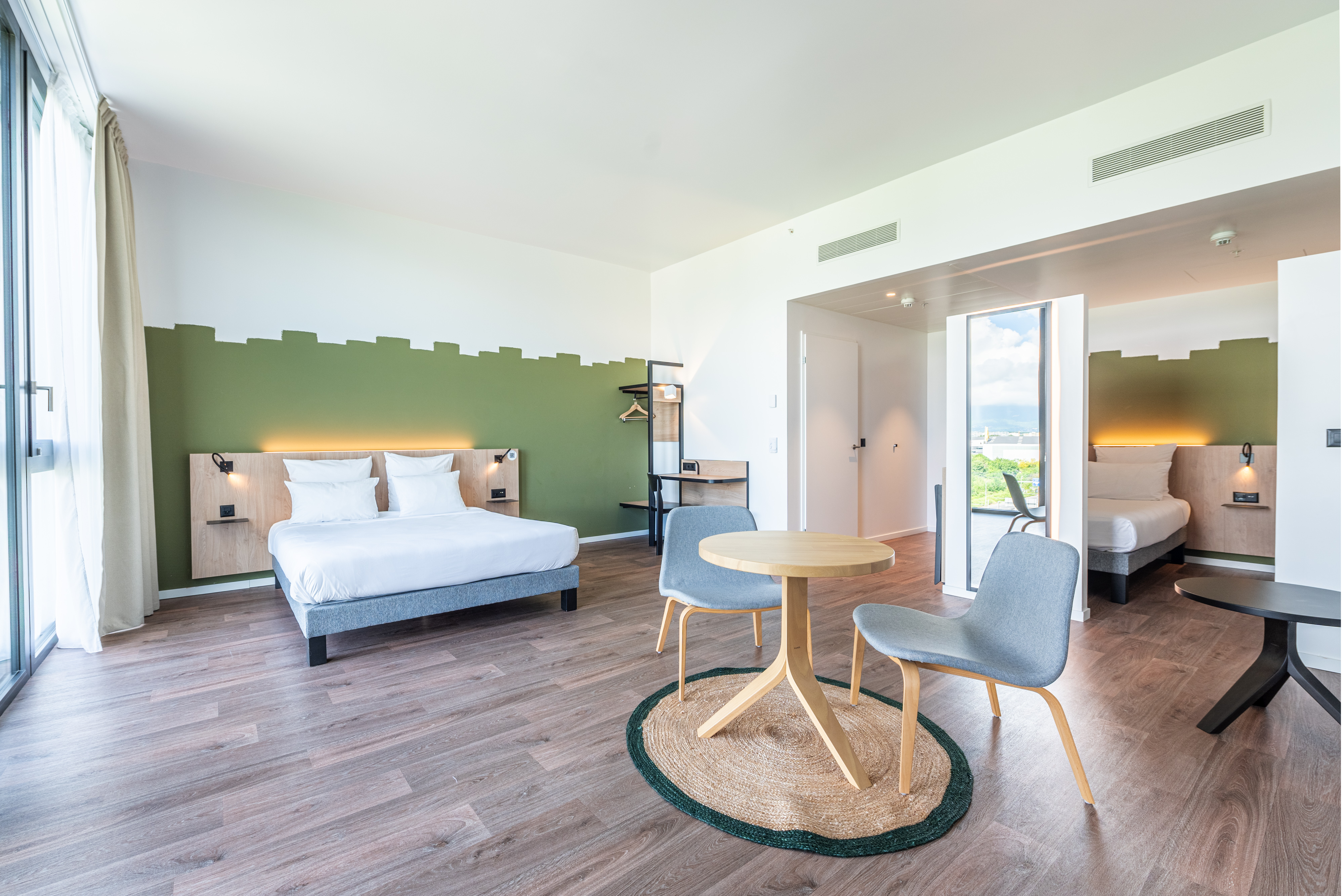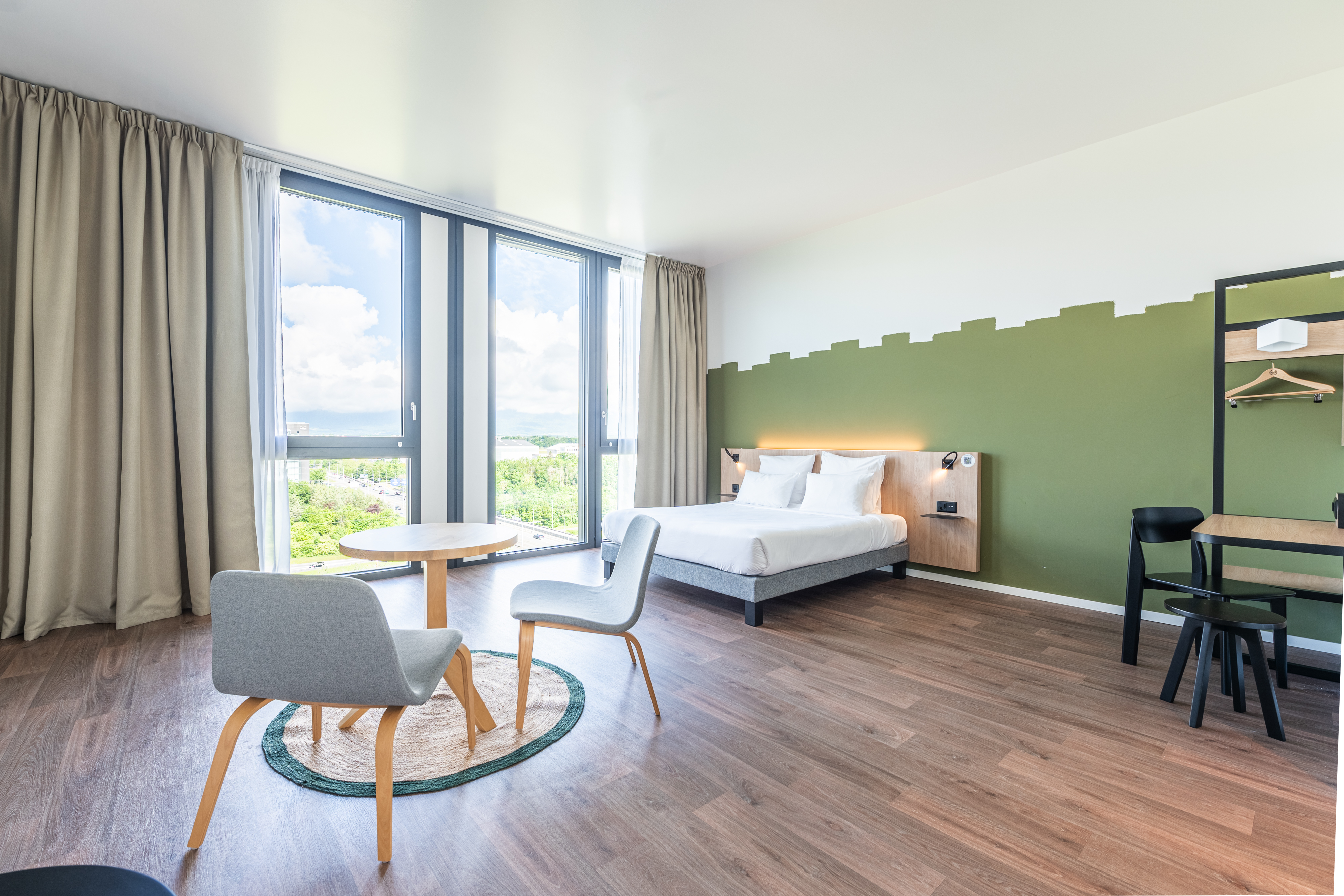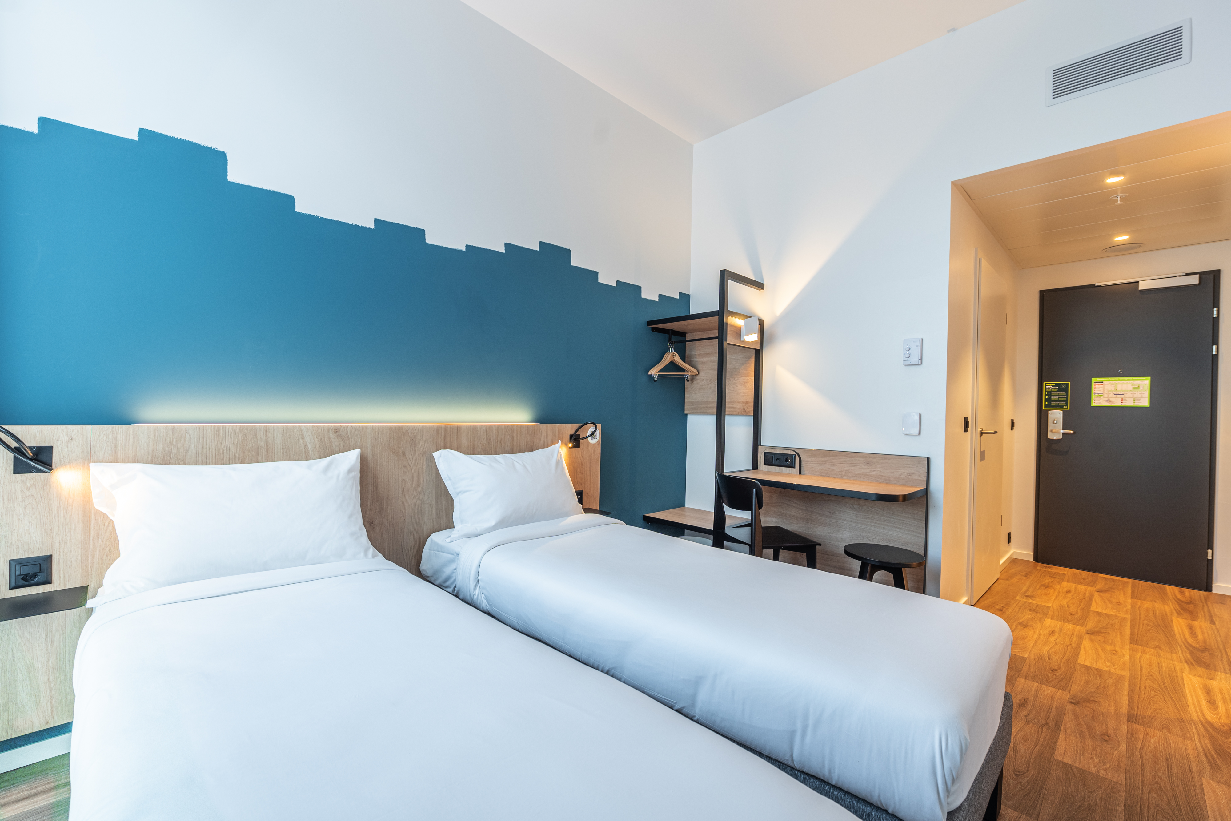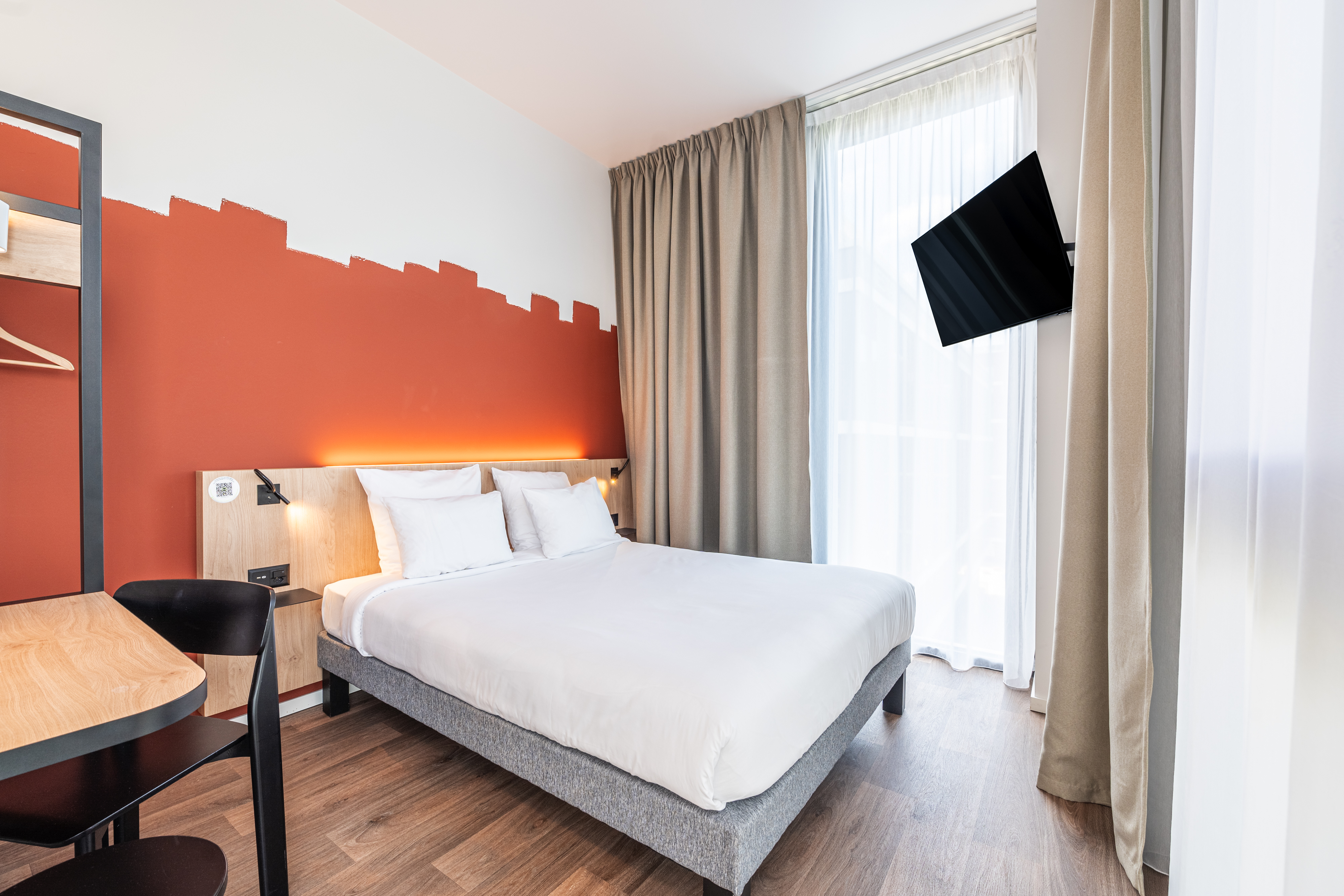 Unser B&B HOTEL Geneva Airport ist ideal gelegen, wenn Sie lediglich auf der Durchreise sind oder in Genf einen Zwischenstopp einlegen möchten. Das Hotel befindet sich gerade einmal 2 km vom Flughafen Genf und 4 km vom Bahnhof Cornavin entfernt und verfügt über 288 klimatisierte und schallisolierte Zimmer, in denen Sie wunderbar entspannen können. Neben einem modernen Design verfügen all unsere Zimmer zudem über hochwertige Bultex Matratzen und maßgeschneiderte Bettwäsche. Vom eigenen Badezimmer mit Haartrockner über einen Kleiderschrank Kleiderständer bis hin zu internationalen Steckdosen und USB-Anschlüssen fehlt es dabei an nichts. So verfügen all unsere Zimmer sogar über einen Flachbildfernseher mit Chromecast.