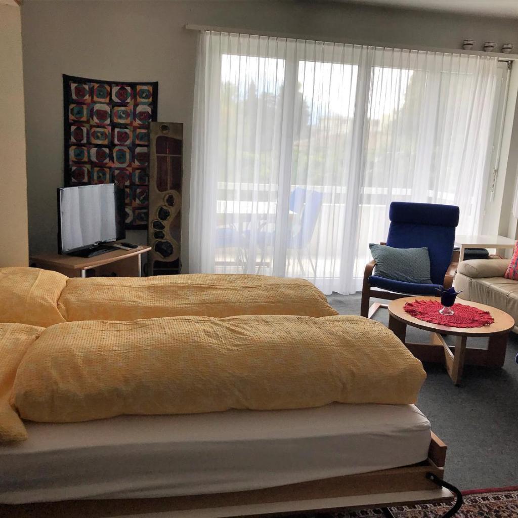 Diese Ferienwohnung mit einem Balkon und Bergblick bietet 1 Schlafzimmer, ein Wohnzimmer, einen Flachbild-TV, eine gut ausgestattete Küche mit einem Kühlschrank und einem Ofen sowie 1 Badezimmer mit einer Badewanne oder Dusche.