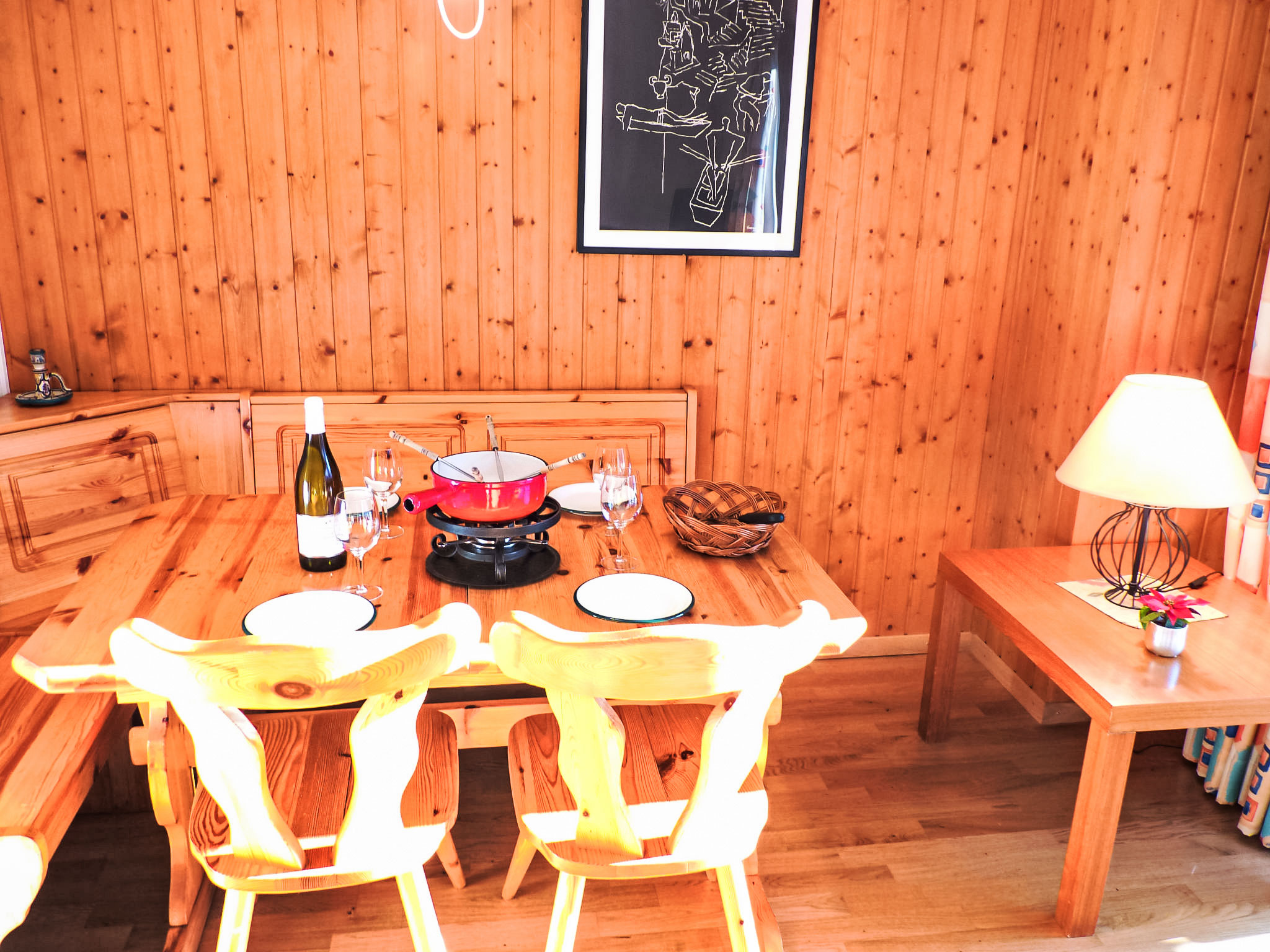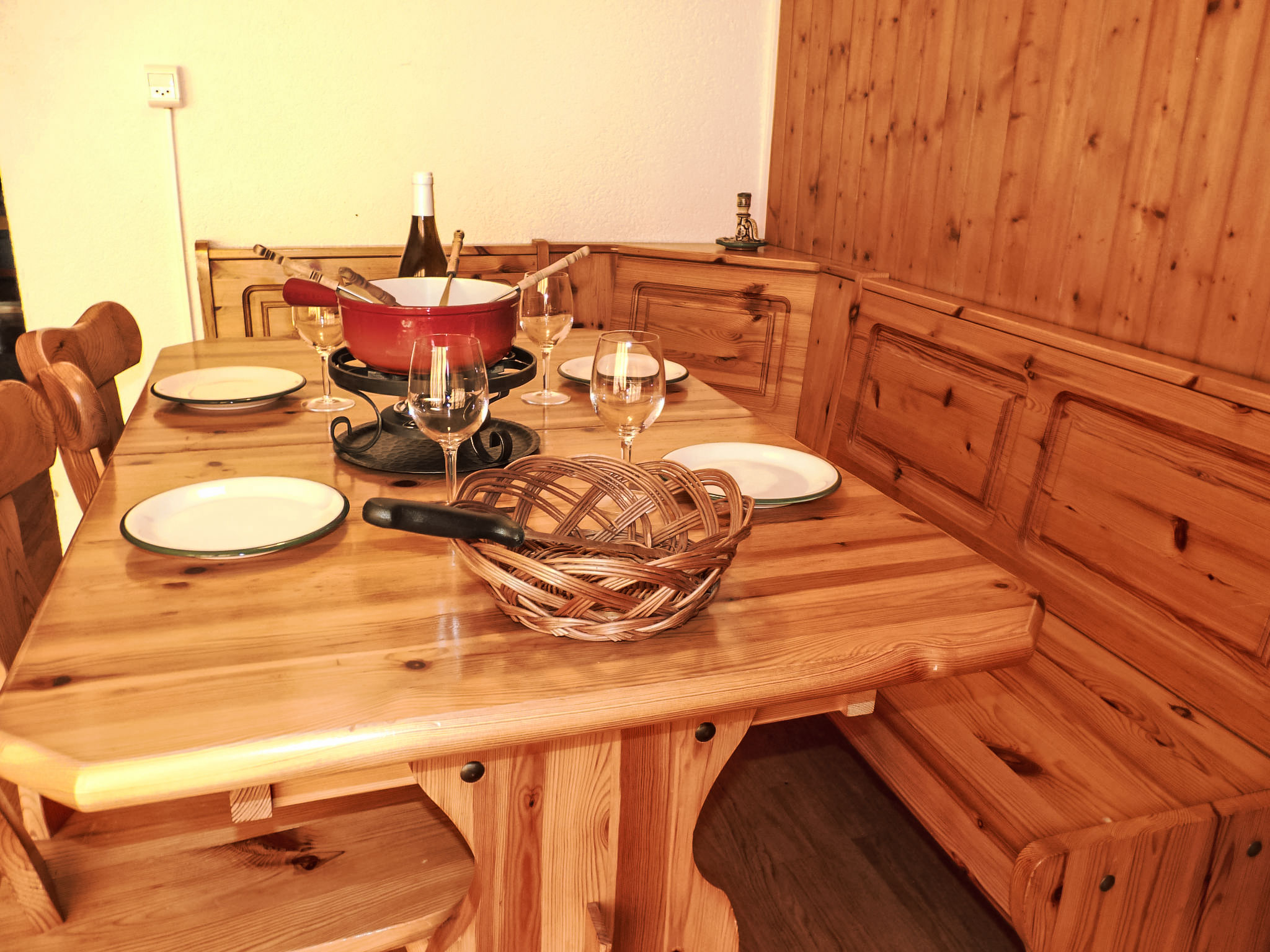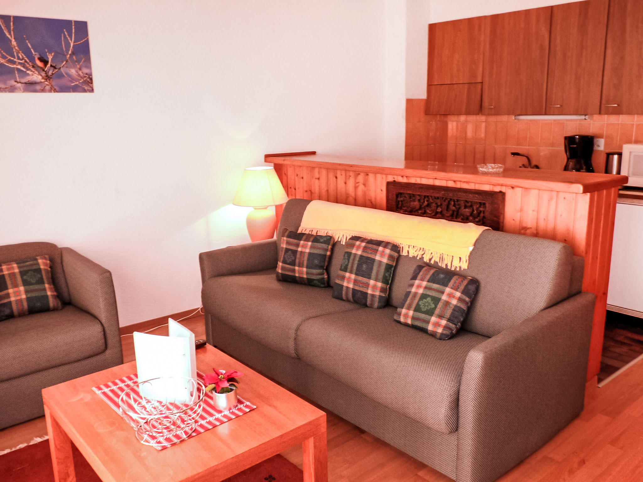 "Tourbillon B 27", 2-Zimmer-Wohnung 45 m2 im 2. Stock, Südwestlage. Komfortabel und geschmackvoll eingerichtet: Wohn-/Esszimmer mit 1 Doppeldiwanbett (1 x 160 cm, Länge 190 cm), Kabel-TV und Stereoanlage. Ausgang zum Balkon. 1 Zimmer mit 2 Betten (90 cm). Kochnische (3 Kochplatten, Backofen, Geschirrspüler, Mikrowelle, elektrische Kaffeemaschine, Kapseln für die Kaffeemaschine (Nespresso) extra, Fondue Set (Chinoise, Käse)). Dusche/WC. Balkon 8 m2, Südlage. Terrassenmöbel, Liegestühle (2), Abstellkammer. Schöne Sicht auf die Berge. Zur Verfügung: Bügeleisen. Internet (WLAN, gratis). Parkplatz. Bitte beachten: Nichtraucher-Unterkunft. Maximal 1 kleines Haustier/Hund erlaubt.