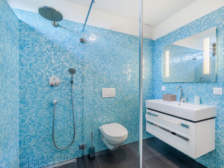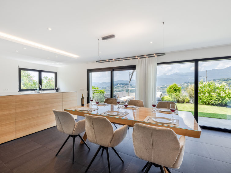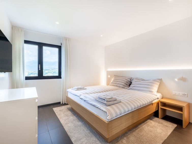 4-Zimmer-Villa auf 2 Stockwerken, Südwestlage. Geräumig und hell, teilweise renoviert im Jahre 2022, komfortabel und modern eingerichtet: grosses Wohn-/Esszimmer mit Esstisch, Kabel-TV, Internationale TV-Sender, Flachbildschirm, Radio und Stereoanlage. Ausgang zur Terrasse, zum Gartensitzplatz. Offene Küche (Backofen, Geschirrspüler, 5 Induktionskochplatten, Toaster, Wasserkocher, Mikrowelle, elektrische Kaffeemaschine, Kapseln für die Kaffeemaschine (Nespresso) extra, Dampfgarer). Sep. WC. Fussbodenheizung. Obergeschoss: 1 Doppelzimmer mit 1 Doppelbett (2 x 90 cm, Länge 200 cm), Dusche/WC. 1 Doppelzimmer mit 1 Doppelbett (2 x 90 cm, Länge 200 cm). 1 Doppelzimmer mit 1 Doppelbett (2 x 90 cm, Länge 200 cm), Kabel-TV und Internationale TV-Sender (Flachbildschirm). Dusche/WC. Grosse Terrasse. Terrassenmöbel, Liegestühle (4), Sitzplatz. Herrliche Panoramasicht auf die Berge, die Landschaft und die Ortschaft. Zur Verfügung: Kinderhochstuhl, Babybett bis 2 Jahre, Haartrockner. Bitte beachten: Nichtraucher-Haus. Feuerlöscher. Bitte beachten: Keine Haustiere, - Video on Demand. Weinkühler mit 1 Temperaturzone (Weiss- und Rotwein) neu in der Küche integriert. NL-00007199