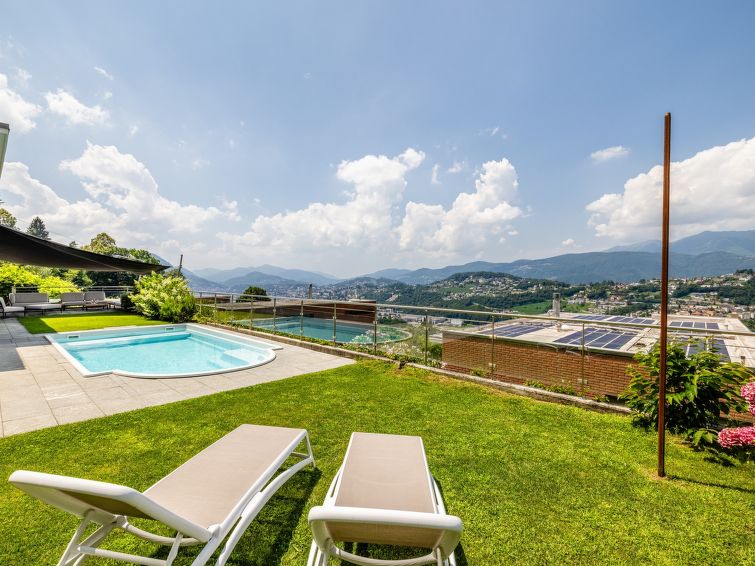Davesco-Soragno 5 km von Lugano: Kinderfreundliches Einfamilienhaus "Villa Girandola", auf 2 Stockwerken, umgeben von Bäumen und Wiesen. Am Ortsrand, ruhige, sonnige, erhöhte Lage im Villenviertel, 30 m vom Waldrand, in einer Sackgasse, Richtung Westen. Zur Alleinbenutzung: Grundstück, Liegewiese, wunderschöner Garten zum Entspannen, Schwimmbad eckig, beheizt (100 - 140 cm tief, saisonale Verfügbarkeit: 01.Apr. - 30.Sep.) mit Innentreppe und Rollladenabdeckung. Sitzplatz, Terrasse, Gartenmöbel, Grill. Im Hause: Wireless LAN, Zentralheizung, Waschmaschine, Wäschetrockner. Zufahrt bis zum Haus. Parkplatz (für 2 Autos) beim Haus. Bushaltestelle "Soragno" 500 m, Bahnstation "Lugano" 6 km. Nahe gelegene Sehenswürdigkeiten: Swissminiatur, Melide, Spash and Spa, Rivera, Foxtowm, Medrisio. Bekannte Skigebiete sind gut erreichbar: Airolo, Nara, Campo Blenio. Bekannte Seen in der Umgebung sind gut erreichbar: Lago di Lugano, Lago di Como, Lago Maggiore. Bitte beachten: Fahrzeug empfohlen. Geeignet für Familien. E-Ladestation Typ: CP-T2 - Typ 2 plug.