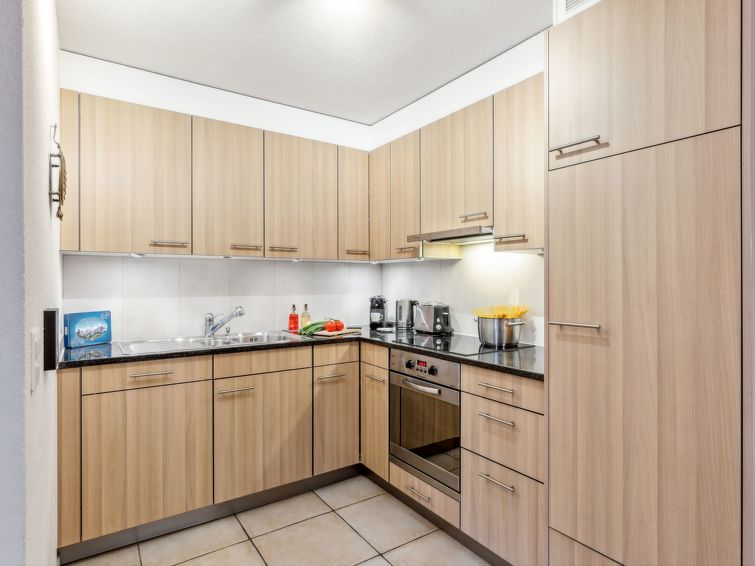 "Fortuna Apt.M", 3-Zimmer-Wohnung 78 m2, im Erdgeschoss. Geräumig und hell, modern und geschmackvoll eingerichtet: Wohn-/Esszimmer mit Esstisch, Kabel-TV, Radio und CD. 1 Zimmer mit 1 Doppelbett (1 x 160 cm, Länge 200 cm). 1 Zimmer mit 1 Bett (90 cm, Länge 200 cm), 1 x 2 Etagenbetten (90 cm, Länge 200 cm). Offene Küche (Backofen, Geschirrspüler, 4 Induktionskochplatten, Toaster, Wasserkocher, elektrische Kaffeemaschine, Kapseln für die Kaffeemaschine (Nespresso) extra, Racletteofen, Fondue Set (Chinoise, Käse)). Bad/WC, Dusche/WC. Grosse Terrasse. Terrassenmöbel, Gartengrill (mobil), Liegestühle. Sehr schöne Sicht auf die Berge. Zur Verfügung: Haartrockner. Internet (Wireless LAN, gratis). Bitte beachten: geeignet für Familien. Nichtraucher-Unterkunft.