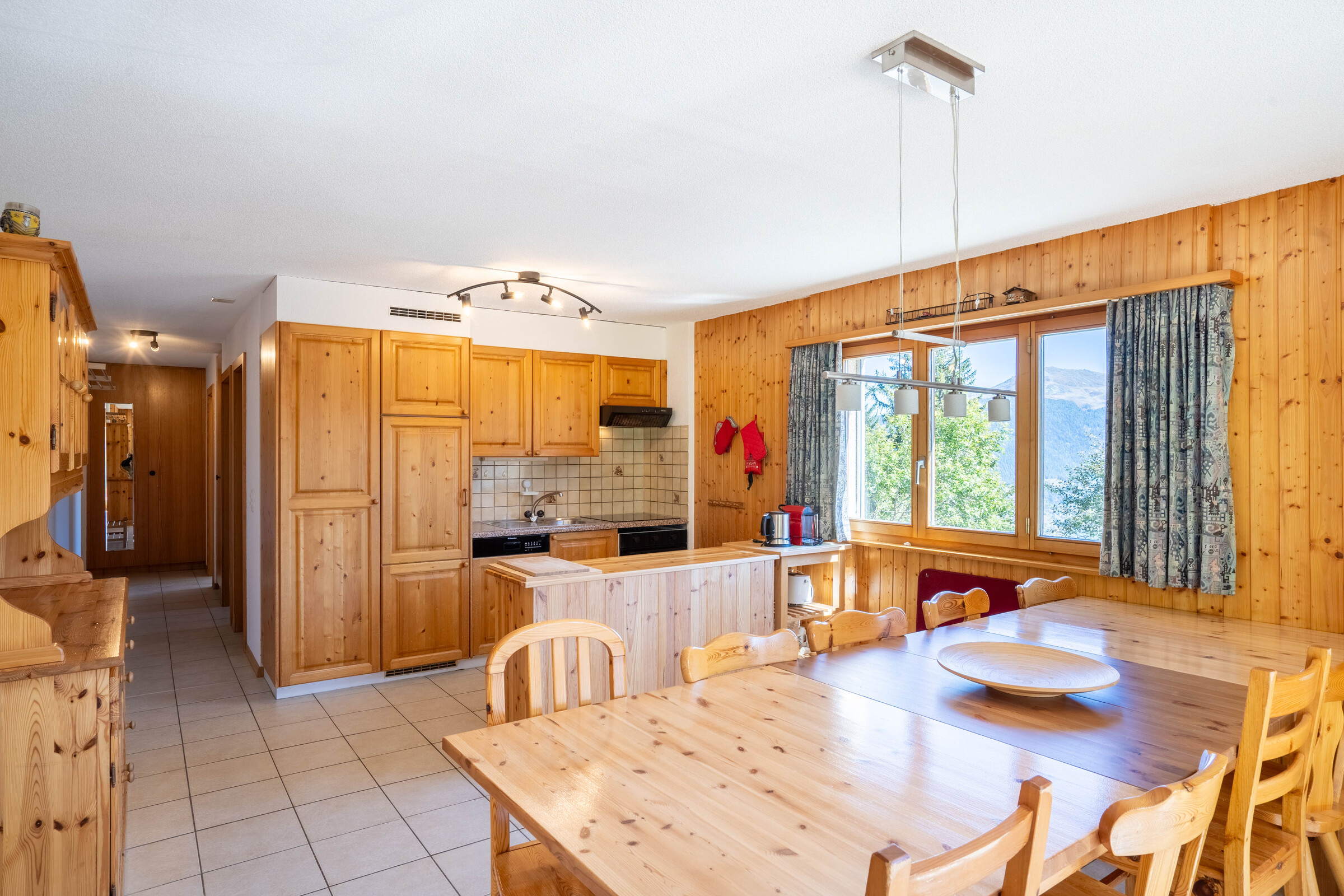 Das Wohngebäude "Grand Vue" befindet sich auf der ersten Ebene der Station Les Collons, in der Nähe des Trabanta-Sessellifts, des Supermarkts und des Restaurants. Das Gebäude genießt eine ruhige Lage. Es ist nach Süden ausgerichtet. Die Waschküche und der Skiraum der Residenz stehen allen Mietern zur Verfügung. Die Skipisten sind von der obersten Etage aus zugänglich. Aussen Parkplätze oder Garage auf Anfrage, gegen Zahlung.Die Wohnung ist eine 5-Zimmer-Wohnung für 10 Personen, die sich im Erdgeschoss des Gebäudes Grand-Vue in Les Collons befindet.Sie verfügt über eine offene Küche: 4 Kochplatten, einen Ofen, einen kleinen Kühlschrank (mit Gefrierteil), einen Geschirrspüler, eine Nespresso Kaffeemaschine, eine Mikrowelle, einen Toaster, einen Wasserkocher, einen Käsefondue-Topf, einen Fondue-Caquelon Chinoise und einen Raclette-Ofen.Das Wohnzimmer mit TV besteht aus einer Sitzecke ( 2 Doppelschlafsofas 2.00 X 1.60 und zwei Sessel) und einer Essecke.Schlafzimmer 1 mit Doppelbett (Größe 1,90 x 1,40), Schlafzimmer 2 mit Etagenbett (2 Matratzen, Größe 1,90 x 0,90); Schlafzimmer 3 (ohne Fenster) mit einem Doppelbett (1,60 x 1,90 m); Schlafzimmer 4 mit zwei Etagenbetten (4 Matratzen, Größe 2.00 x 0,90 m).Badezimmer 1: WC, Waschbecken und Dusche.Badezimmer 2: WC, Waschbecken und Dusche.Balkon nach Osten und Terrasse auf der Südseite mit Blick auf den Wald.Wohnung OHNE Teppichboden.Haustiere sind nicht erlaubt.