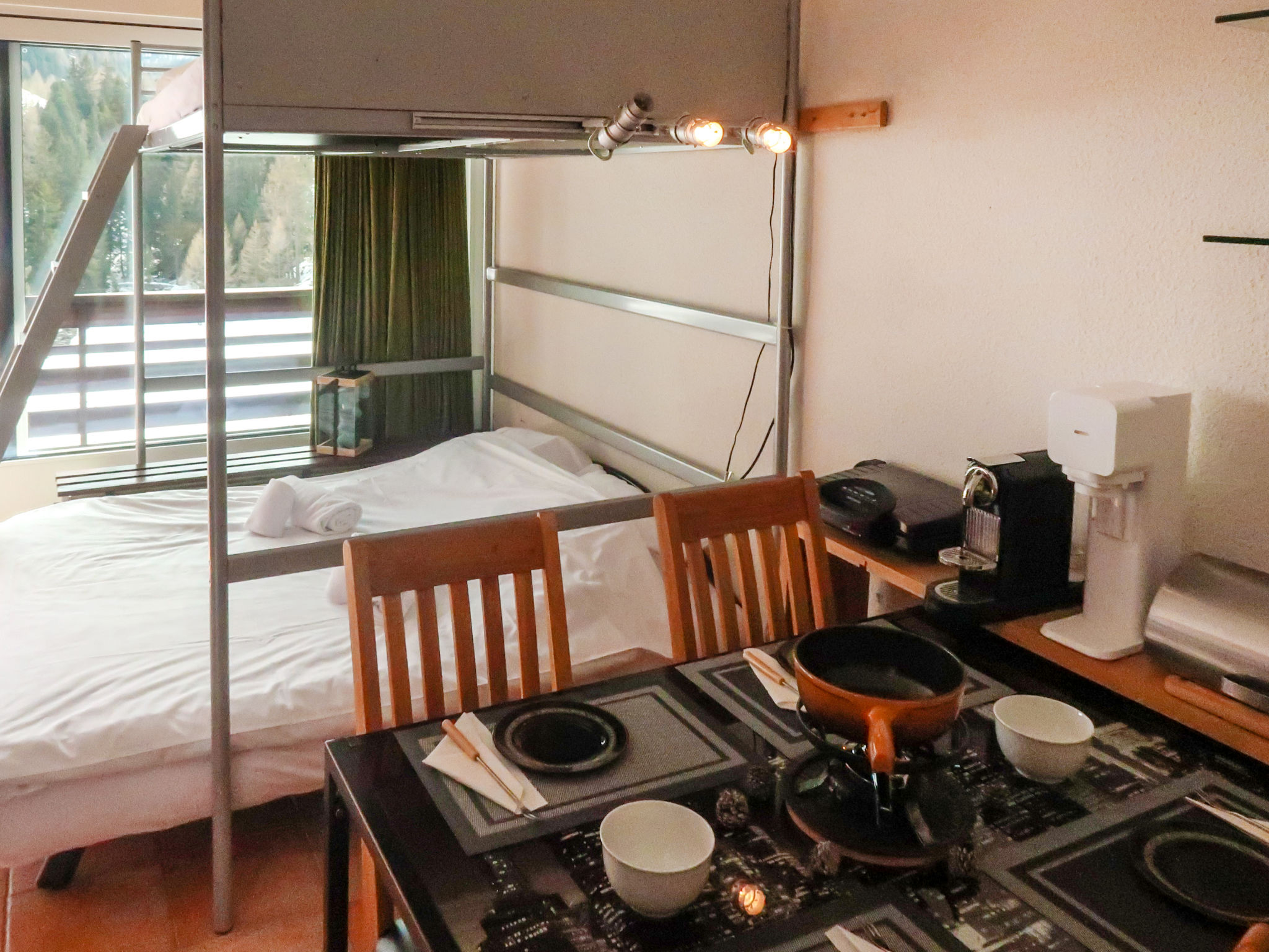 "Rosablanche D63", 1-Zimmer-Studio 30 m2 im 6. Stock. Objekt geeignet für 2 Erwachsene + 2 Kinder. Schön eingerichtet: Eingang mit 1 Bett (70 cm, Länge 190 cm). Wohn-/Schlafzimmer mit 1 Diwanbett (160 cm, Länge 190 cm), 1 x 1 Etagenbetten (130 cm, Länge 190 cm), Kabel-TV und DVD. Ausgang zum Balkon. Offene Küche (Backofen, Geschirrspüler, 4 Glaskeramikplatten, Toaster, Wasserkocher, Mikrowelle, elektrische Kaffeemaschine, Kapseln für die Kaffeemaschine (Nespresso) extra, Racletteofen, Fondue Set (Chinoise, Käse)). Dusche/WC. Balkon, Südlage. Balkonmöbel. Schöne Sicht auf die Berge. Zur Verfügung: Internet (WLAN). Bitte beachten: Nichtraucher-Unterkunft. Maximal 1 Haustier/Hund erlaubt. Anstelle eines abgeschlossenen Schlafzimmers befinden sich manche Schlafplätze in einem offenen Bereich (Galerie, Nische etc.).