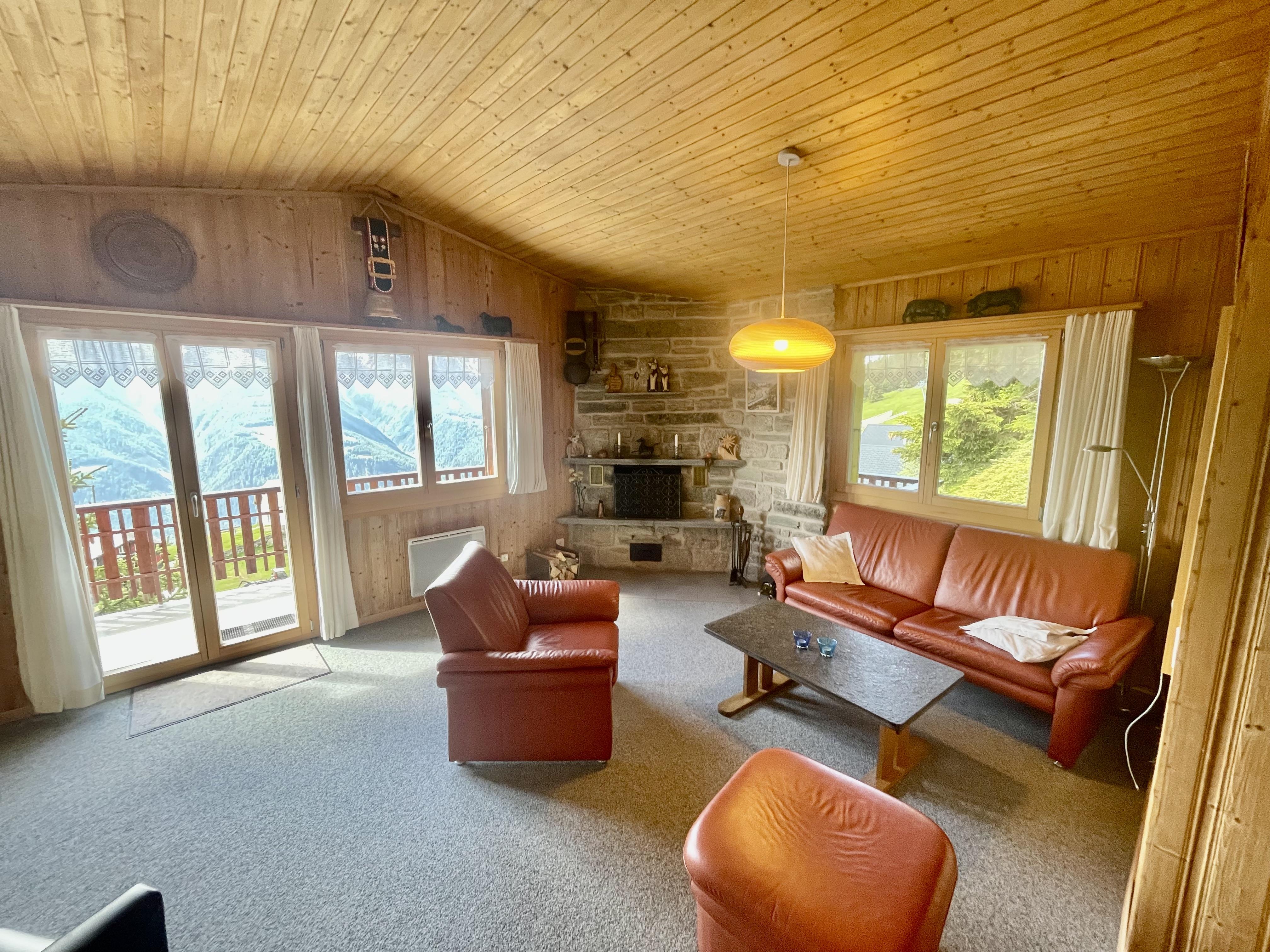Das Chalet hat 2 Komfortable heimelige Wohnungen (3 1/2 und 2 1/2 Zimmer) und grosse Süd Balkone. Die Einkaufsmöglichkeiten wie Lebensmittel, Bäckerei, Apotheke und Arzt sind in unmittelbarer Nähe.Das Chalet liegt 350 m von der Seilbahnstation .