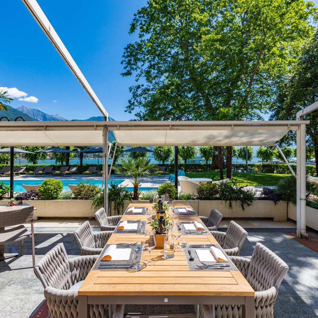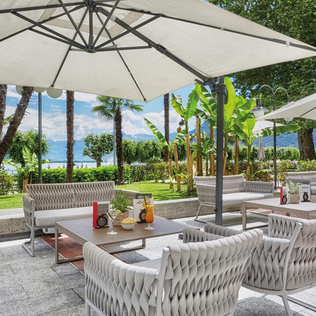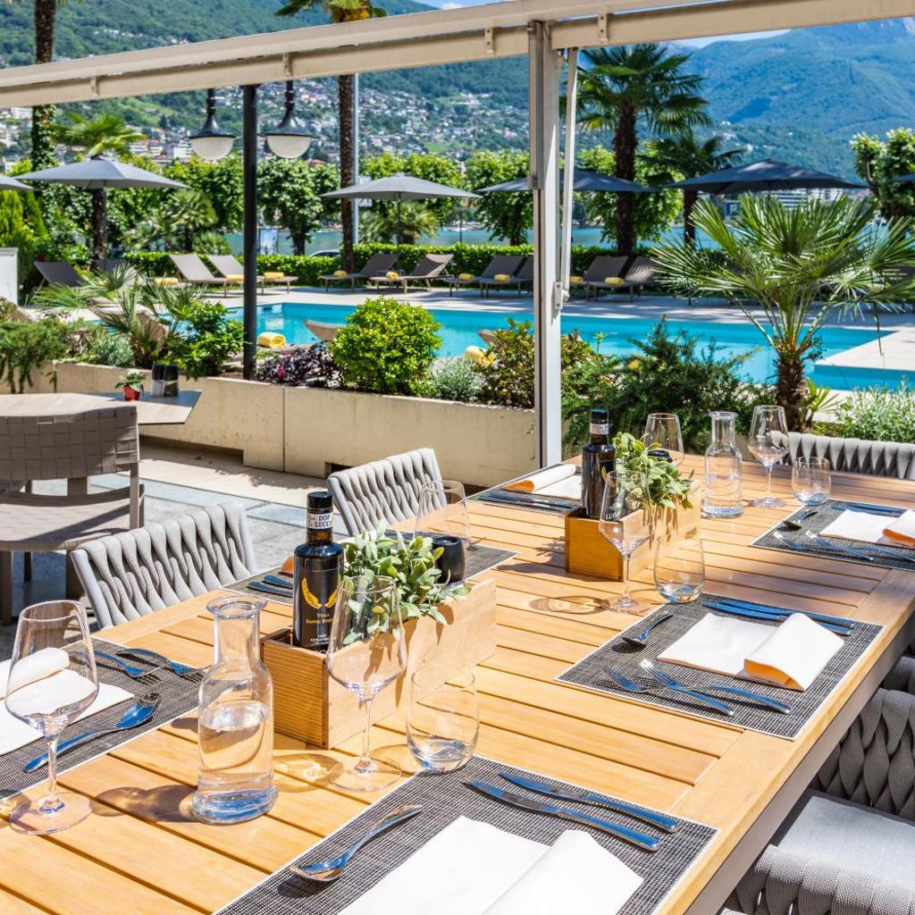 Die Terrasse des Restaurants bietet Aussicht auf den See. Genießen Sie Gerichte der Schweizer und der internationalen Küche, ein reichhaltiges Frühstücksbuffet, ein täglich wechselndes Menü, eine Auswahl an Snacks und die täglichen Angebote im Sommer.