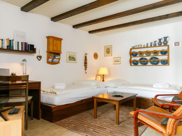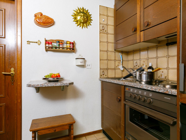 "Residenza Chesa Margun 34-7", 1-Zimmer-Wohnung 38 m2 im 1. Stock. Zweckmässig und gemütlich eingerichtet: Wohn-/Esszimmer mit 2 Betten, Esstisch und Sat-TV (Flachbildschirm), Radio und E-Heizung. Ausgang zum Balkon. Offene Küche im Eingang (4 Kochplatten, Backofen, Geschirrspüler, elektrische Kaffeemaschine). Dusche/WC. Balkon, Südlage. Sicht auf die Berge und die Ortschaft. Zur Verfügung: Internet (Wireless LAN). Bitte beachten: Nichtraucher-Unterkunft.