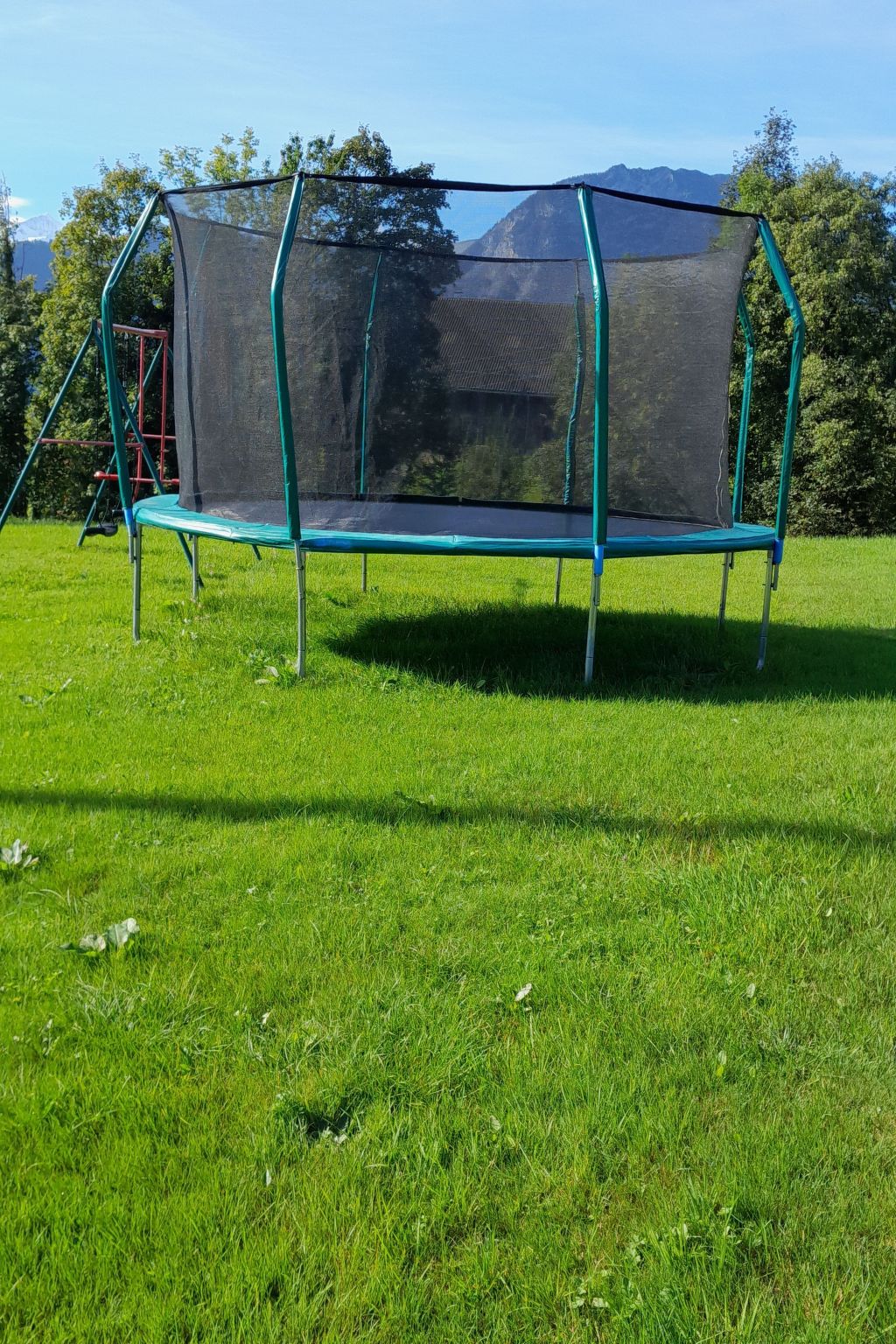 Ein geschützter Liegeplatz , sowie Tisch und Stühle gehören auch dazu. Ebenso Liegenstühle und Sonnenschirme. Auch die vorhandene Grillstelle, Trampolin, Tischtennistisch und eine Kinderschaukel können benutzt werden. Der grosszügige Rasenplatz lädt zum Ballspielen ein.