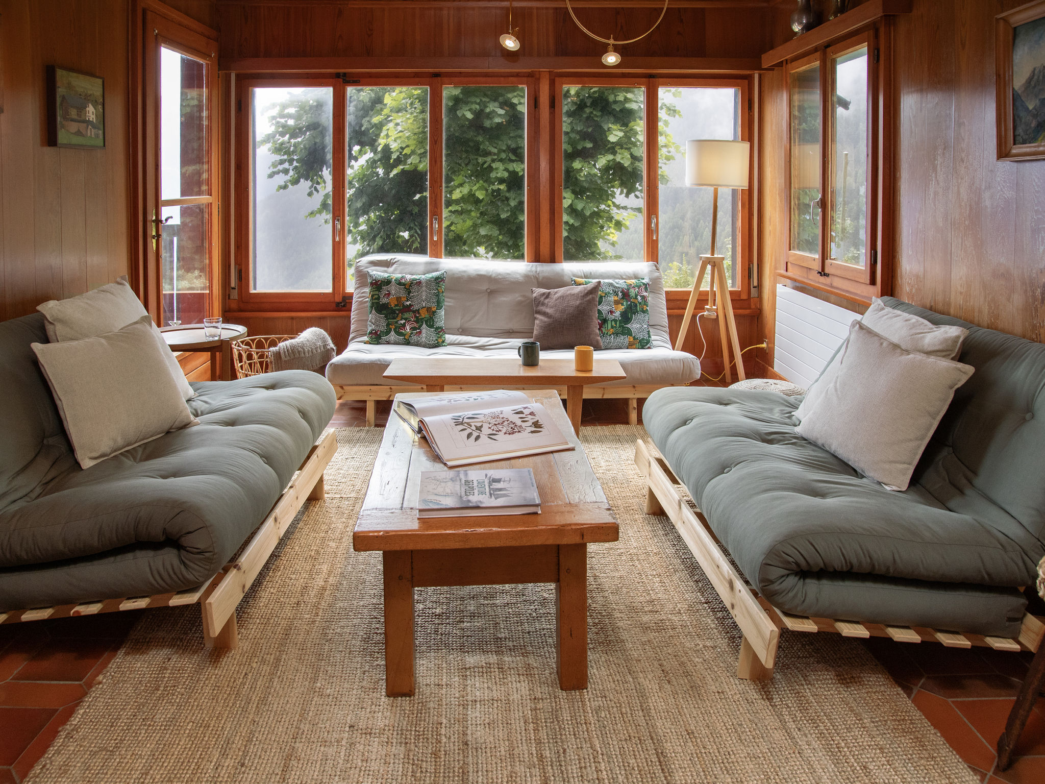 "Quinette", 5-Zimmer-Chalet auf 3 Stockwerken, Südlage. Geräumig, teilweise renoviert im Jahre 2025, komfortabel und schön eingerichtet: Eingang. Grosses Wohn-/Esszimmer mit Esstisch und Kabel-TV. Ausgang zur Terrasse, Richtung Süden. Salon. Ausgang zur Terrasse, Richtung Süden. Grosse Küche (Geschirrspüler, 4 Glaskeramikplatten, Toaster, Wasserkocher, elektrische Kaffeemaschine, Kapseln für die Kaffeemaschine (Nespresso) extra, Racletteofen, Fondue Set (Käse)). Ausgang zur Terrasse, Richtung Süden. Dusche/WC. Obergeschoss: 1 Zimmer mit 1 Bett (140 cm, Länge 200 cm). Ausgang zum Balkon, Richtung Süden. 1 grosses Zimmer mit 1 franz. Bett (1 x 180 cm, Länge 200 cm), Waschbecken. Ausgang zum Balkon, Richtung Süden. 1 Zimmer mit 1 Bett (140 cm, Länge 200 cm). Sep. WC. 2. Obergeschoss: 1 abgeschrägtes grosses Zimmer mit 1 franz. Bett (1 x 160 cm, Länge 200 cm). Dusche. Grosse Terrasse, Südlage, Gartensitzplatz, Südlage. Terrassenmöbel, Liegestühle. Schöne Panoramasicht auf die Berge. Zur Verfügung: Waschmaschine, Wäschetrockner, Haartrockner. Internet (WLAN, gratis). Parkplatz (2 Autos) in 50 m. Bitte beachten: Nichtraucher-Unterkunft.