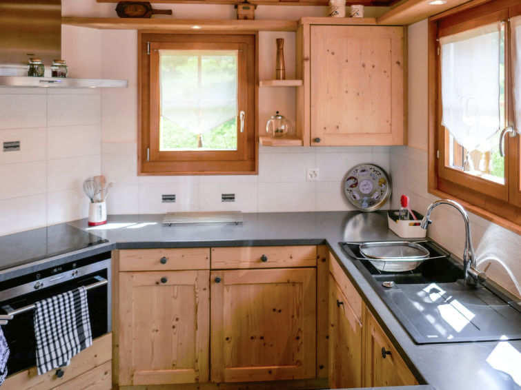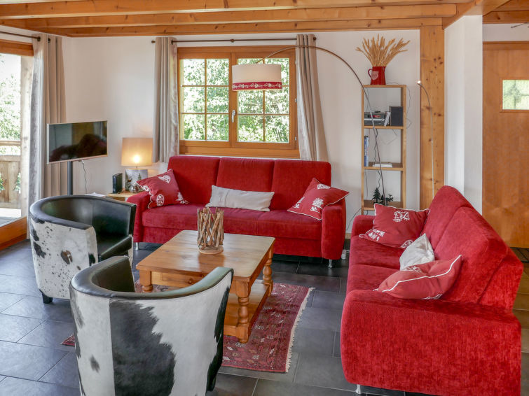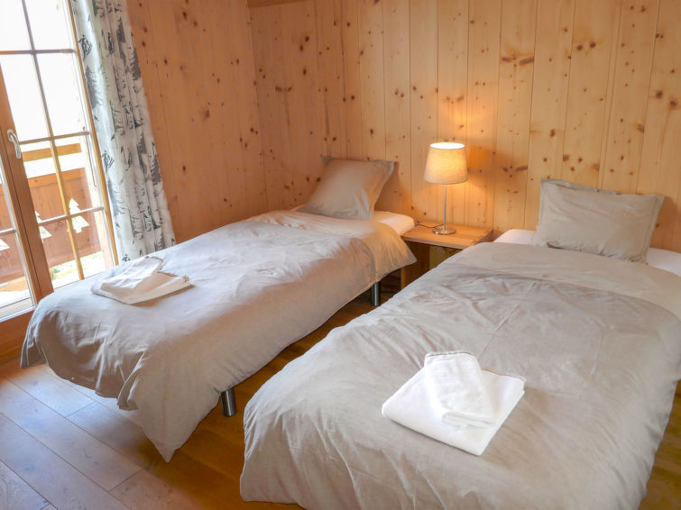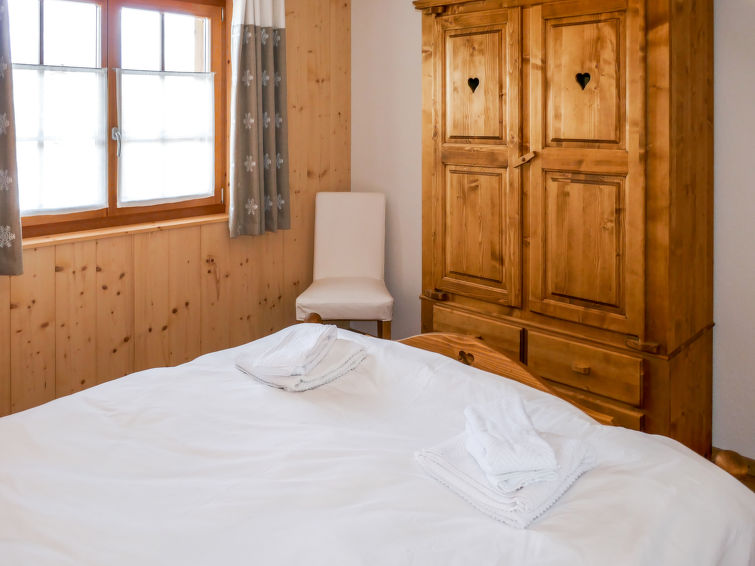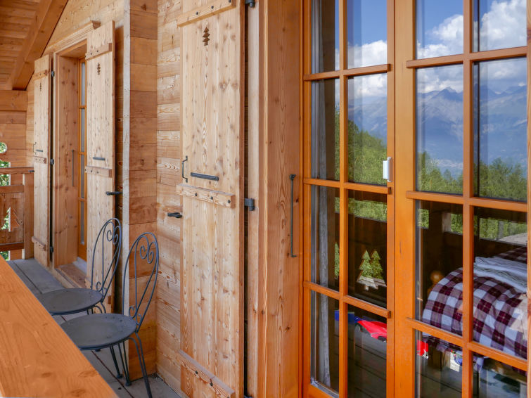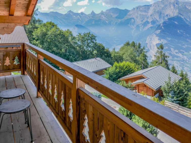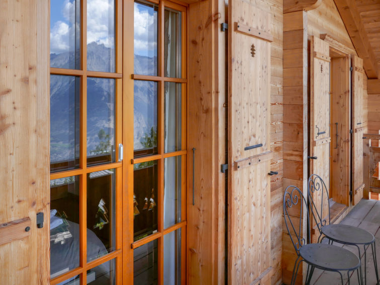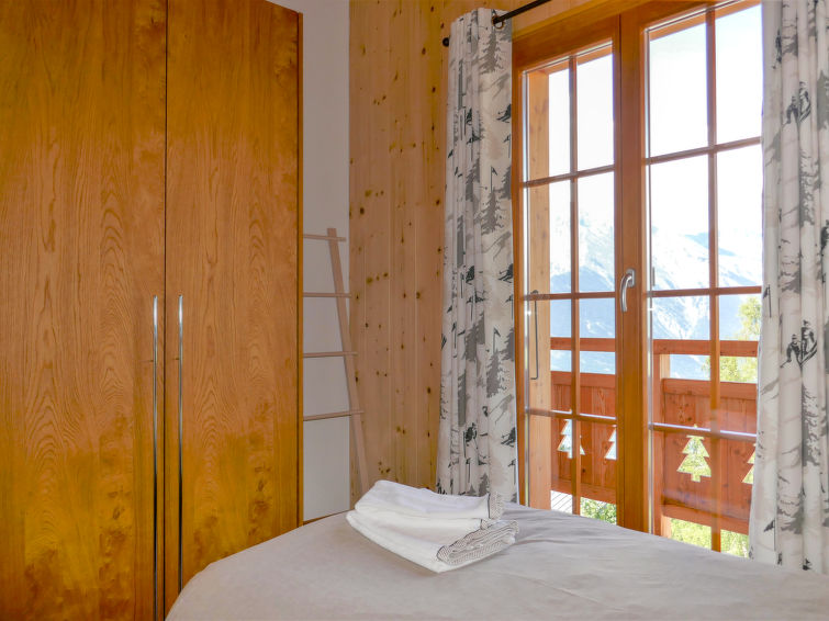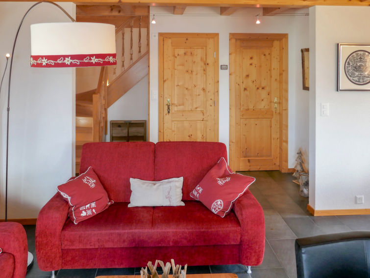 "Le Muveran V6", 4-Zimmer-Chalet 175 m2 auf 3 Stockwerken. Geräumig und hell, schön und geschmackvoll eingerichtet: Eingang. Wohn-/Esszimmer mit offenem Kamin, Kabel-TV und Radio. Ausgang zum Balkon, zur Terrasse, Richtung Norden und Richtung Westen. Offene Küche (Backofen, Geschirrspüler, 4 Glaskeramikplatten, Mikrowelle, elektrische Kaffeemaschine, Kapseln für die Kaffeemaschine (nespresso) extra, Racletteofen, Fondue Set (Chinoise, Käse)). Sep. WC. Heizung. Unteres Geschoss: Eingang. 1 Zimmer mit 1 franz. Bett (160 cm, Länge 200 cm). Dusche/WC. Obergeschoss: 1 Zimmer mit 2 Betten (90 cm, Länge 200 cm). Ausgang zum Balkon, Richtung Norden. 1 Zimmer mit 1 franz. Bett (160 cm, Länge 200 cm). Ausgang zum Balkon, Richtung Norden. Bad/Dusche/WC. Balkon, Nordlage Terrasse 27 m2, Westlage, Garten, Südlage. Terrassenmöbel, Gartengrill, Liegestühle (4). Sehr schöne Sicht auf die Berge. Zur Verfügung: Waschmaschine, Wäschetrockner, Kinderhochstuhl, Babybett, Haartrockner. Internet (Wireless LAN, gratis). Parkplatz (3 Autos). Bitte beachten: Nichtraucher-Unterkunft.