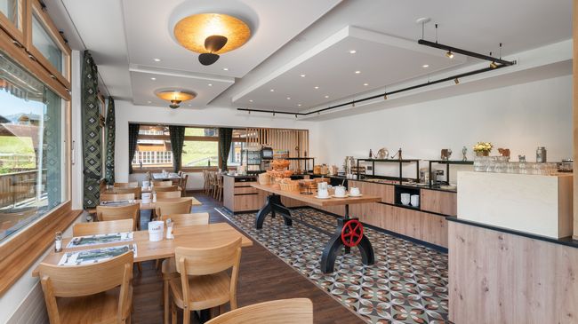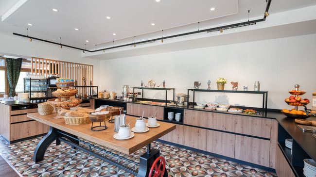 Jeden Morgen erwartet Sie im Hauptgebäude des Hotels auf der gegenüberliegenden Straßenseite ein Frühstücksbuffet.