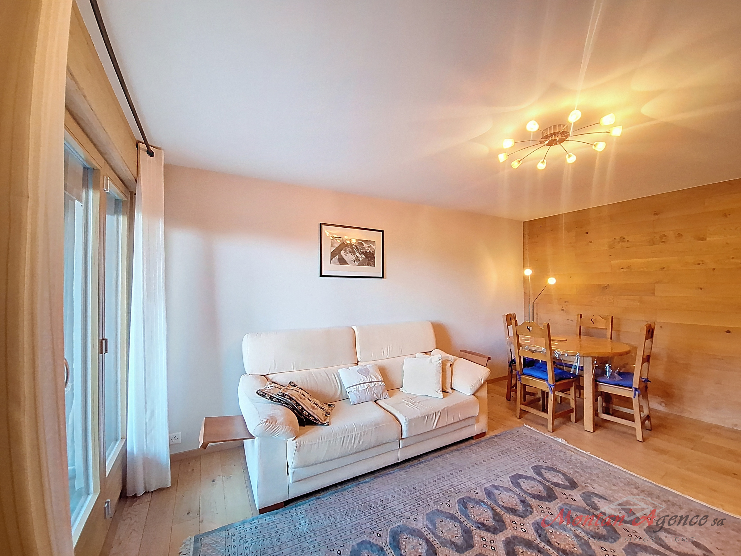 Elegante 3 1/2 Zimmerwohnung nur einen Steinwurf vom Zentrum von Crans-Montana entferntNur wenige Gehminuten vom Herzen von Crans-Montana entfernt, vereint dieses Apartment eine ideale Lage, optimalen Komfort und einen spektakulären Blick auf die Alpen.Details zur UnterkunftHervorragende 3 1/2 Zimmer: bestehend aus 2 Schlafzimmern - einem Hauptschlafzimmer mit eigenem Balkon und einem zweiten Schlafzimmer mit einem Ausziehbett, perfekt für Kinder oder Freunde.Großes, helles und warmes Wohnzimmer, mit direktem Zugang zu einem Balkon mit Blick auf den Wald und freiem Blick auf die Alpengipfel.Separate, voll ausgestattete Küche, in der Sie Ihre Mahlzeiten in Ruhe zubereiten können, ohne den Wohnraum zu beeinträchtigen.Badezimmer + separates WC: ein echtes Plus für den Komfort eines Aufenthalts mit Familie oder Freunden.Ruhige und natürliche Atmosphäre: Während Sie sich in unmittelbarer Nähe der Geschäfte, Restaurants und Unterhaltungsmöglichkeiten des Resorts befinden, genießen Sie eine ruhige Umgebung am Rande des Waldes.Küchenausstattung: Geschirrspüler, Nespresso-Kaffeemaschine, Toaster, WasserkocherZusätzliche Ausstattung: Grundlegende Reinigungsmittel, Handseifen und Geschirr – 1 Müllsack* wird bei der Ankunft mit 1 Spülmaschinentabl bereitgestellt*(*für den Rest des Aufenthalts gehen diese Produkte zu Lasten des Mieters)