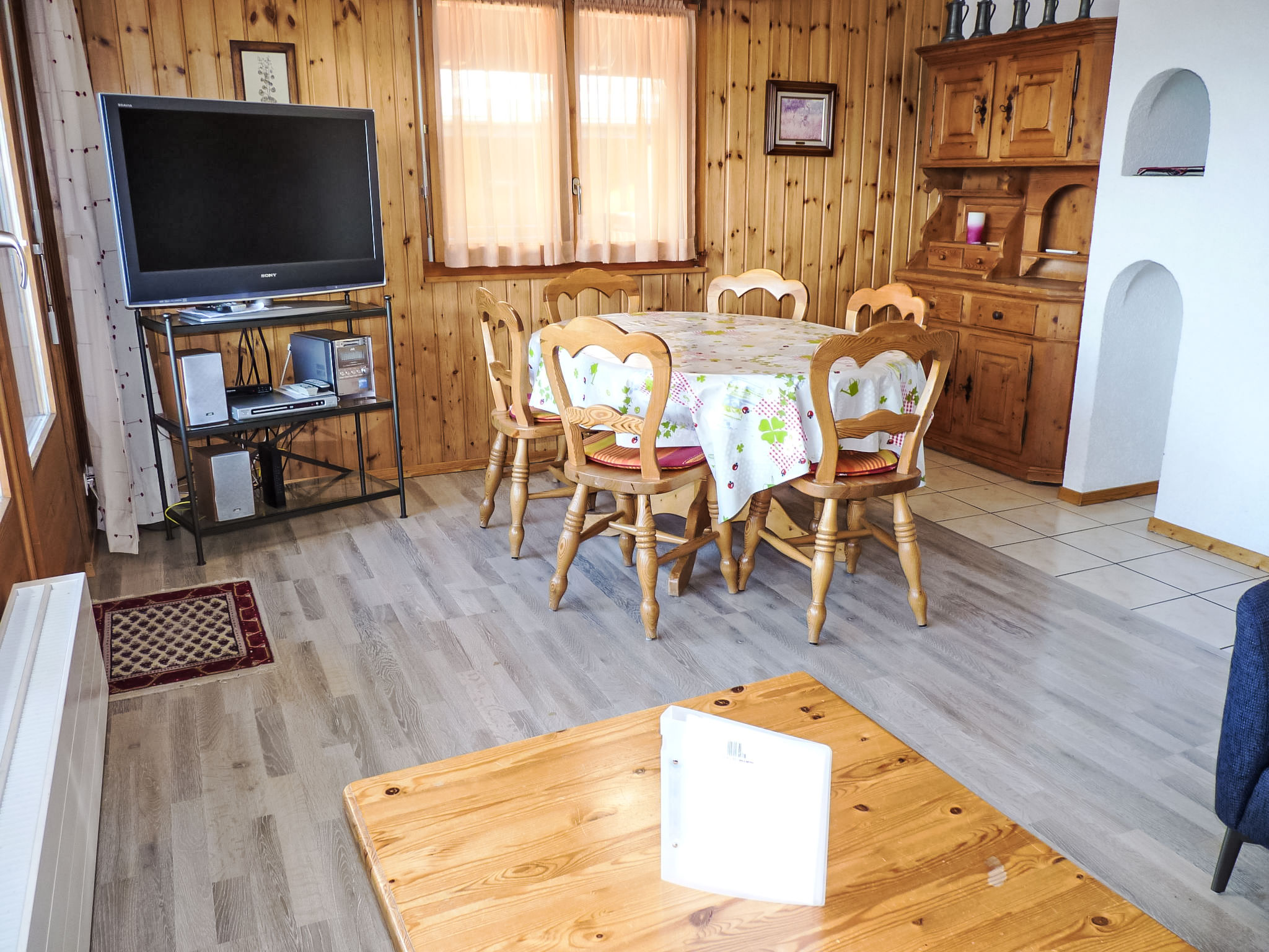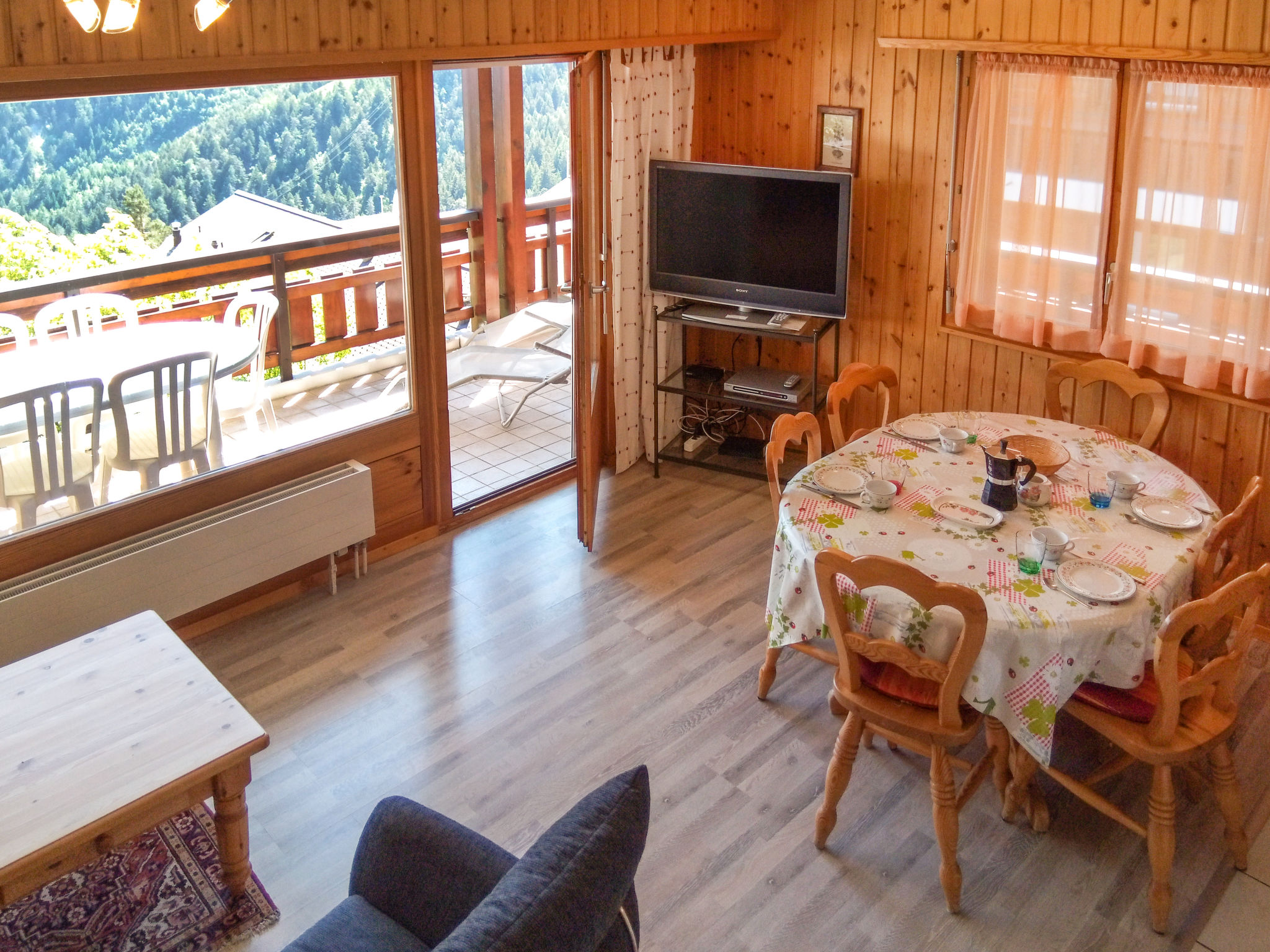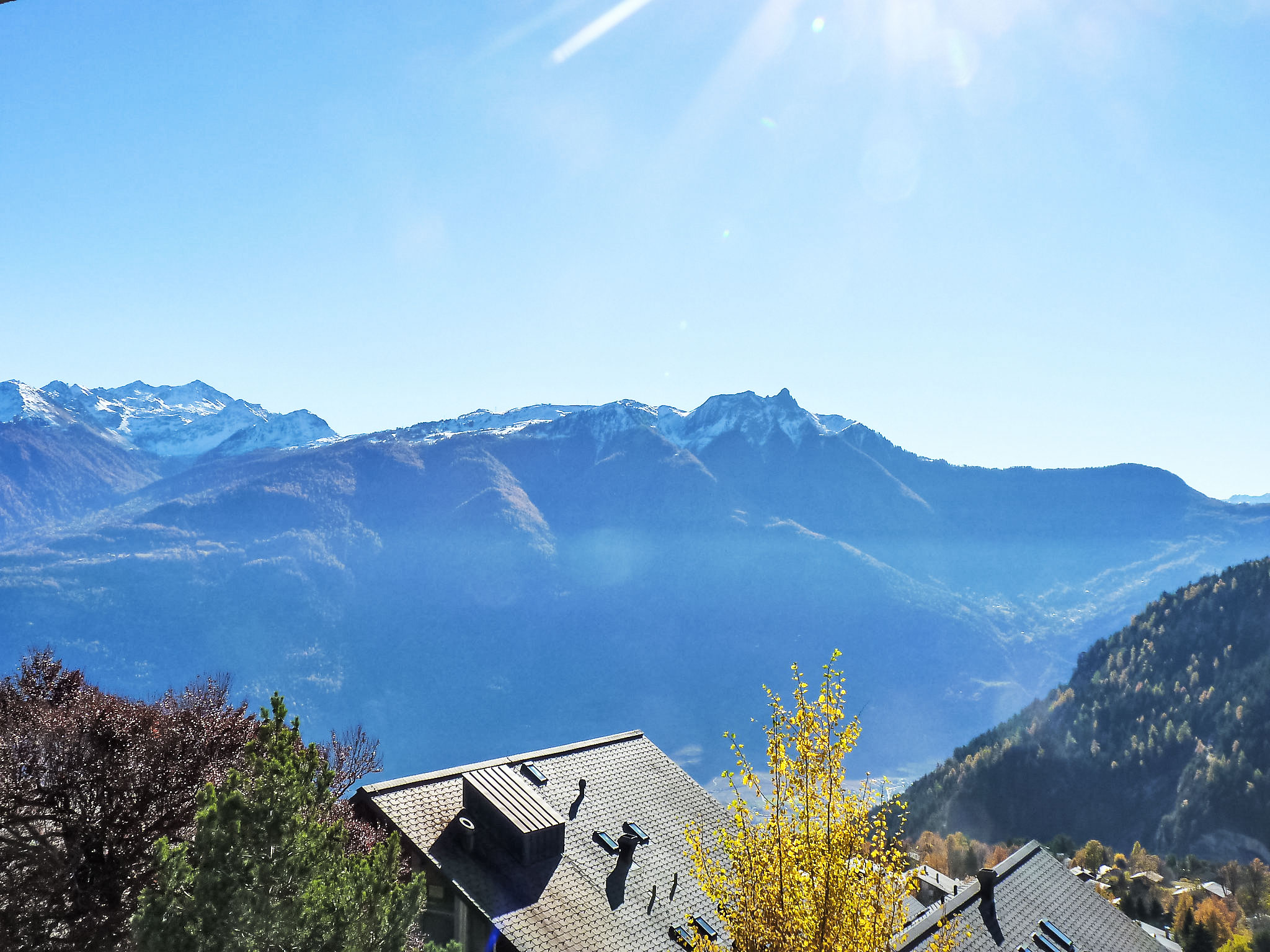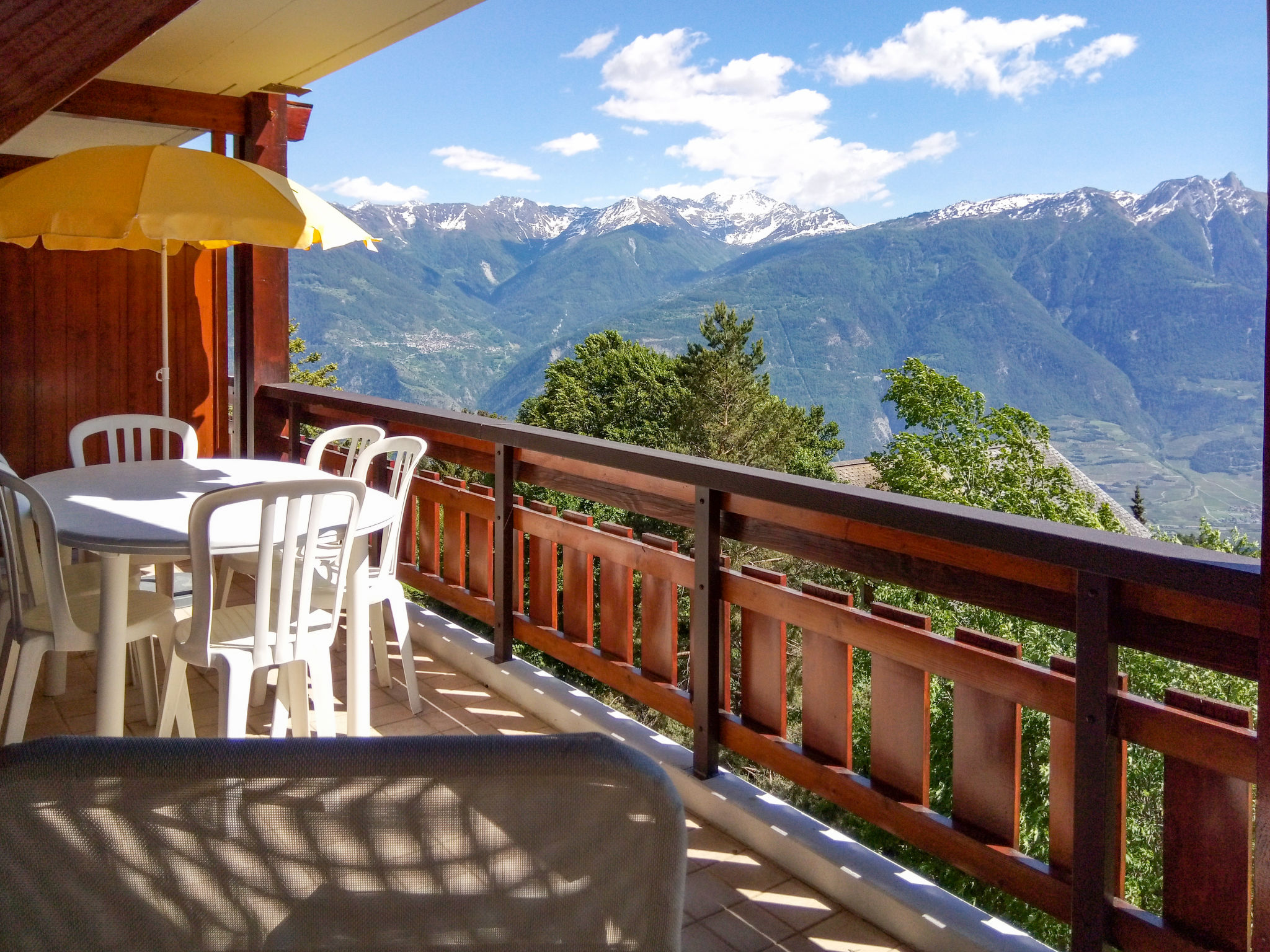 "Eaux-Vives 202", 3-Zimmer-Wohnung 80 m2 auf 2 Stockwerken im 2. Stock, Südlage. Komfortabel und geschmackvoll eingerichtet: Wohn-/Esszimmer 22 m2 mit Panoramafenster Richtung Süden mit Essecke und Kabel-TV (Flachbildschirm), Stereoanlage und DVD. Ausgang zum Balkon. Offene Küche (4 Kochplatten, Backofen, Geschirrspüler, Toaster, Wasserkocher, Mikrowelle, elektrische Kaffeemaschine, Kapseln für die Kaffeemaschine (Nespresso) extra, Racletteofen, Fondue Set (Chinoise, Käse)). Sep. WC. Obergeschoss: 1 abgeschrägtes Zimmer mit 2 Betten (90 cm, Länge 200 cm), Waschbecken und Dusche (privat). Ausgang zum Balkon. 1 Zimmer mit 2 Betten (90 cm, Länge 200 cm), Radio. Ausgang zum Balkon. Bad/WC. Terrassenmöbel, Liegestühle (4), Abstellkammer. Herrliche Sicht auf die Berge und das Tal. Zur Verfügung: Bügeleisen, Kinderhochstuhl, Babybett bis 2 Jahre, Haartrockner. Internet (Wireless LAN, gratis). Garage Nr. 202. Bitte beachten: Nichtraucher-Unterkunft. Maximal 1 kleines Haustier/Hund erlaubt.