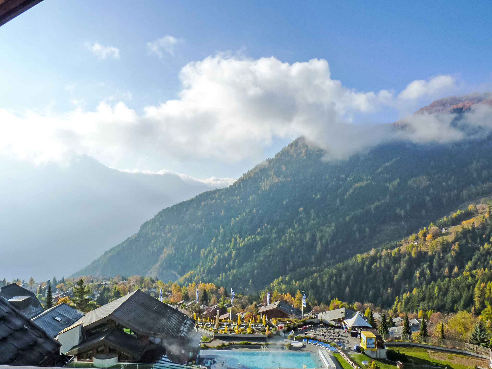 Centre thermal: Residenz "Sources, Thermalies, Eaux-Vives", auf 3 Stockwerken. Im Ortsteil Mayen Blanc, ruhige, sonnige Lage, 1.5 km vom Skigebiet. Zur Mitbenutzung: Hallenbad (extra). In der Anlage: Restaurant, Bar, Frühstücksraum, Sauna, Fitnessraum, Massage, Dampfbad, Solarium, Sprudelbad (alles extra), Kiosk, Fahrstuhl, Skiraum, Zentralheizung, Waschmaschine (extra), Wäschetrockner (extra). Zufahrt bis zum Haus. Gemeinschaftsgarage. Einkaufsgeschäft, Bäckerei 900 m, Bushaltestelle 50 m, Thermalbad "directement accessible" 50 m. Golfplatz (18 Loch) 25 km, Tennis 1.8 km, Skibushaltestelle 50 m, Langlaufloipe 1.8 km. Bitte beachten: Babyausstattung auf Anfrage. Gratis Skibus. Der gratis Skibus fährt zum Skigebiet d'Ovronnaz. Bitte beachten: Weitere Unterkünfte sind buchbar. Ski-Einstellschrank in der Garage. Schließung des Thermalzentrums: 28. Oktober 2018 bis 21. Dezember 2018.