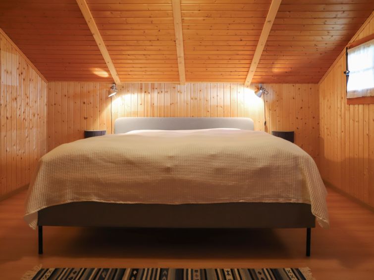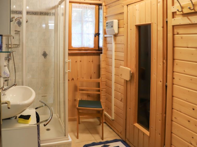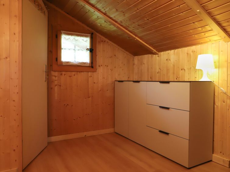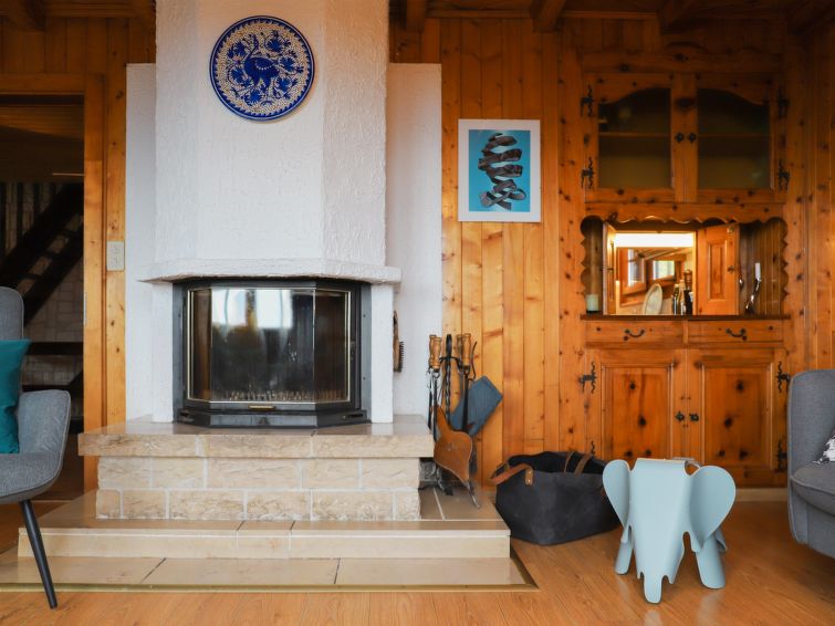 "Chalet Les Rochers Blancs", 5-Zimmer-Chalet 125 m2 auf 3 Stockwerken, Südlage. Komfortabel und gemütlich eingerichtet: Wohn-/Esszimmer mit offenem Kamin, Esstisch und TV (Flachbildschirm). Ausgang zur Terrasse, Richtung Süden. Küche (Backofen, Geschirrspüler, 4 Glaskeramikplatten, Toaster, Wasserkocher, Mikrowelle, elektrische Kaffeemaschine, Kapseln für die Kaffeemaschine (Nespresso) extra, Racletteofen, Fondue Set (Chinoise, Käse)) mit Durchreiche. Bad/WC. E-Heizung. Unteres Geschoss: (steile Treppe) Durchgangszimmer mit 1 Bett (90 cm), 1 x 2 Etagenbetten (90 cm). Ausgang zum Garten, Richtung Süden. 1 Zimmer mit 1 franz. Bett (1 x 160 cm). Dusche, sep. WC, Sauna. E-Heizung. Obergeschoss: (steile Treppe) abgeschrägt 1 Zimmer, Deckenhöhe 100 - 250 cm mit 1 franz. Bett (1 x 180 cm). Durchgangszimmer, Deckenhöhe 100 - 250 cm, ohne Schrank mit 1 Diwanbett (160 cm, Länge 200 cm). Grosser Balkon 30 m2, Südlage, Garten, Südlage. Terrassenmöbel, Gartengrill. Herrliche Panoramasicht auf die Berge. Zur Verfügung: Waschmaschine, Wäschetrockner, Sauna, Kinderhochstuhl, Babybett, Haartrockner, Wickelkommode. Internet (WLAN, gratis). Parkplatz (2 Autos), Garage (1 Auto). Bitte beachten: geeignet für Familien. Nichtraucher-Haus.