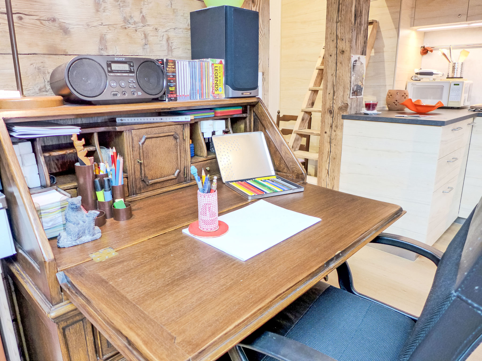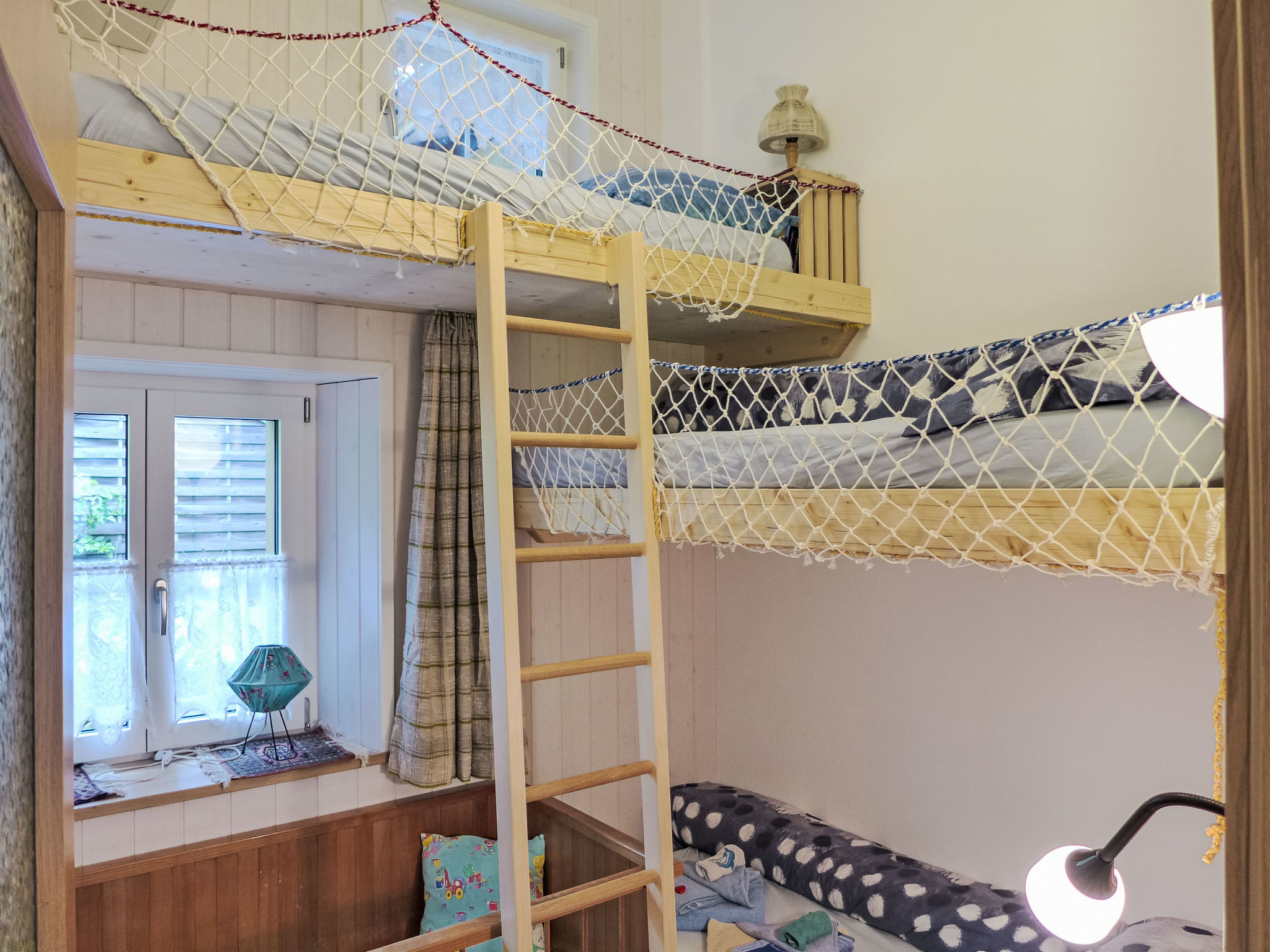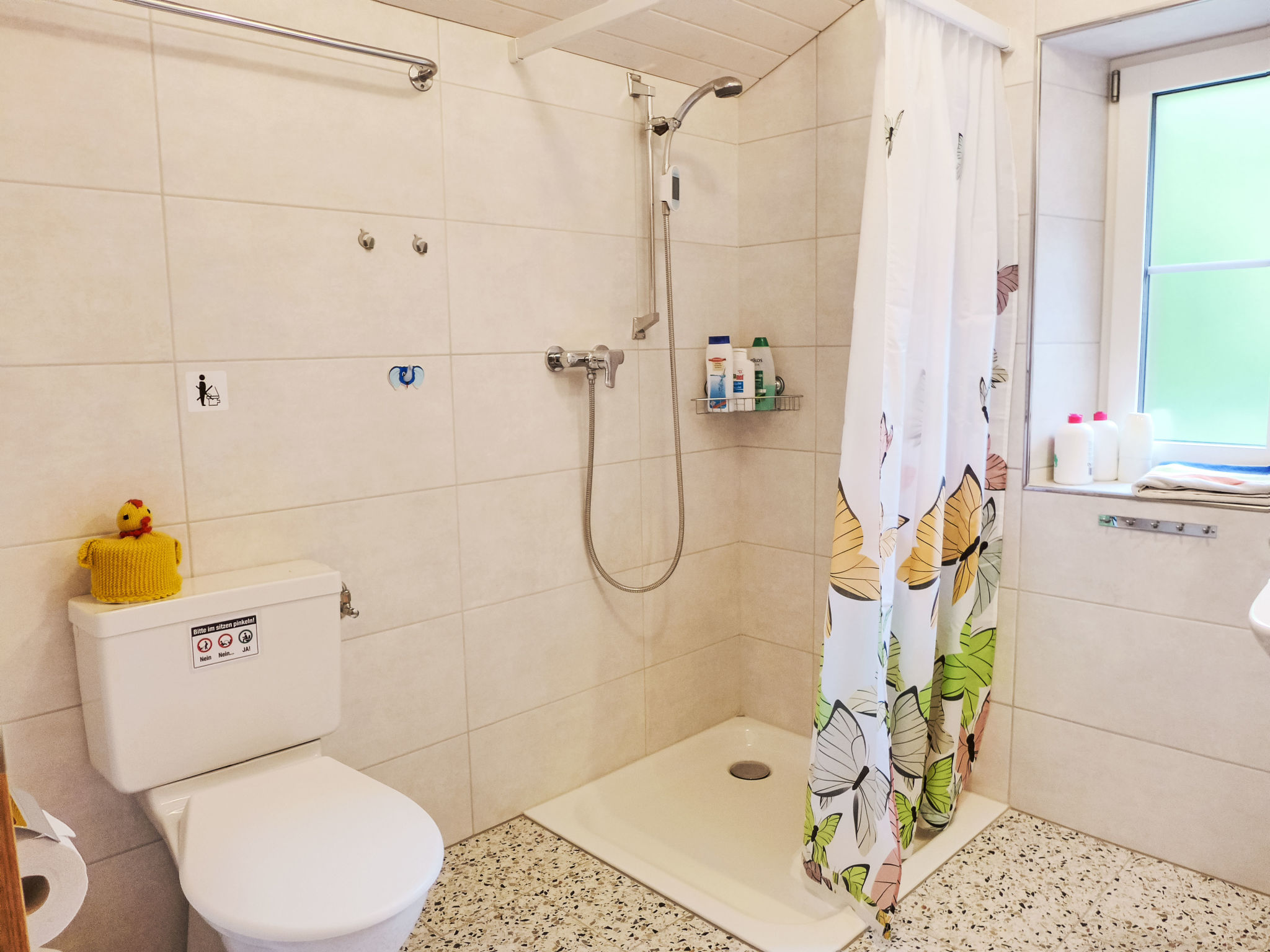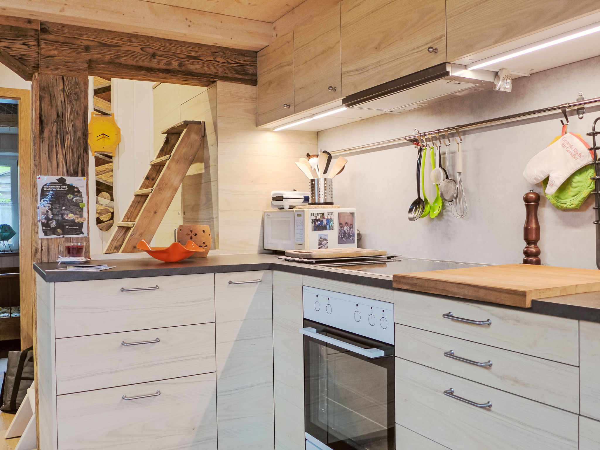 "Beim Thor Gross", 3-Zimmer-Wohnung 50 m2 auf 2 Stockwerken, im Obergeschoss. Geräumig und hell, teilweise abgeschrägt, einfach und gemütlich eingerichtet: offenes grosses Wohn-/Schlafzimmer mit 2 Betten (90 cm, Länge 200 cm), Esstisch, Flachbildschirm, Radio, Stereoanlage und DVD. 1 Zimmer mit 1 x 2 Etagenbetten (90 cm, Länge 200 cm). Offene Küche (Backofen, Geschirrspüler, 3 Glaskeramikplatten, Toaster, Wasserkocher, Mikrowelle, elektrische Kaffeemaschine, Kapseln für die Kaffeemaschine (Delizio) extra, Racletteofen, Fondue Set (Käse)). Dusche/WC. Dachgeschoss: (Leiter) 1 abgeschrägtes Zimmer mit 3 Schlafmöglichkeiten (90 cm, Länge 200 cm). Kleine Terrasse. Balkonmöbel. Schöne Sicht auf die Berge und die Landschaft. Zur Verfügung: Babybett bis 2 Jahre (extra), Haartrockner. Internet (WLAN, gratis). Parkplatz (1 Auto). Bitte beachten: Nichtraucher-Unterkunft. Maximal 1 Haustier/Hund erlaubt.