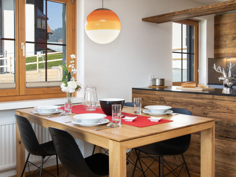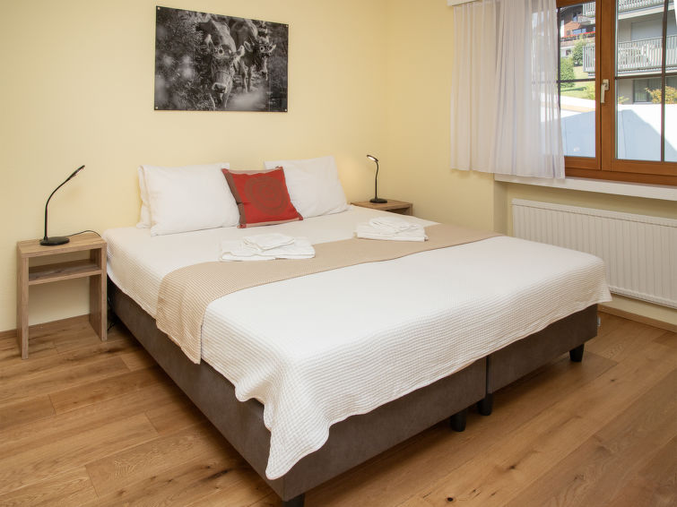 "La Siala Apt.63", 3-Zimmer-Wohnung 62 m2 im 1. Stock. Komfortabel und gemütlich eingerichtet: Wohn-/Esszimmer mit Kabel-TV (Flachbildschirm). Ausgang zum Balkon. 1 Doppelzimmer. 1 Zimmer mit 2 Betten und 2 Ausziehbetten. Offene Küche (Backofen, Geschirrspüler, 4 Glaskeramikplatten, Toaster, Wasserkocher, Tiefkühler, elektrische Kaffeemaschine, Kapseln für die Kaffeemaschine (Nespresso) extra, Dampfgarer, Racletteofen, Fondue Set (Käse)). 2 Duschen/WC. Parkettboden. Balkon 8 m2, Südlage. Balkonmöbel. Schöne Sicht auf die Berge, das Tal und die Landschaft. Zur Verfügung: Haartrockner. Internet (WLAN, gratis). Parkplatz Nr. 12, Garage beim Haus. Bitte beachten: Nichtraucher-Unterkunft.