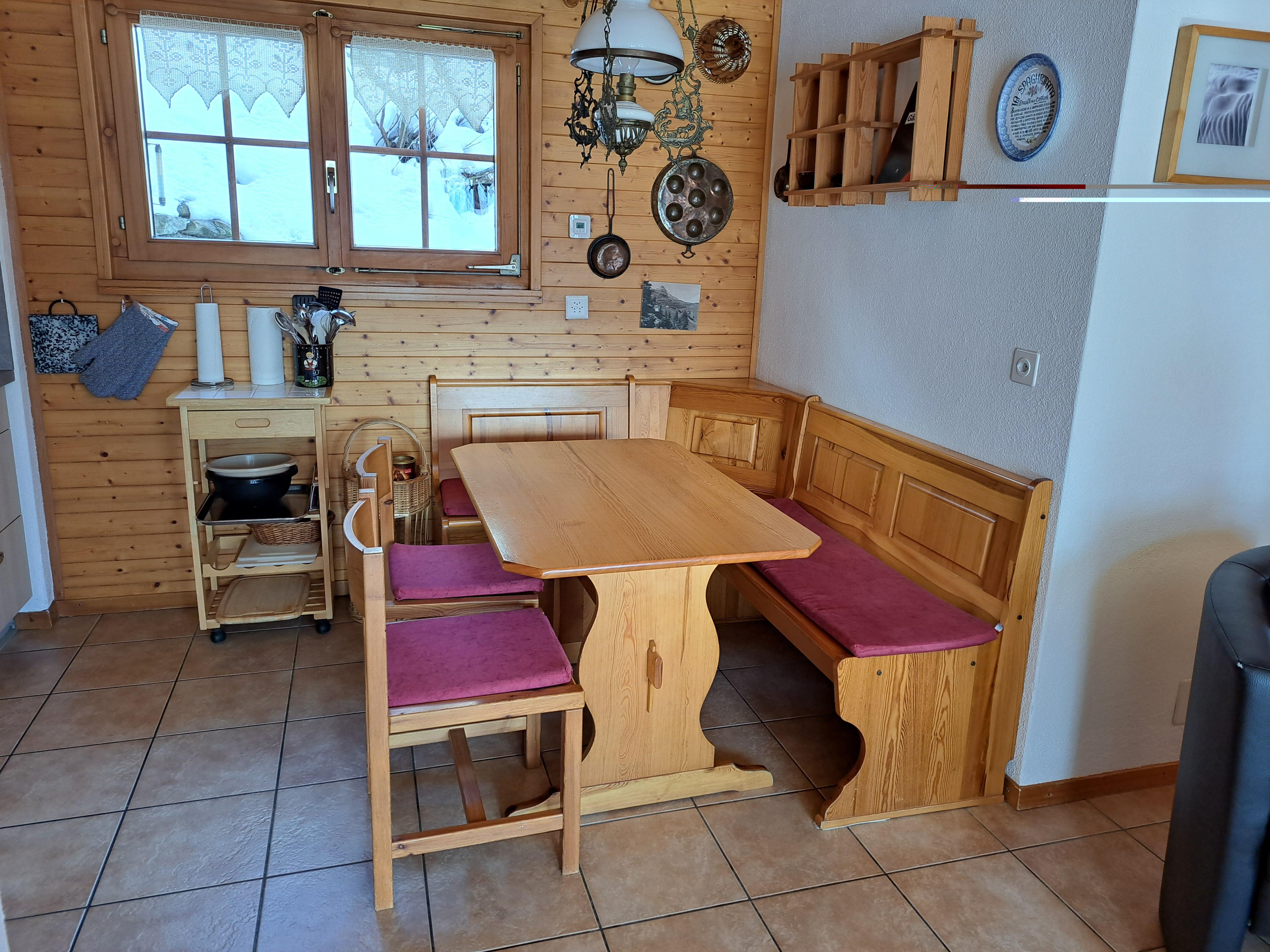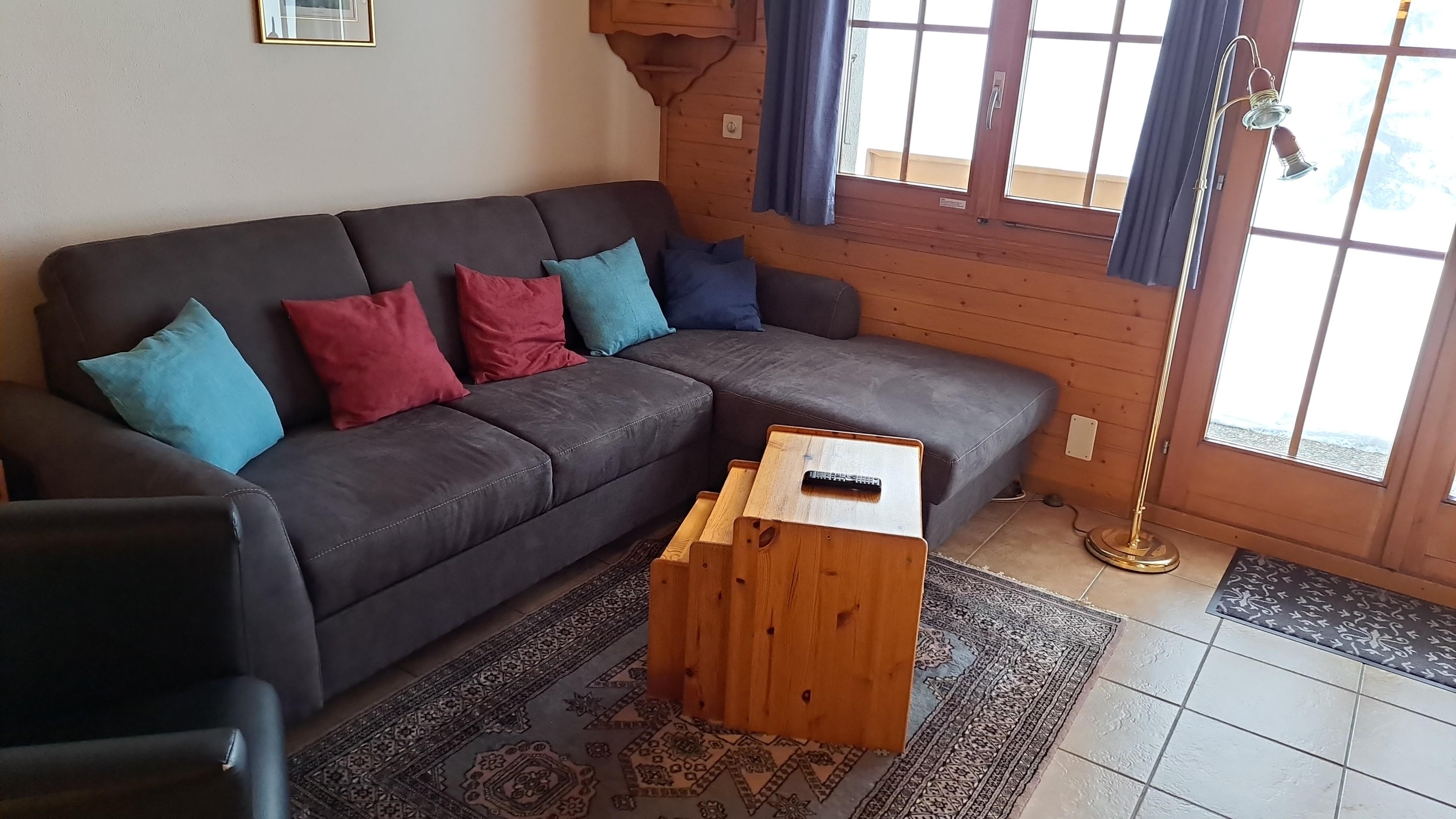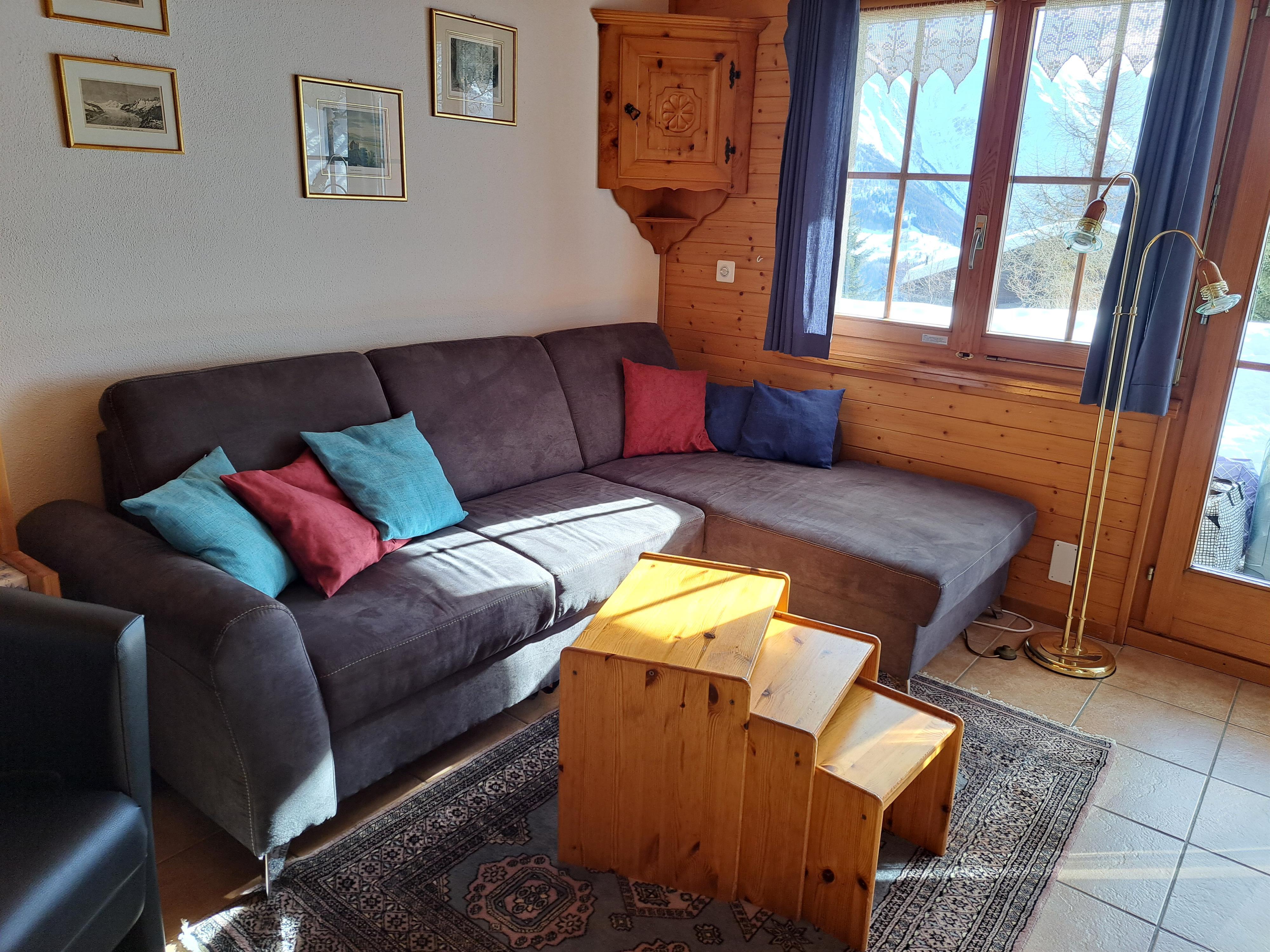 Gemütliche, ruhig gelegene 3 Zimmer Chalet-Wohnung im Erdgeschoss, mit grossem Sitzplatz, im Gebiet Alpmatten. Am Weg zum Skilift gelegen und unweit des Schrägliftes der Sie gratis ins Dorfzentrum bringt.