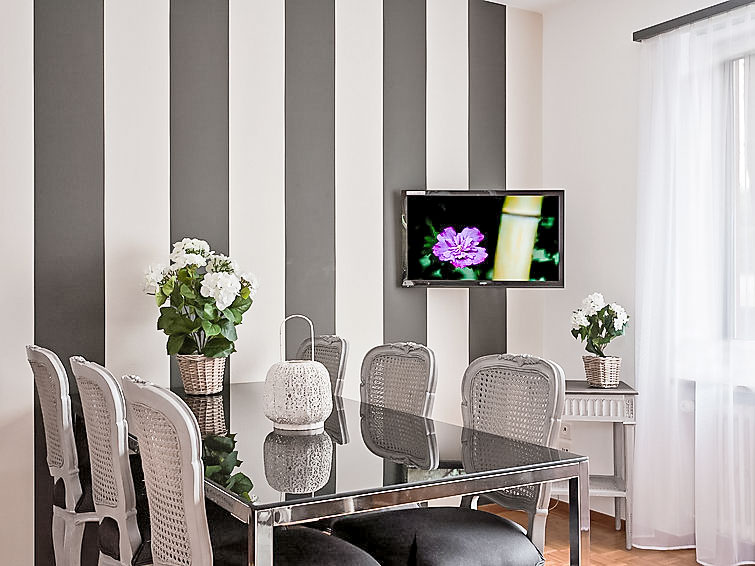 "Suite", 3-Zimmer-Wohnung 70 m2 im 1. Stock, Südostlage. Zweckmässig eingerichtet: Wohn-/Esszimmer mit 1 Diwanbett (160 cm, Länge 200 cm), Sat-TV und Radio. 1 Zimmer mit 2 Betten (90 cm, Länge 200 cm). 1 Doppelzimmer mit 2 Betten (90 cm, Länge 200 cm). Küche (4 Kochplatten, Backofen, Geschirrspüler, elektrische Kaffeemaschine, Kapseln für die Kaffeemaschine (Nespresso) extra). Bad/WC. Warmluftheizung. Balkon. Terrassenmöbel. Zur Verfügung: Internet (Wireless LAN, gratis). Bitte beachten: Nichtraucher-Unterkunft. Maximal 1 Haustier/Hund erlaubt. NL-00008125