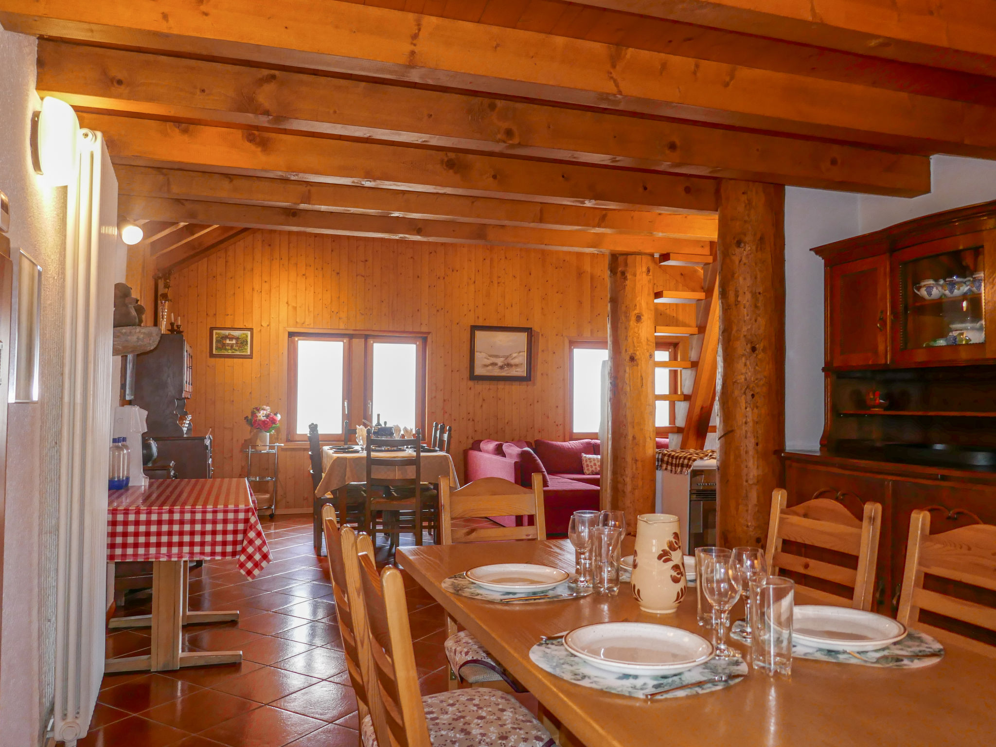 "Mona", 4-Zimmer-Haus 100 m2 auf 3 Stockwerken. Geräumig, teilweise abgeschrägt, sehr komfortabel und gemütlich eingerichtet: offenes grosses Wohnzimmer mit offenem Kamin, Esstisch, Sat-TV, Flachbildschirm und Radio. Grosse, offene Küche (Backofen, Geschirrspüler, 3 Glaskeramikplatten, Mikrowelle, elektrische Kaffeemaschine, Kapseln für die Kaffeemaschine (delizia) extra, Racletteofen, Fondue Set (Chinoise, Käse)) mit Esstisch, E-Heizung und G-Heizung. Ausgang Pergola. Dusche/WC. Unteres Geschoss: 1 Zimmer mit 1 Doppelbett. 2 Zimmer, jedes Zimmer mit 1 x 2 Etagenbetten. Dusche/WC. Grosse Terrasse 66 m2, Südlage. Terrassenmöbel, Balkonmöbel, Gartengrill, Liegestühle (4), Abstellkammer. Schöne Sicht auf die Berge und die Landschaft. Zur Verfügung: Kinderhochstuhl, Babybett bis 3 Jahre (extra), Haartrockner, Holz (extra). Internet (WLAN, extra). Bitte beachten: geeignet für Familien. Nichtraucher-Haus. Maximal 2 Haustiere/Hunde erlaubt. NL-00003941