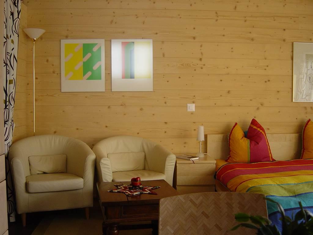 Helles, neues Studio, 30 Qm gross, für 2 Personen. Grosser Balkon gegen Süden: viel Sonne und fantastische Aussicht.