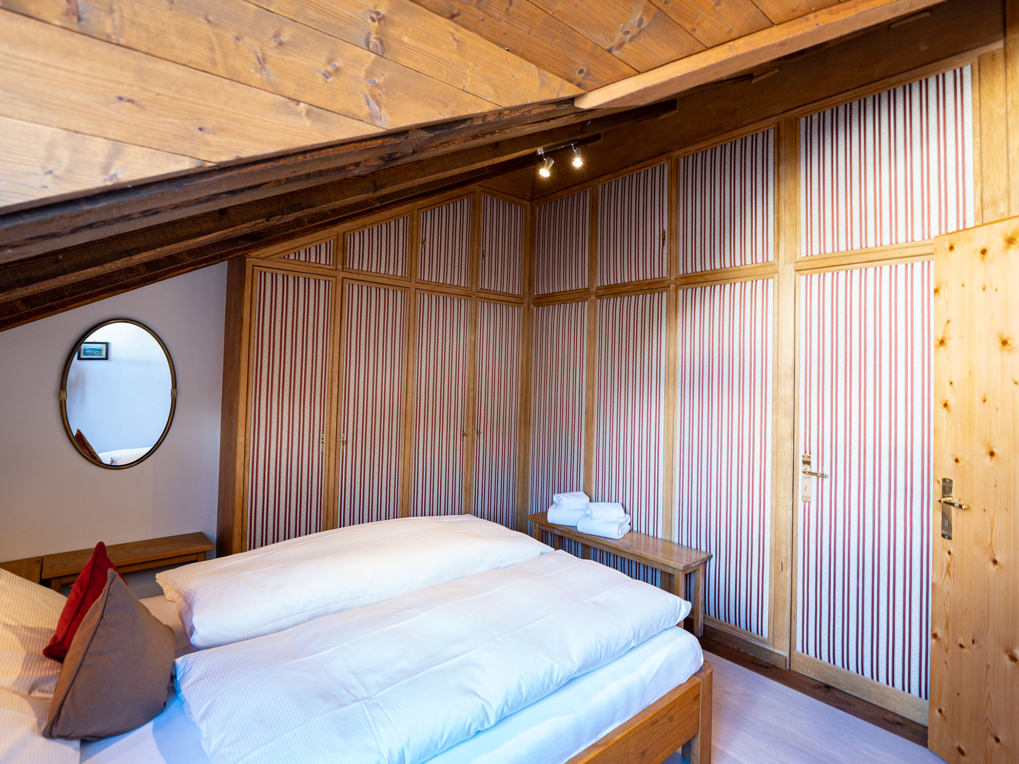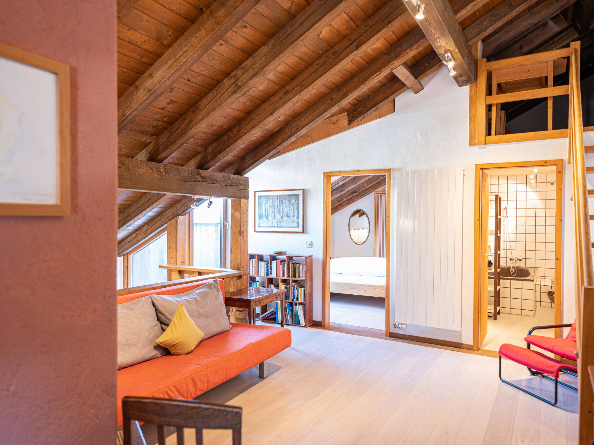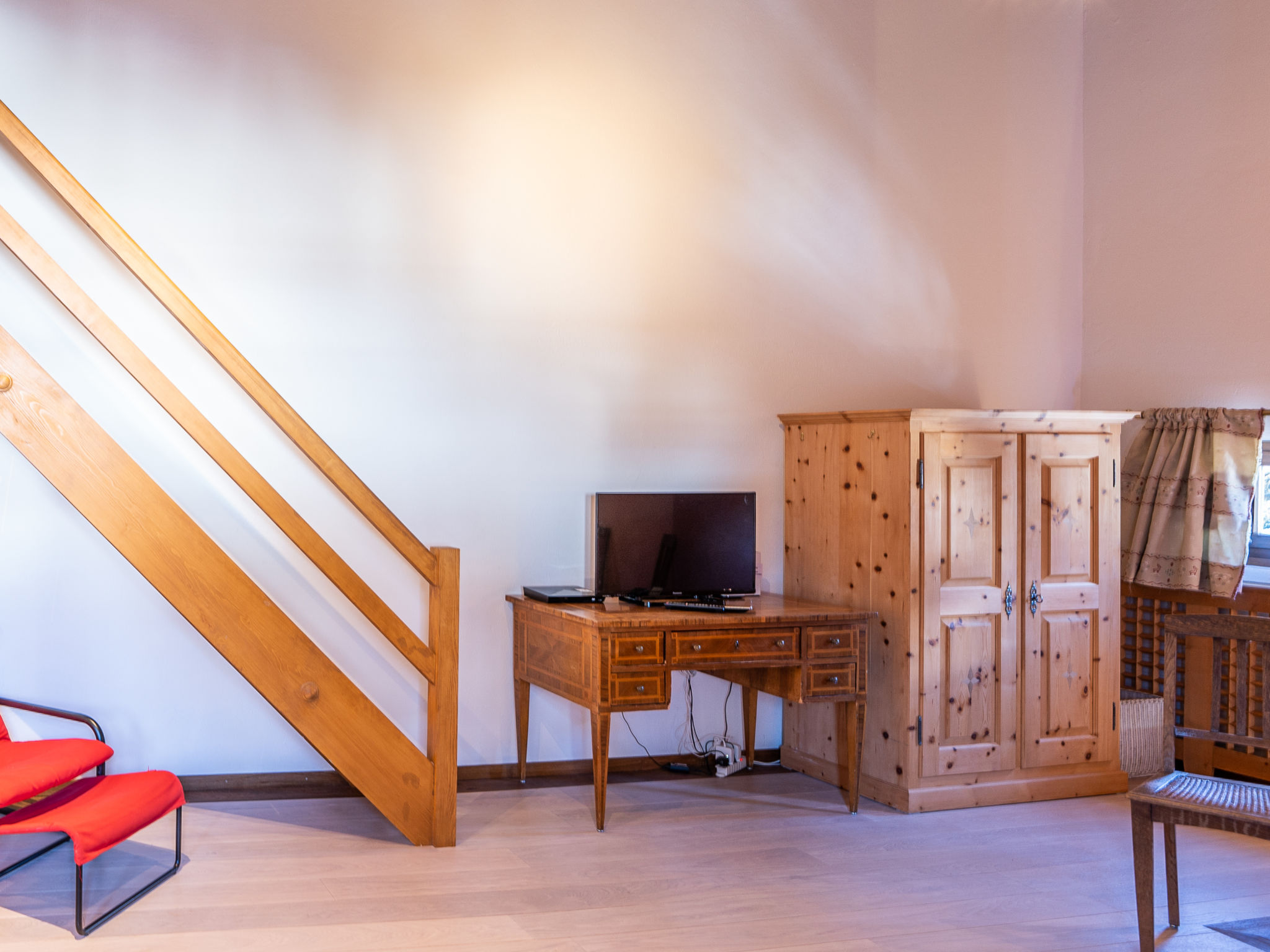 "Chesa Cantieni", 3-Zimmer-Wohnung 85 m2 auf 2 Stockwerken, Nordlage. Komfortabel und geschmackvoll eingerichtet: Wohn-/Esszimmer mit offenem Kamin und TV. 1 Zimmer mit 1 Bett (90 cm, Länge 200 cm), 1 x 2 Etagenbetten (85 cm, Länge 185 cm). Offene Küche (Backofen, Geschirrspüler, 4 Induktionskochplatten, Toaster, Wasserkocher, Tiefkühler, elektrische Kaffeemaschine, Kapseln für die Kaffeemaschine (Nespresso) extra, Racletteofen). Dusche/WC. Obergeschoss: 1 Zimmer mit 1 Doppelbett (2 x 80 cm, Länge 195 cm), Bad/Dusche/WC. Ausgang zum Balkon. Galerie mit 1 Diwanbett (150 cm, Länge 200 cm). Kleiner Balkon. Sicht auf die Ortschaft. Zur Verfügung: Haartrockner. Internet (Wireless LAN, gratis). Garage Nr. 12 in 100 m, Höhe 225 cm, Breite 260 cm. Bitte beachten: geeignet für Familien. Nichtraucher-Unterkunft. Anstelle eines abgeschlossenen Schlafzimmers befinden sich manche Schlafplätze in einem offenen Bereich (Galerie, Nische etc.).