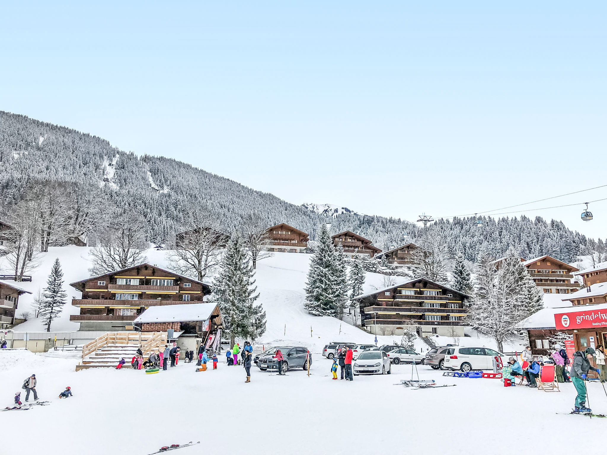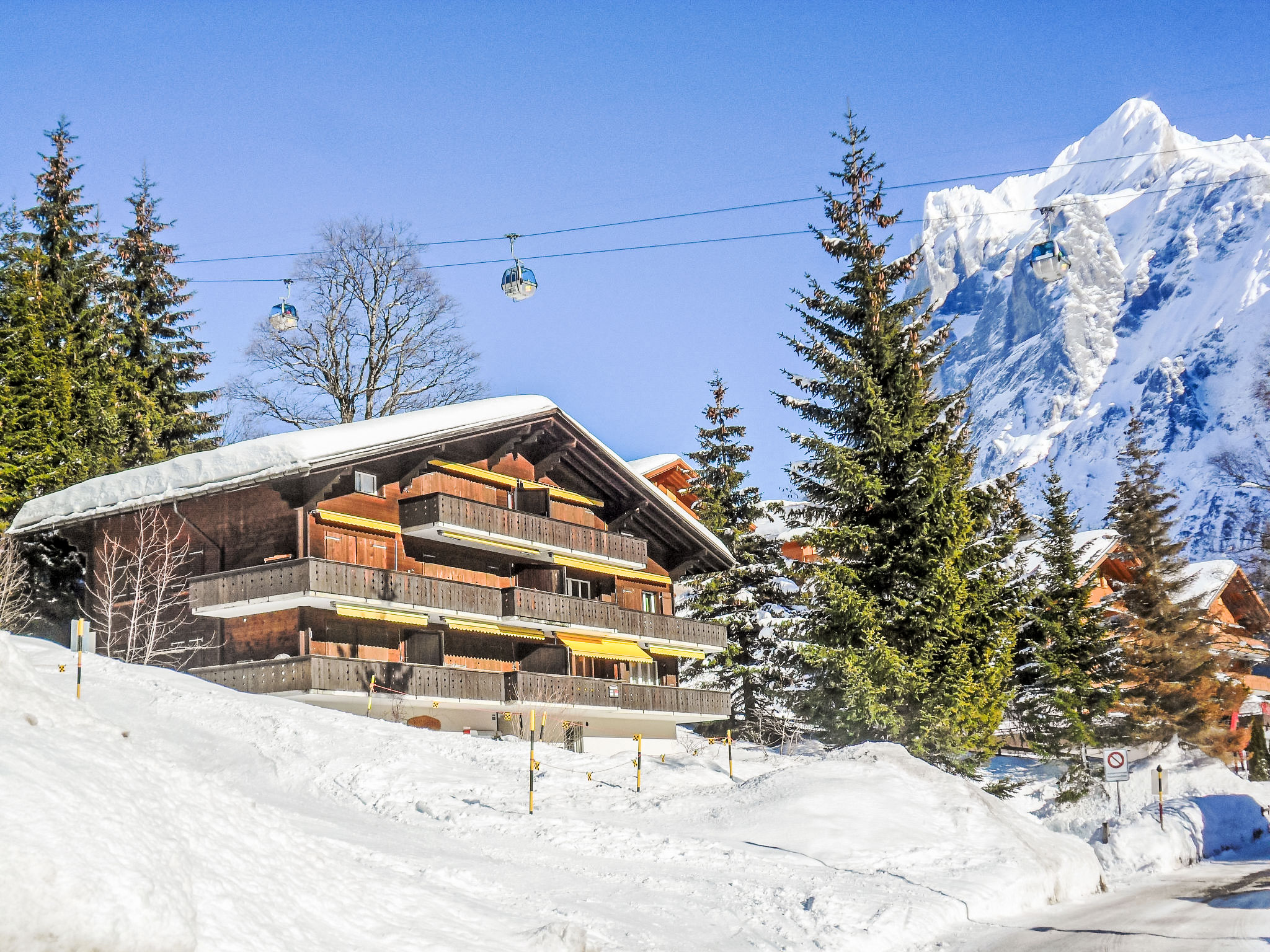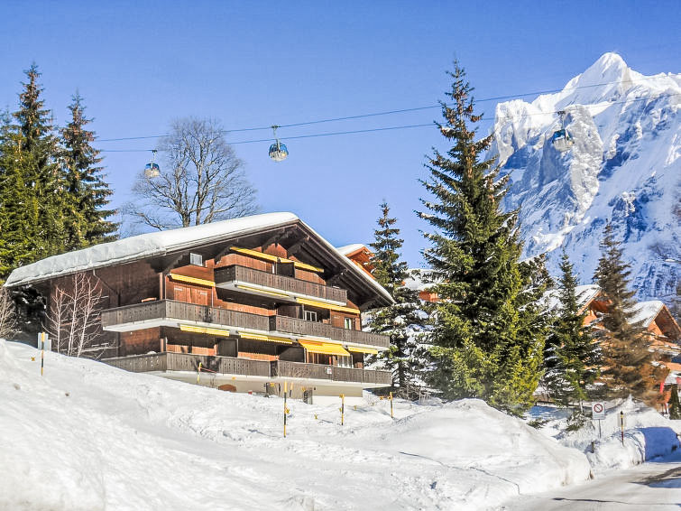 Mehrfamilienhaus "Chalet Bodmisunne". Im Ortsteil Bodmi am Terrassenweg, 2.2 km vom Zentrum, sonnige Lage, an einer Strasse, Richtung Süden. Im Hause: Einstellraum für Fahrräder, Skiraum, Zentralheizung. Im Winter bitte Schneeketten mitbringen. Treppenweg bis zum Haus. Parkplatz beim Haus. Einkaufszentrum 2.2 km, Restaurant 100 m, Fahrradverleih 2.2 km, Bushaltestelle "Bodmi" 30 m, Bahnstation "Grindelwald Dorf" 2.8 km, Freibad 3.5 km, Hallenbad 2.7 km. Golfplatz (9 Loch) 3.5 km, Tennis 3 km, Minigolf 2.5 km, Sportzentrum 2.7 km, Gondelbahn 2.5 km, Skipisten, Skiverleih 100 m, Skibushaltestelle 30 m, Skischule, Kinderskischule 100 m, Eisfeld 2.7 km, Kinderspielplatz 2.7 km. Bekannte Seen in der Umgebung sind gut erreichbar: Thuner-/Brienzersee 20 km. Bitte beachten: kein Fahrstuhl vorhanden. Gratis Skibus. Der gratis Skibus fährt zum Skigebiet First und kleine Scheidegg/Männlichen. Bei guter Schneelage Zufahrt mit den Skiern bis zum Haus.
