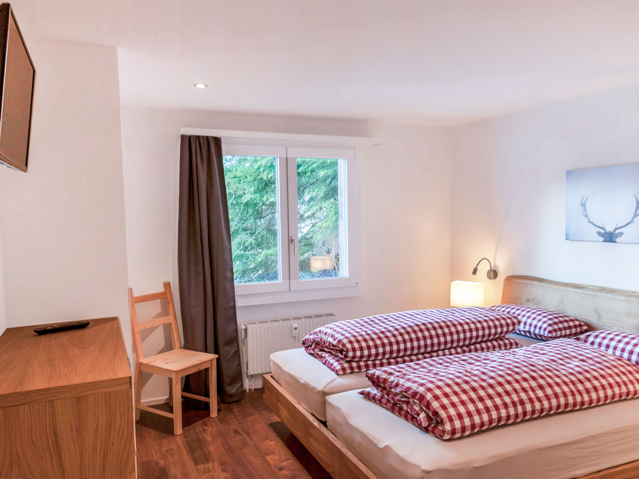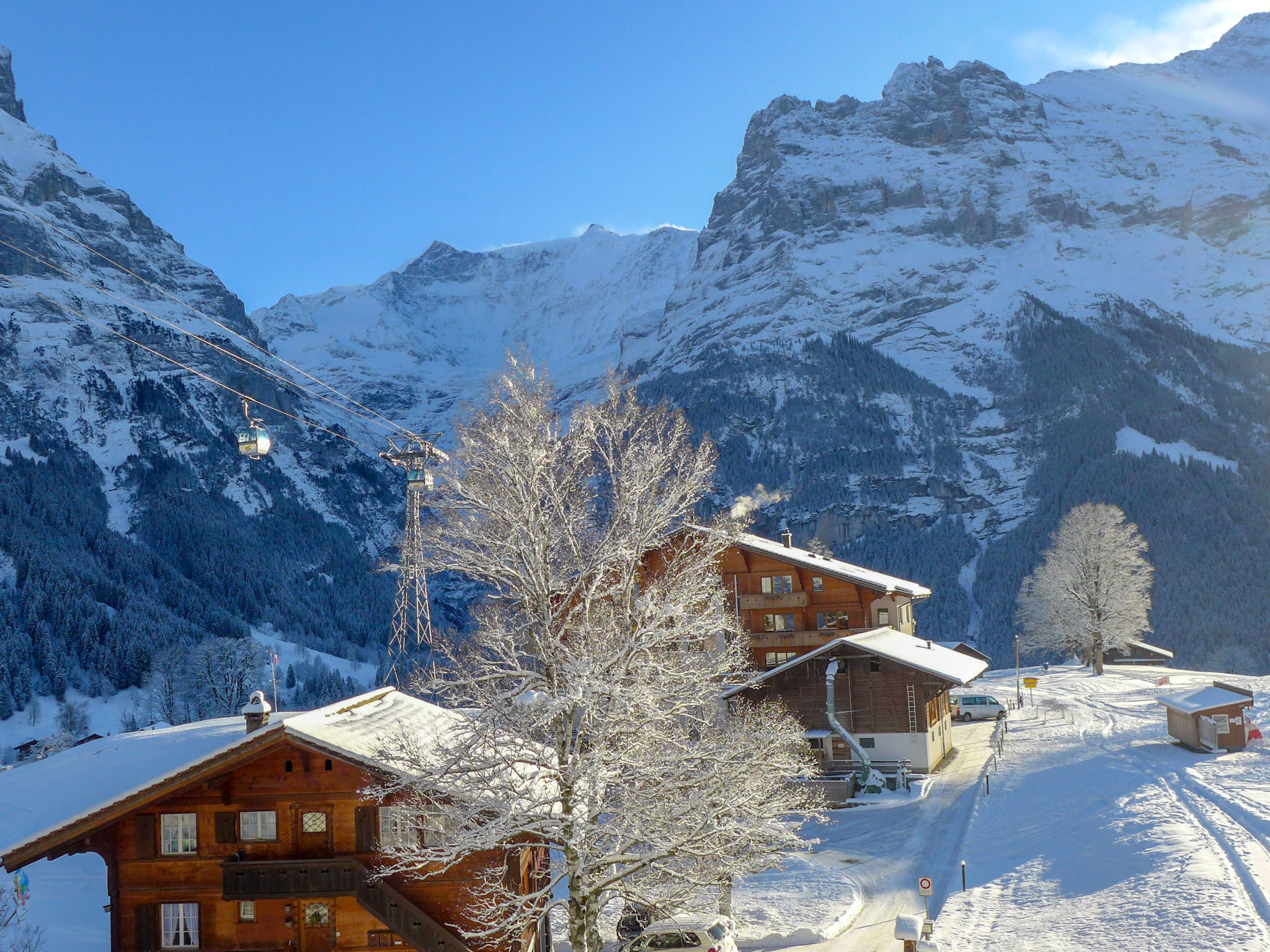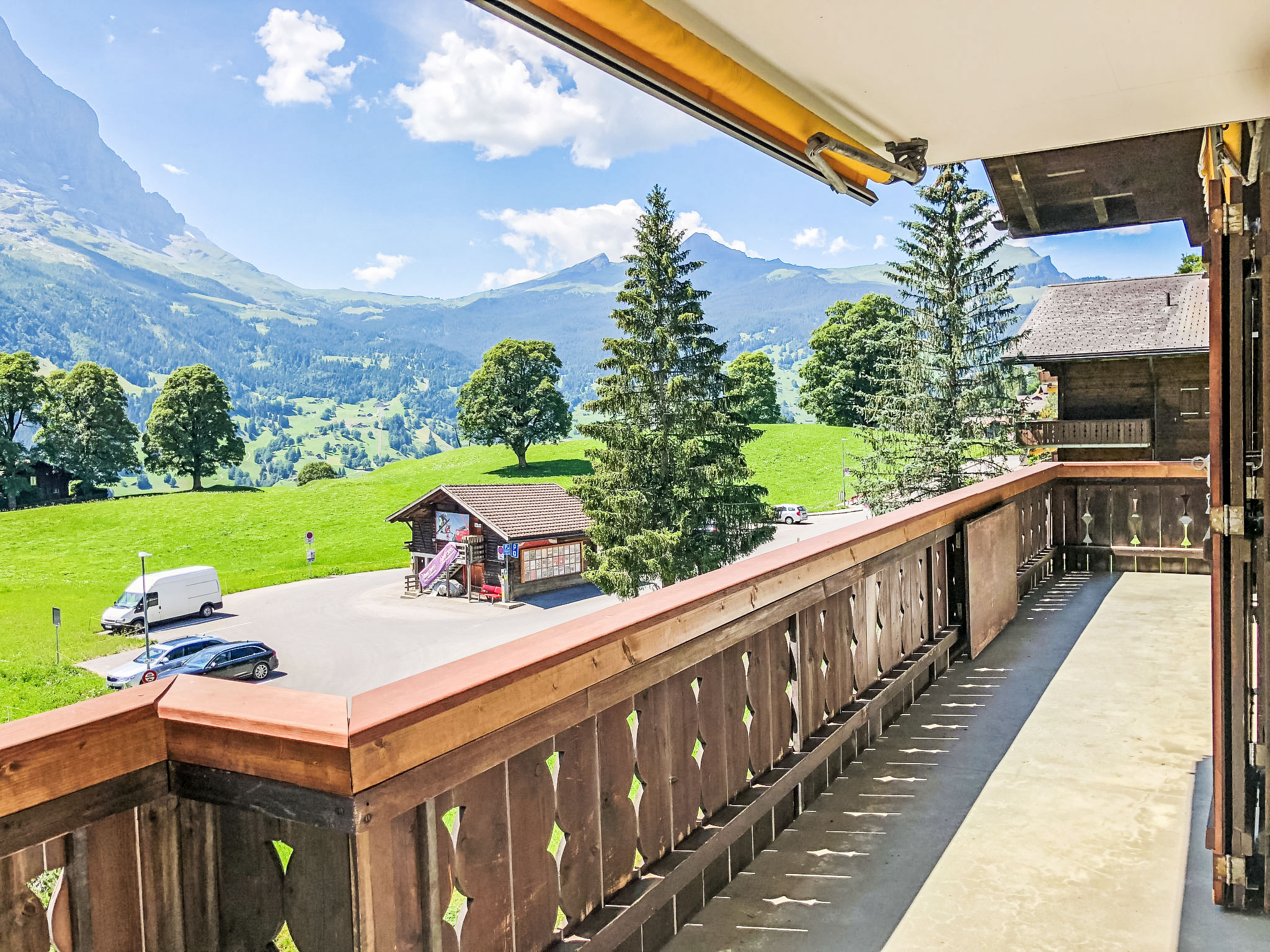 4-Zimmer-Wohnung 100 m2 im 2. Stock, Südlage. Modern und gemütlich eingerichtet: Wohn-/Esszimmer mit Kabel-TV (Flachbildschirm). Ausgang zum Balkon, Richtung Süden. 1 Doppelzimmer mit (90 cm, Länge 200 cm), Dusche/WC und Kabel-TV (Flachbildschirm). Ausgang zum Balkon, Richtung Süden. 1 Zimmer 6 m2 mit 1 x 2 Etagenbetten (80 cm, Länge 200 cm). 1 Doppelzimmer mit (90 cm, Länge 200 cm), Kabel-TV (Flachbildschirm). Offene Küche (Backofen, Geschirrspüler, 4 Glaskeramikplatten, Toaster, Wasserkocher, Mikrowelle, elektrische Kaffeemaschine, Kapseln für die Kaffeemaschine (Nespresso) extra, Racletteofen, Fondue Set (Käse)). Bad/WC. Parkettboden. Herrliche Sicht auf die Berge und Eigernordwand. Zur Verfügung: Kinderhochstuhl, Haartrockner. Internet (Wireless LAN, gratis). Parkplatz (2 Autos) beim Haus. Bitte beachten: geeignet für Familien. Nichtraucher-Unterkunft. Feuerlöscher, kein Fahrstuhl.