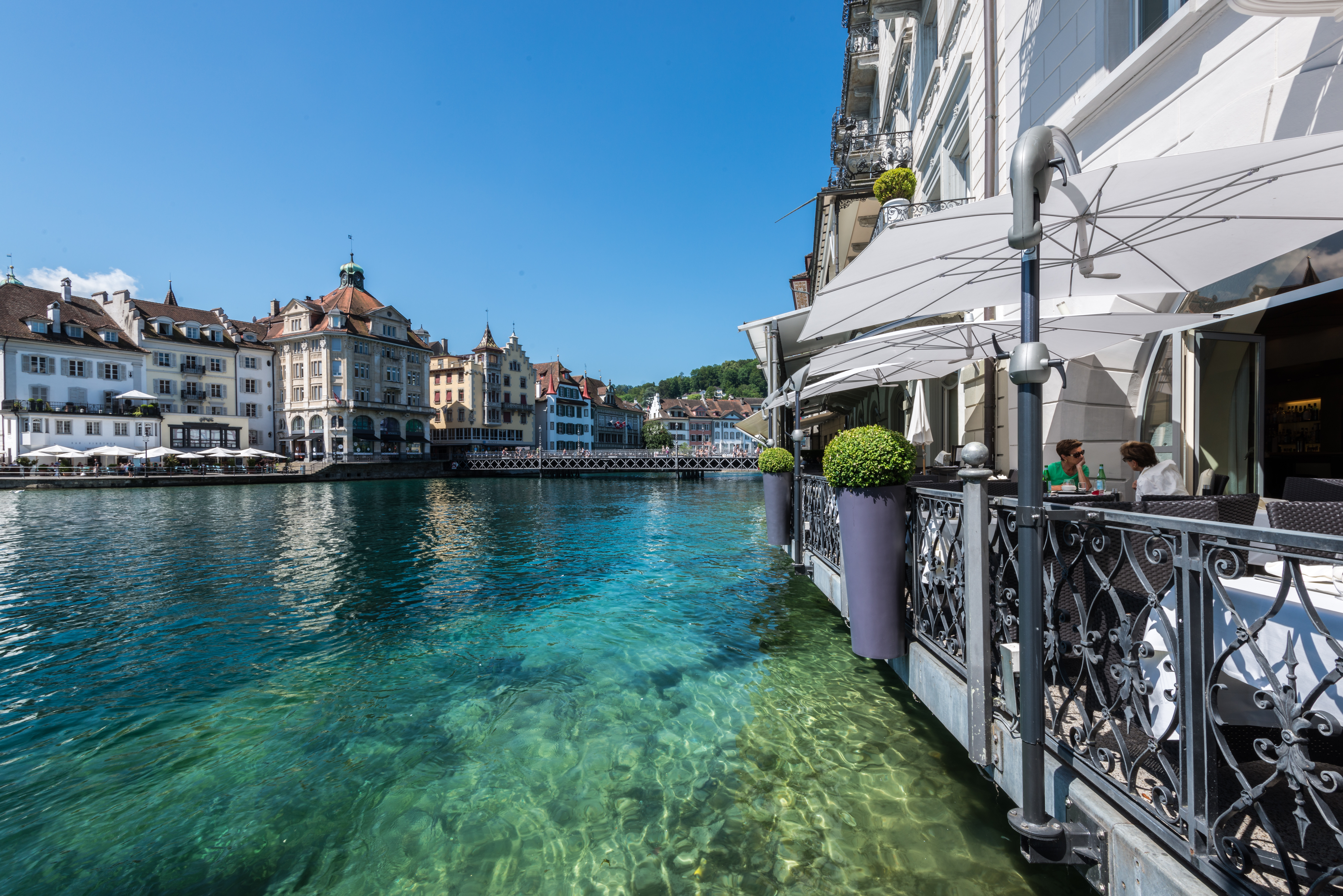 Ehemaliges Zunfthaus inmitten der Luzerner Altstadt. Herrliche Terrasse auf die Reuss. Einladende Zimmer mit Aussicht auf Kapellbrücke/Jesuitenkirche. Marktfrische Schweizer Küche. Elegante Bar.