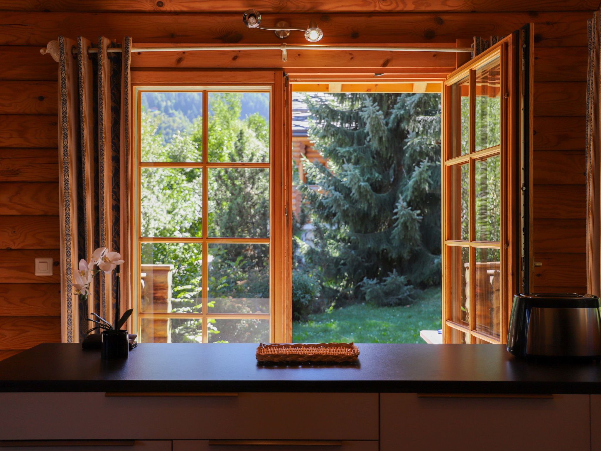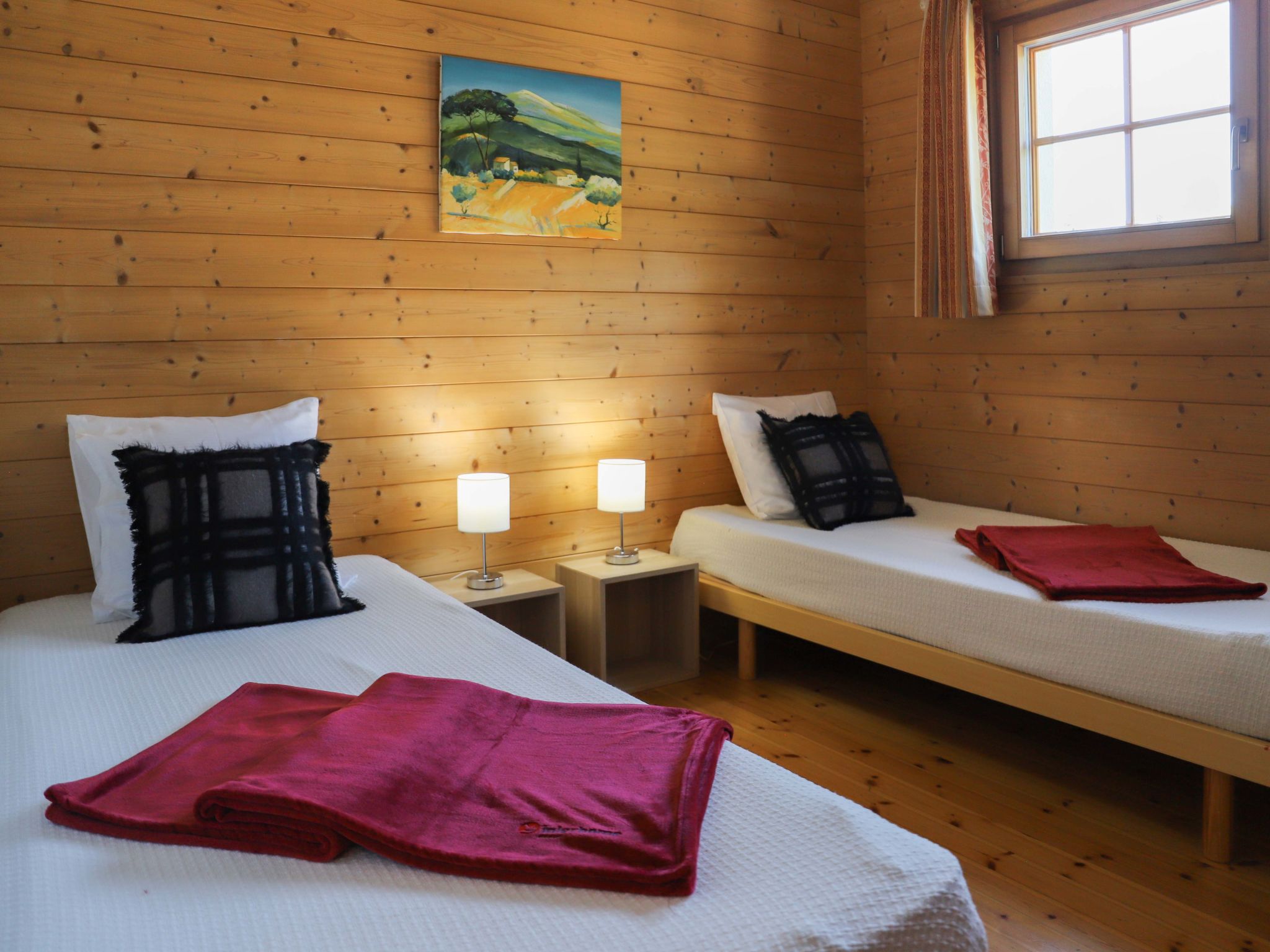 "Edelweiss", 7-Zimmer-Chalet 180 m2 auf 3 Stockwerken, Südostlage. Geräumig, mit viel Holz eingerichtet: Eingang. Grosses Wohn-/Esszimmer mit Schwedenofen und Kabel-TV. Ausgang zum Balkon. Offene Küche (Backofen, Geschirrspüler, 4 Glaskeramikplatten, Toaster, Wasserkocher, elektrische Kaffeemaschine, Kapseln für die Kaffeemaschine (Nespresso) extra, Racletteofen, Fondue Set (Käse)). Dusche/WC. E-Heizung. Unteres Geschoss: 2 Zimmer, jedes Zimmer mit 2 Betten (90 cm, Länge 200 cm). 1 Zimmer mit 1 franz. Bett (160 cm, Länge 200 cm). Dusche, sep. WC, Sauna. Dachgeschoss: 2 Zimmer, jedes Zimmer mit 2 Betten (90 cm, Länge 200 cm). Ausgang zum Balkon und Richtung Osten. 1 Zimmer mit 1 franz. Bett (160 cm, Länge 200 cm). Ausgang zum Balkon. Bad/WC. 2 Balkone, Ostlage, Terrasse 30 m2, Südlage und Ostlage. Terrassenmöbel, Gartengrill, Liegestühle (5). Schöne Panoramasicht auf die Berge. Zur Verfügung: Kinderhochstuhl, Babybett. Internet (WLAN, gratis). Parkplatz (2 Autos), Garage, Höhe 200 cm, Breite 220 cm. Bitte beachten: Nichtraucher-Haus.