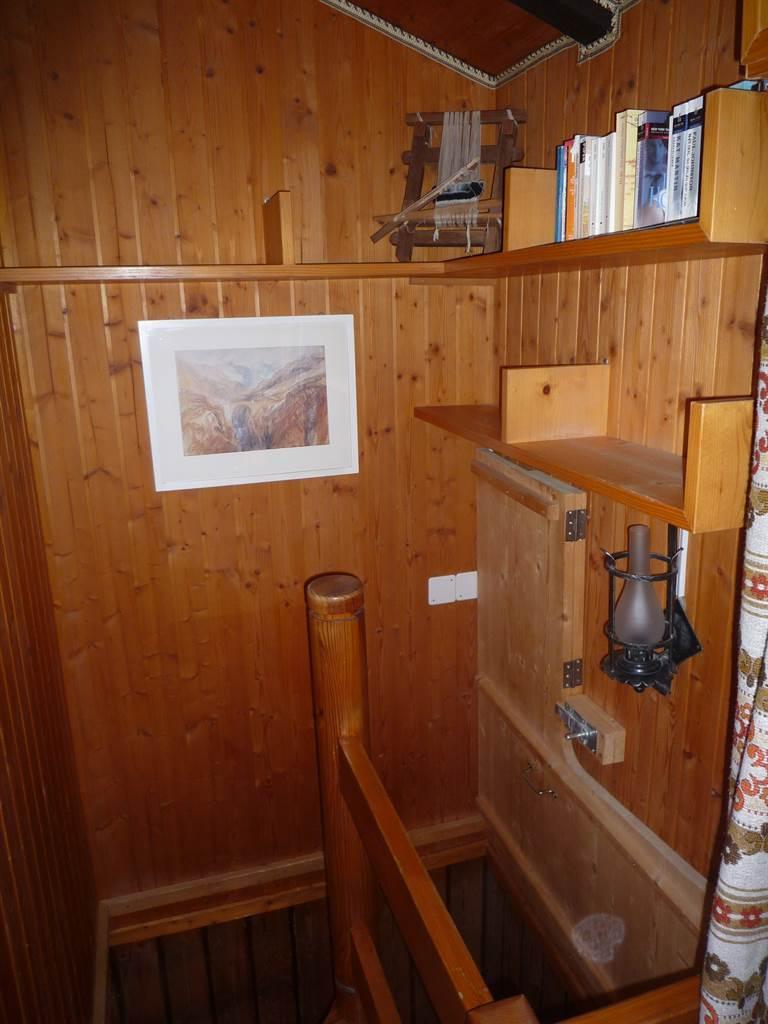 Das aus einem echten Walliserstadel erbaute Ferienhäuschen liegt sehr zentral; Poststation und Luftseilbahntalstationen sind in höchstens 10 Minuten zu erreichen. Durch die etwas erhöhte Lage abseits der Hauptstrasse hat man eine wundervolle Aussicht vom Balkon auf die Bergwelt von Saas-Fee und Umgebung. Im Erdgeschoss befindet sich das Wohnzimmer mit funktionstüchtigem Specksteinofen, Radio,TV, Stereoanlage und Wifi sowie eine komplett eingerichtete Küche. Durch eine Wendeltreppe erreicht man die erste Etage,wo sich das Schlafzimmer mit Doppelbett und das WC mit Dusche befinden.