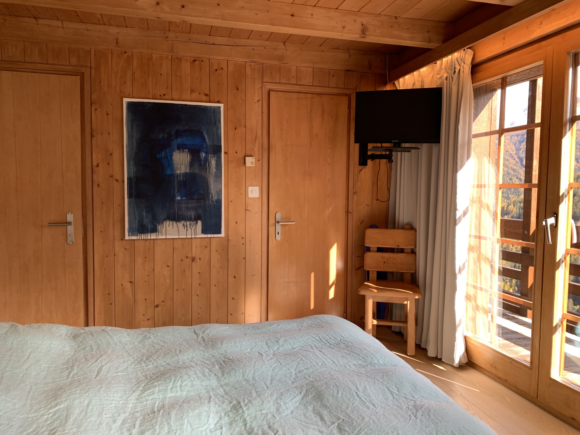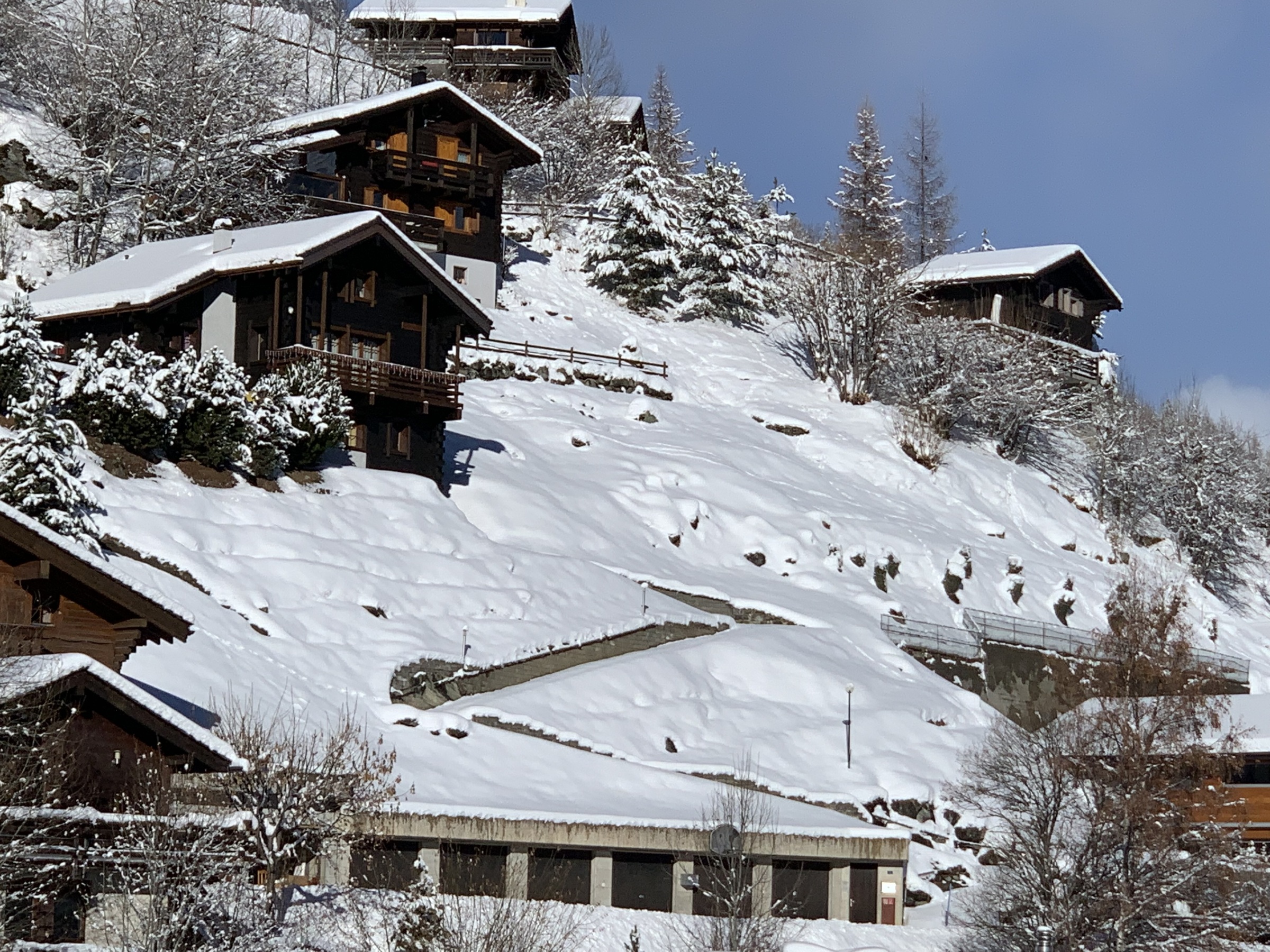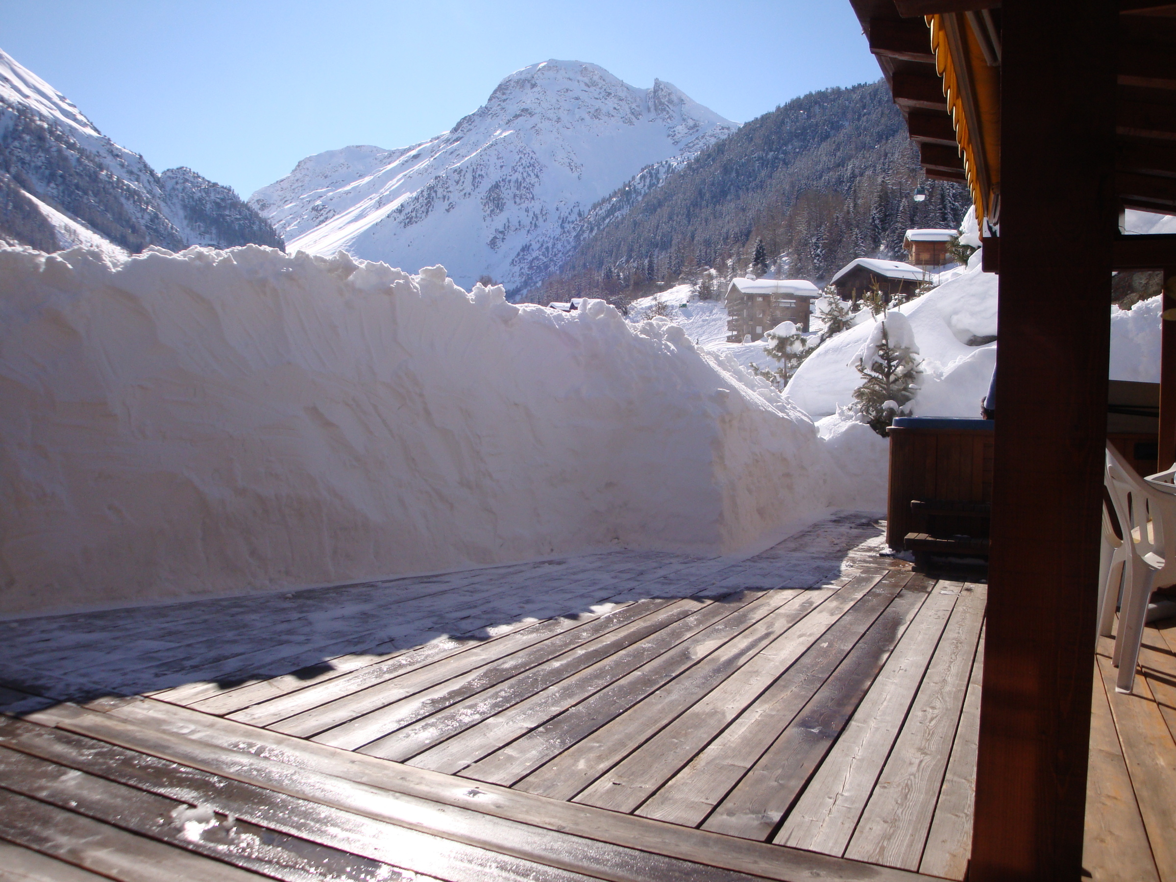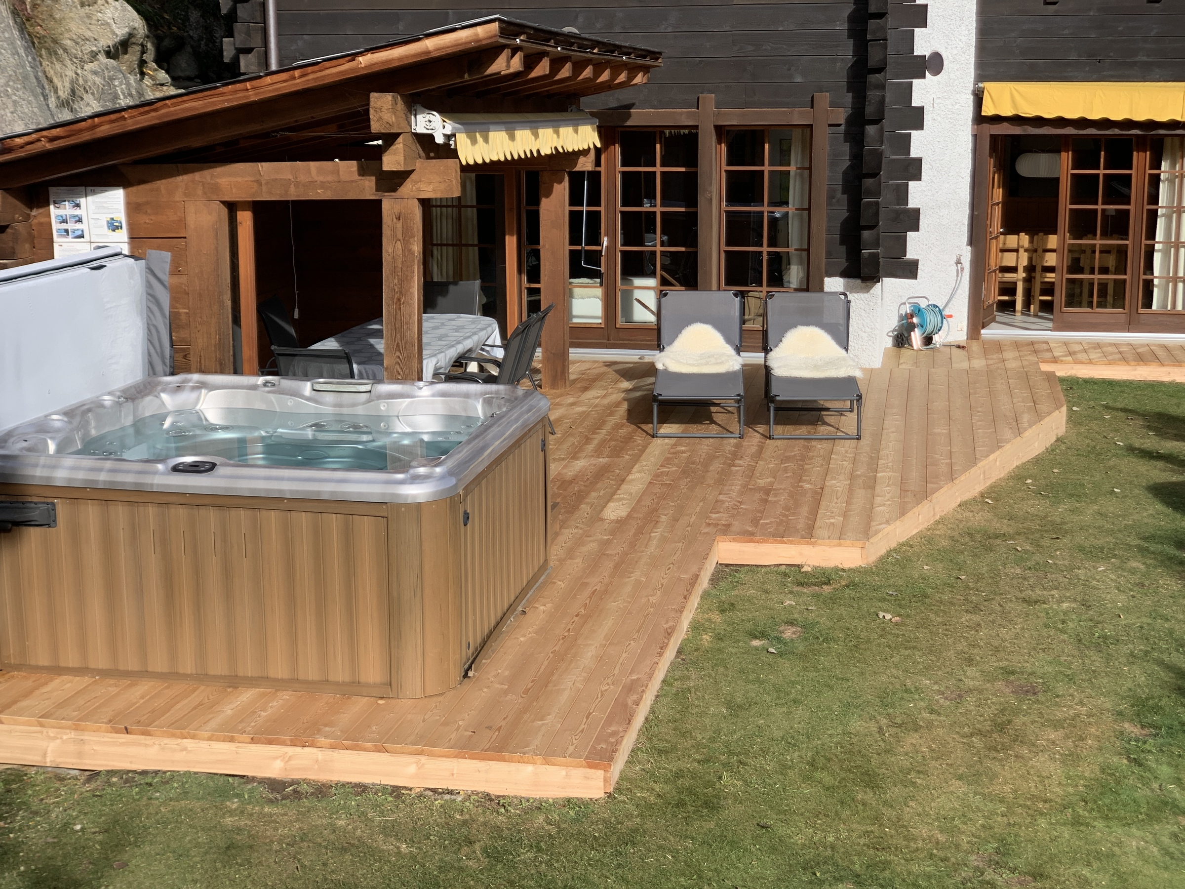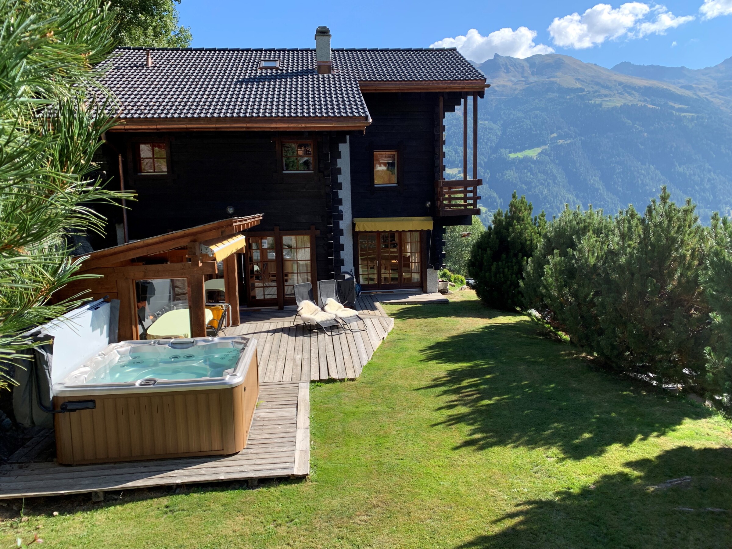 Chalet mit Jacuzzi, sehr komfortabel für 8 - 10 Personen : Erdgeschoss : Eingang mit grosser Garderobe – 1. Stock : Living mit Holzofen - TV/DVD – Küche mit Geschirrspüler, Mikrowelle, Kühl- Gefrierschrank und Kaffeemaschine Nespresso - WC – Essecke – grosse Südterrasse mit überdachtem Essplatz, Grill und Jacuzzi – 2. Stock : 1 Zimmer mit Doppelbett (1.60m), TV, privater Dusche/WC, Dressing und Ostbalkon - 1 Zimmer mit 2 Etagenbetten und 1 Doppelbett (1.40m) auf der Mezzanine - 1 Zimmer mit 1 Doppelbett (1.60m) und Mezzanine mit Leseecke - 1 Zimmer mit Doppelbett (1.40m) - WC -Bad mit Wanne – Waschmaschine und Trockner - faltbares Babybett - Babystuhl - kostenloses Internet Wi-Fi - 1 Doppelgarage mit Ski-room Ecke - 150m von den Skipisten entfernt – Zugang über Weg - Nichtraucher – Tiere nur auf Anfrage (Aufpreis CHF 60.-)