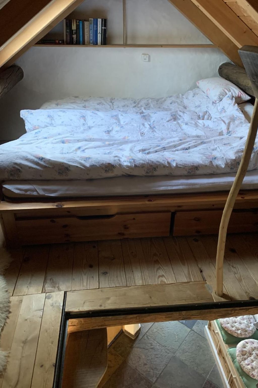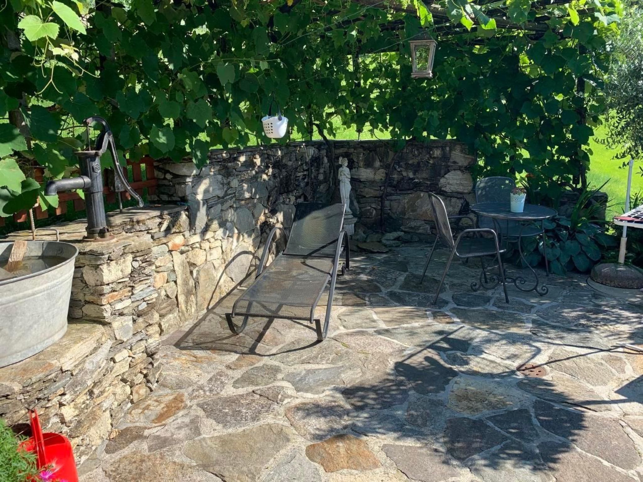 mit direktem Ausgang zur Traubenpergola mit Sitz-und Liegemöglichkeit.Im Dachstock stet ebenfalls ein Doppelbett