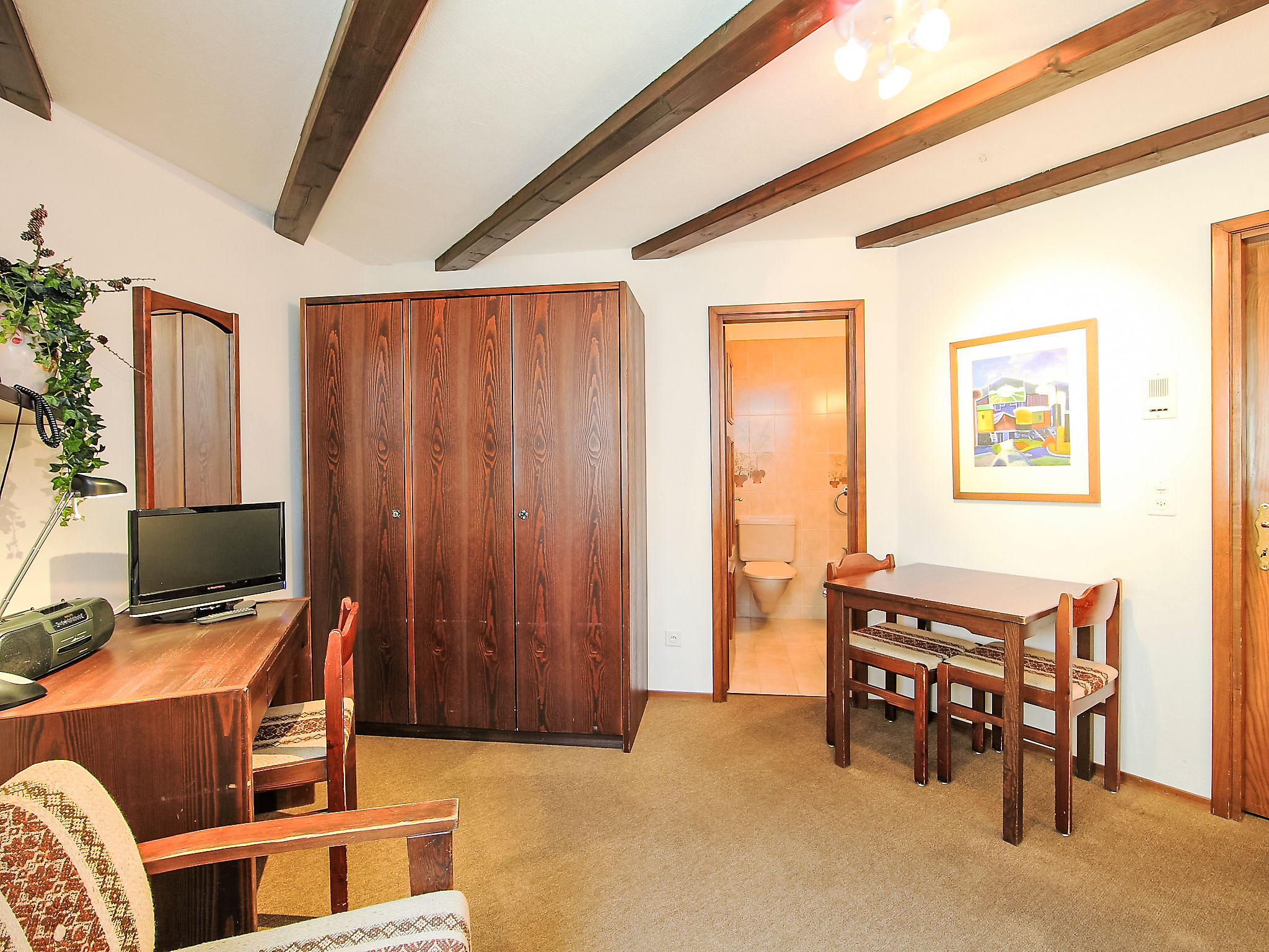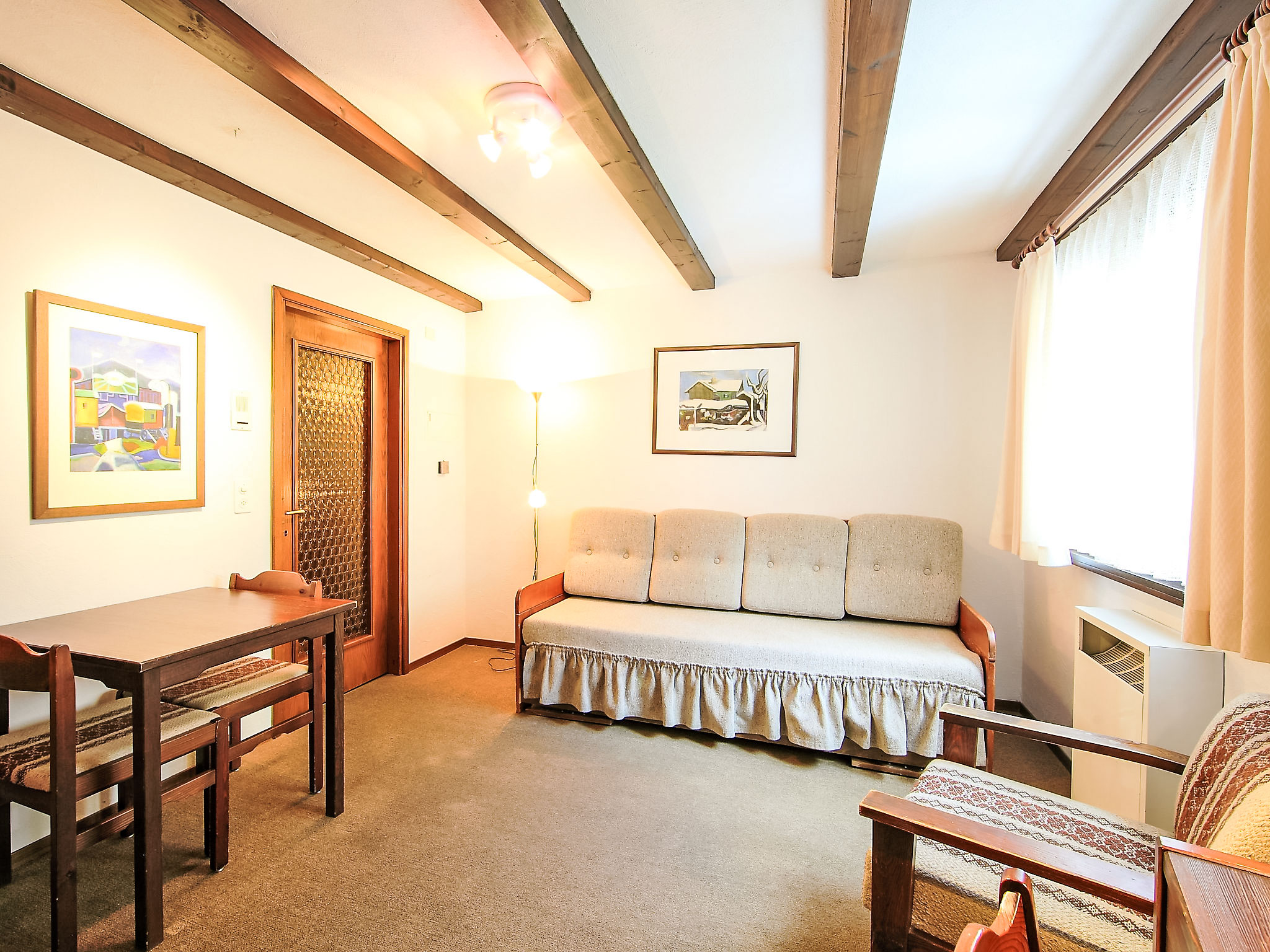 "Residenza Chesa Margun 14-1", 1-Zimmer-Wohnung 24 m2, Nordlage. Einfach eingerichtet: kleines Wohn-/Schlafzimmer mit 1 Doppeldiwanbett (2 x 80 cm, Länge 180 cm), Kabel-TV (Flachbildschirm), Radio. Kochnische im Eingang (Backofen) mit E-Heizung. Dusche/WC. E-Heizung. Zur Verfügung: Internet (WLAN). Garage. Bitte beachten: Nichtraucher-Unterkunft. Maximal 1 Haustier/Hund erlaubt. Wohnung befindet sich über der Garageneinfahrt.