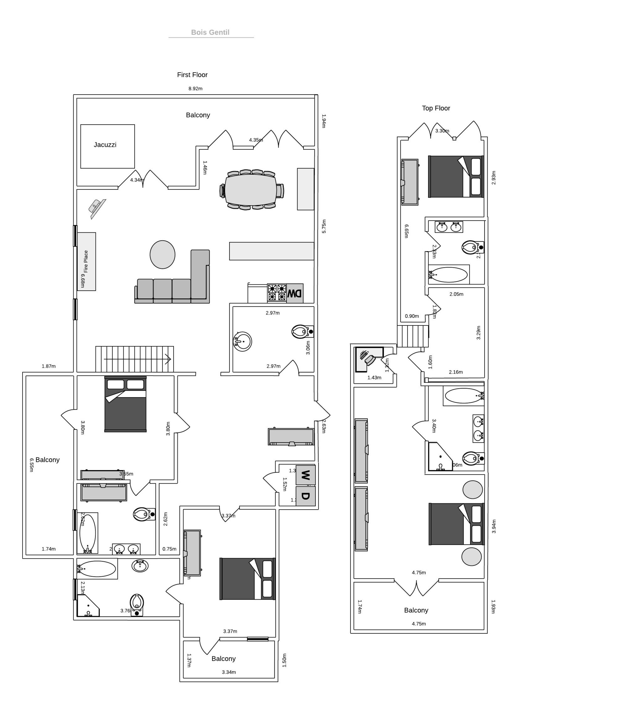 Diese anspruchsvolle Residenz verfügt über vier geräumige Doppelzimmer, jedes mit einem luxuriösen Bad. Zwei davon befinden sich im Obergeschoss und zwei weitere im Erdgeschoss, für maximale Privatsphäre und Komfort.