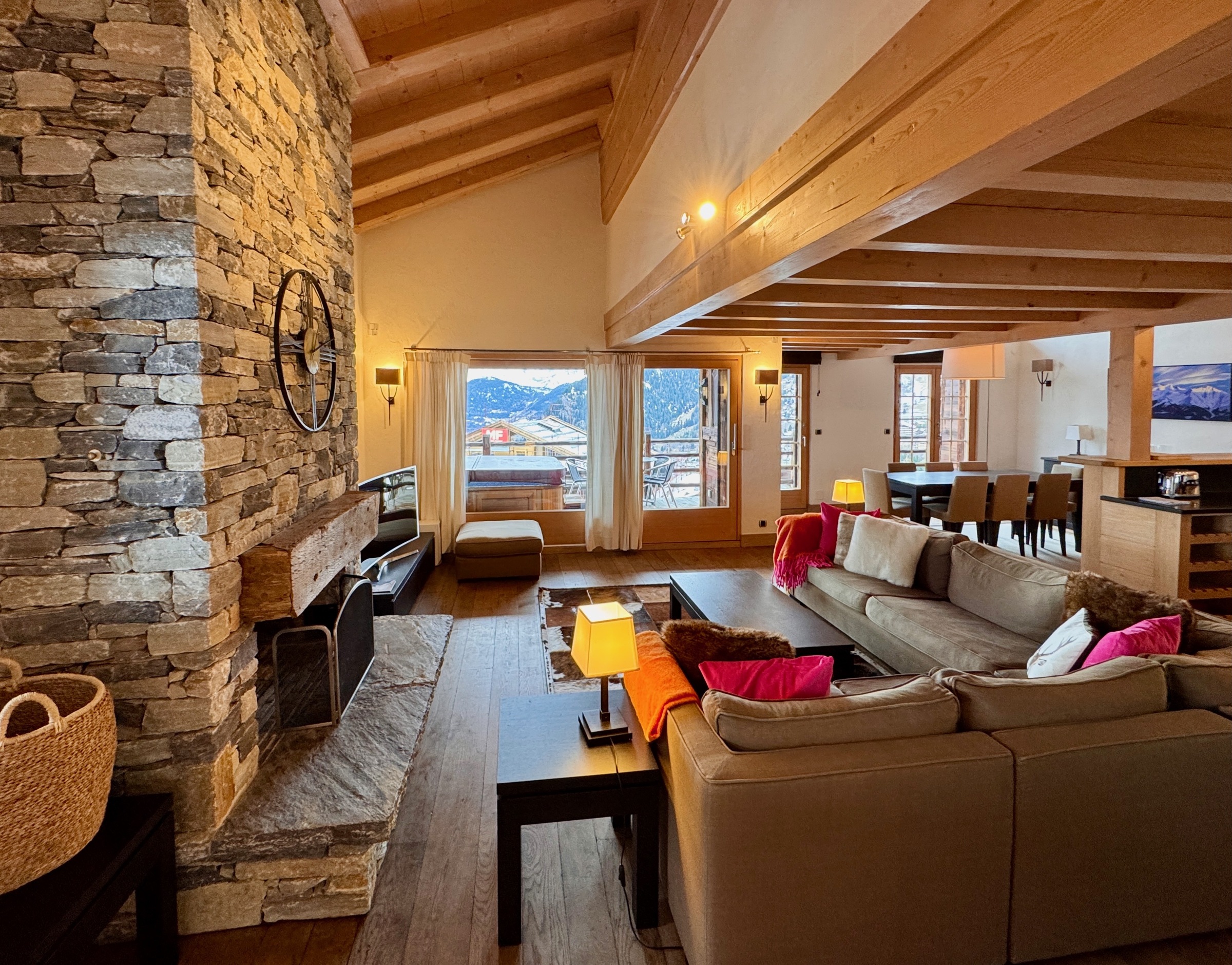 Erleben Sie den Inbegriff alpiner Eleganz in diesem weitläufigen Duplex-Penthouse mit vier Schlafzimmern, das günstig direkt hinter dem legendären W Hotel und nur wenige Minuten von den Skiliften von Médran entfernt liegt. Diese anspruchsvolle Residenz verfügt über vier geräumige Doppelzimmer, jedes mit einem luxuriösen Bad. Zwei davon befinden sich im Obergeschoss und zwei weitere im Erdgeschoss, für maximale Privatsphäre und Komfort. Das Herzstück des Hauses ist ein wunderschön gestalteter, offener Wohnbereich, der einen schicken Essbereich nahtlos mit einer voll ausgestatteten Gourmetküche verbindet, die sich perfekt für die Bewirtung eignet. Treten Sie auf den privaten Balkon, um einen atemberaubenden Panoramablick auf die Berge zu genießen, oder entspannen Sie sich nach einem Tag auf der Piste im Whirlpool im Freien. Mit direktem Zugang zu den Pisten und nur einen kurzen Spaziergang vom geschäftigen Zentrum von Verbier entfernt, genießt diese Immobilie eine außergewöhnliche Lage. Es verfügt auch über eine sichere Garage für ein Fahrzeug, die Ihnen einen luxuriösen Kurzurlaub in aller Ruhe garantiert.