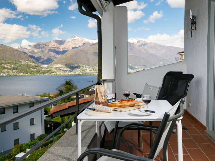 "Residenza Miralago Apt. C29", 1-Zimmer-Wohnung 64 m2 im 2. Stock. Geräumig und hell, teilweise renoviert im Jahre 2021, komfortabel und modern eingerichtet: offenes grosses Wohn-/Esszimmer mit 1 Doppelbett (180 cm, Länge 200 cm), Essecke und Kabel-TV (Flachbildschirm), Radio. Ausgang zum Balkon. Offene Küche im Eingang (Backofen, Geschirrspüler, 4 Glaskeramikplatten, elektrische Kaffeemaschine, Kapseln für die Kaffeemaschine (Nespresso) extra). Dusche/WC. Heizung. Balkon. Balkonmöbel. Herrliche Panoramasicht auf den See, die Berge und die Landschaft. Bitte beachten: Nichtraucher-Unterkunft. NL-00003597