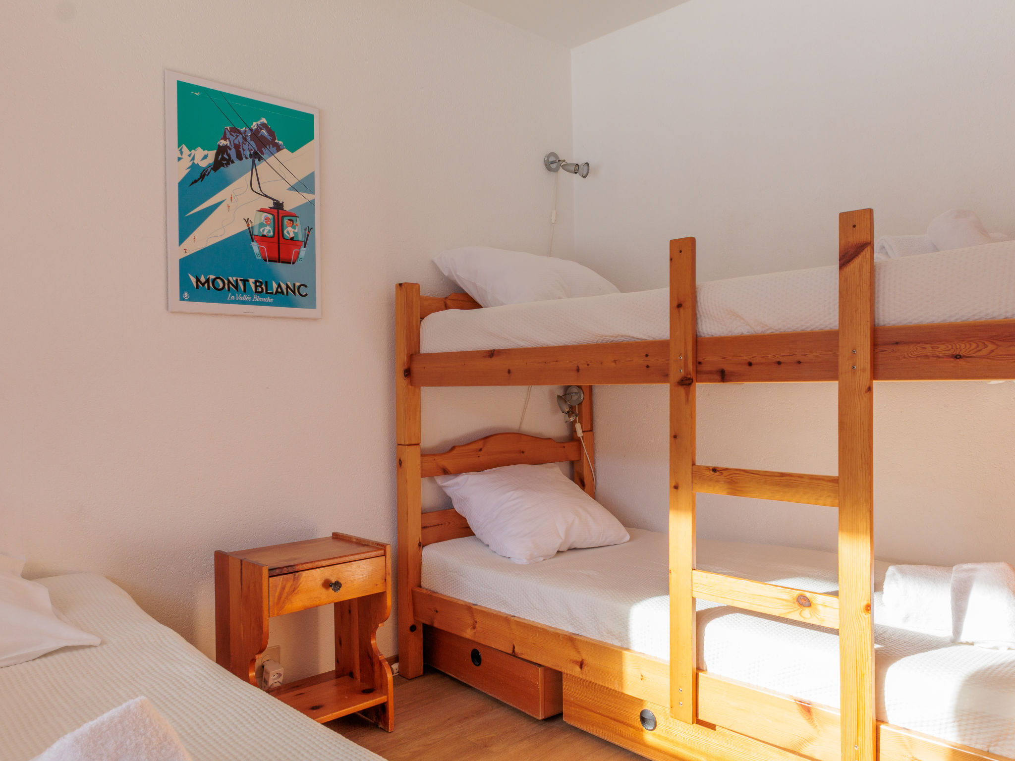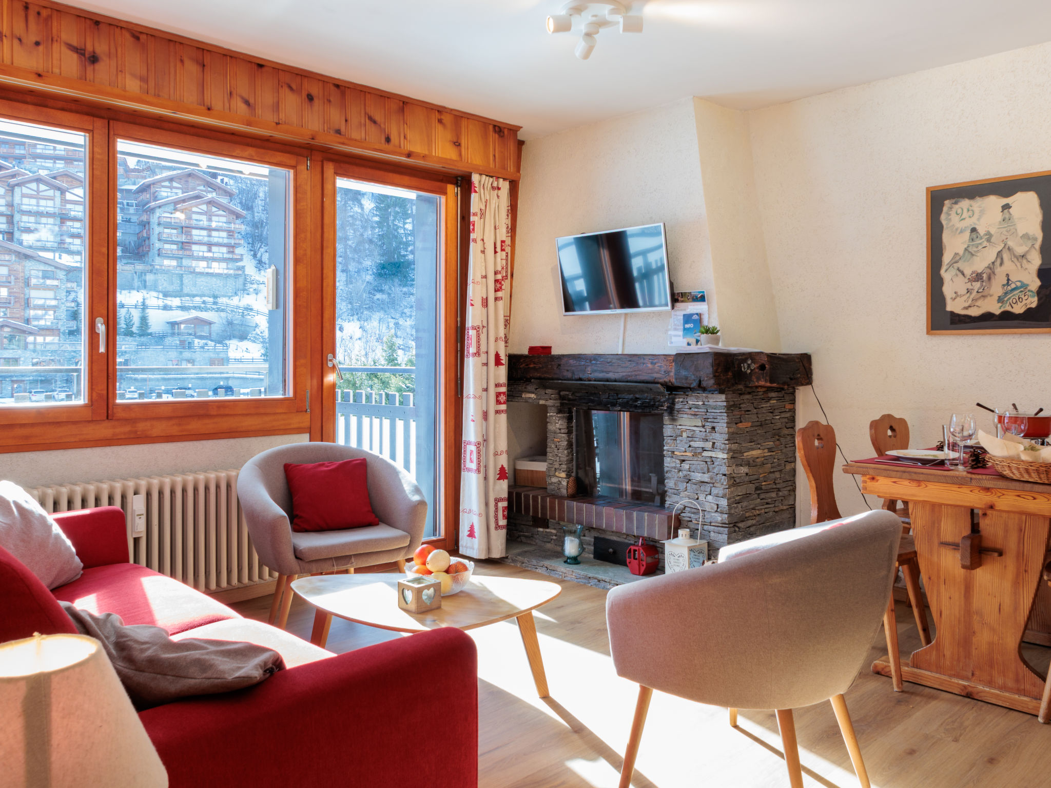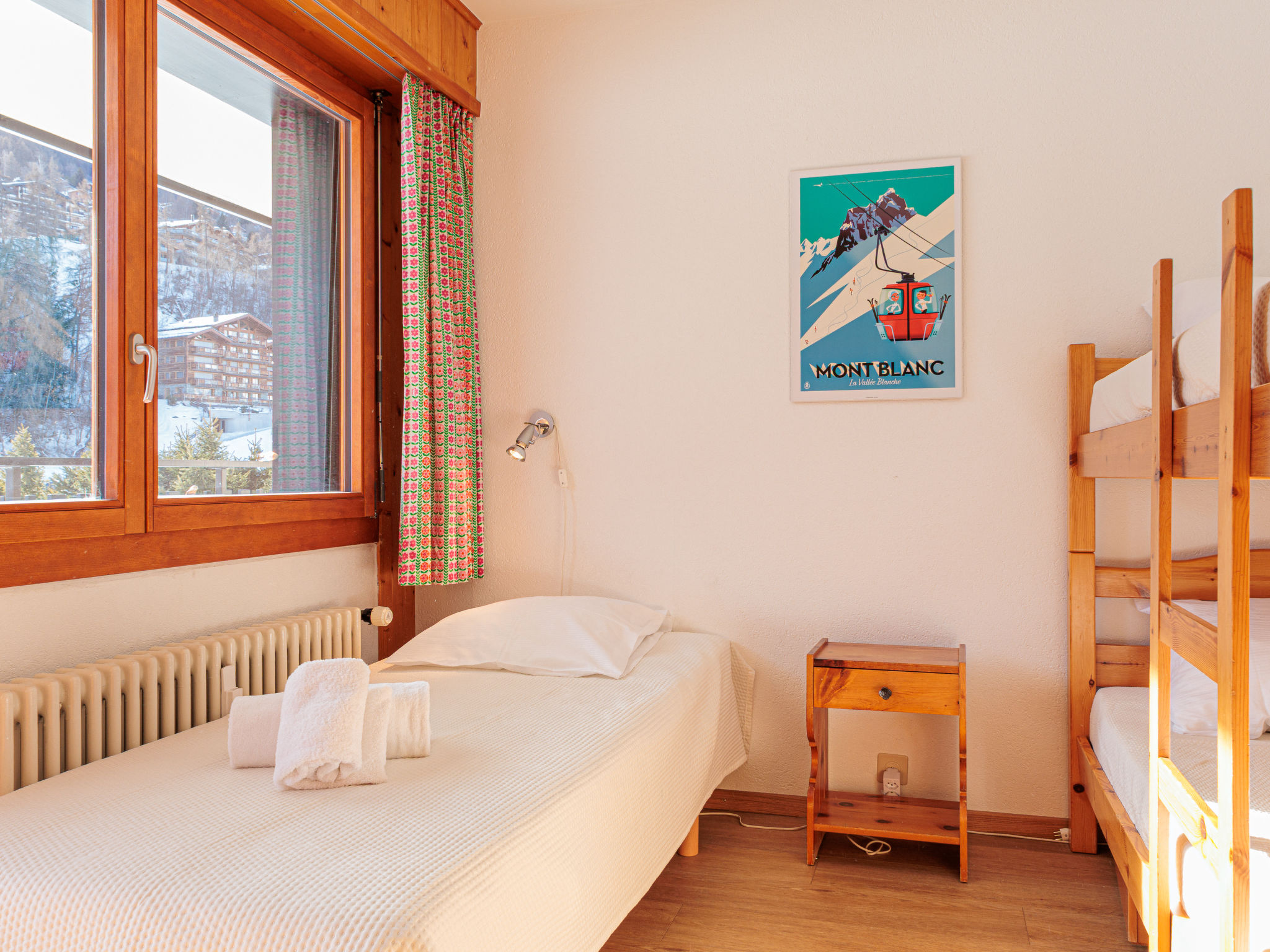 "Ecluses 2", 3-Zimmer-Wohnung 62 m2 im 1. Stock. Teilweise renoviert im Jahre 2026, komfortabel eingerichtet: Wohn-/Esszimmer mit offenem Kamin (nur Deko), Kabel-TV. Ausgang zum Balkon. 1 Zimmer mit 1 Bett (90 cm, Länge 190 cm), 1 x 2 Etagenbetten (90 cm, Länge 190 cm). Ausgang zum Balkon, Richtung Süden. 1 Zimmer mit 1 franz. Bett (160 cm, Länge 190 cm). Ausgang zum Balkon, Richtung Süden. Offene Küche (Backofen, Geschirrspüler, 4 Glaskeramikplatten, Toaster, Wasserkocher, elektrische Kaffeemaschine, Fondue Set (Chinoise, Käse)). Dusche/WC, sep. WC. Balkon, Südlage. Balkonmöbel. Sicht auf die Ortschaft. Zur Verfügung: Haartrockner. Internet (WLAN, gratis). Parkplatz Nr. 2 (überdacht), Höhe 270 cm, Breite 240 cm. Bitte beachten: Nichtraucher-Unterkunft.