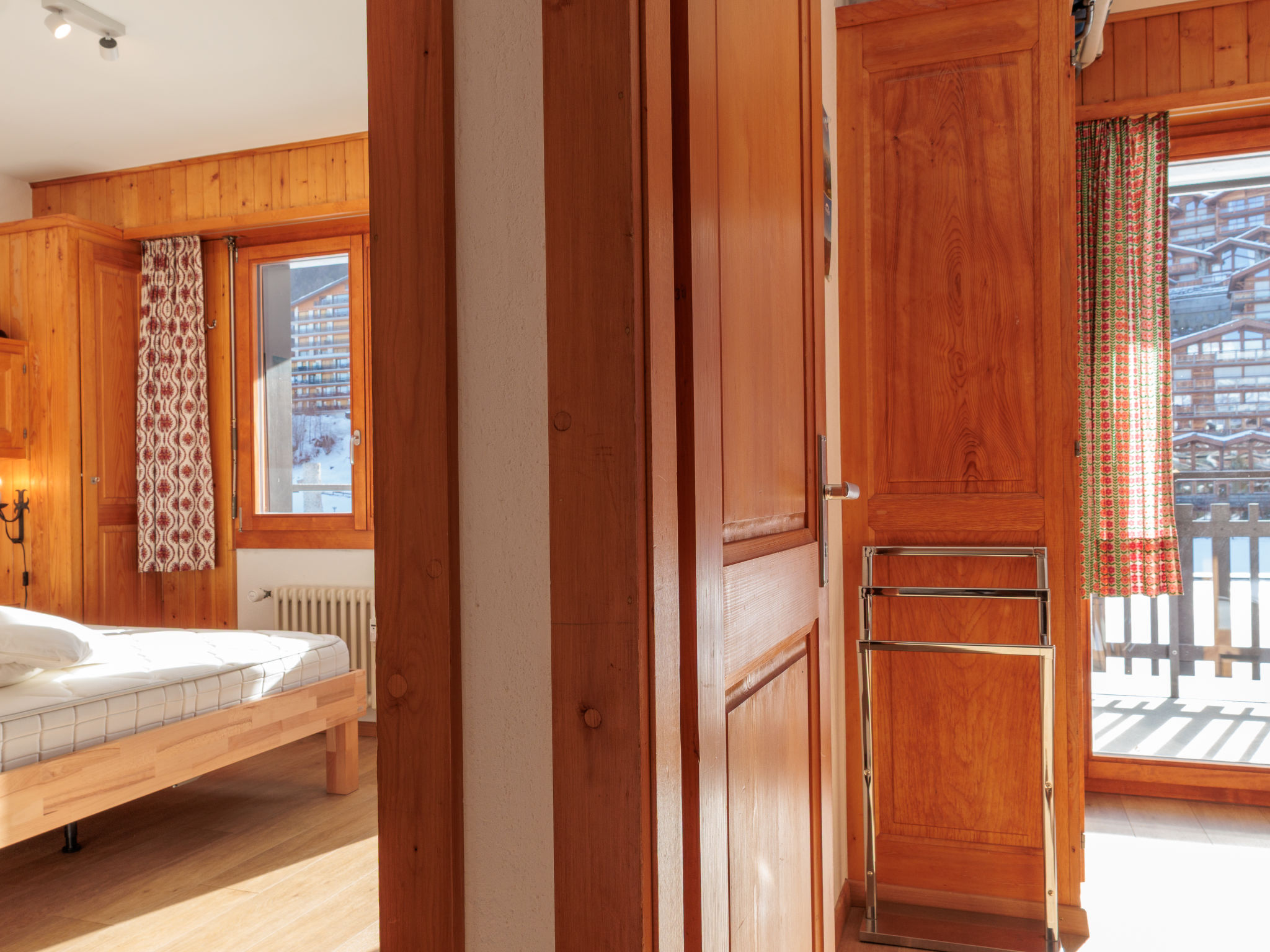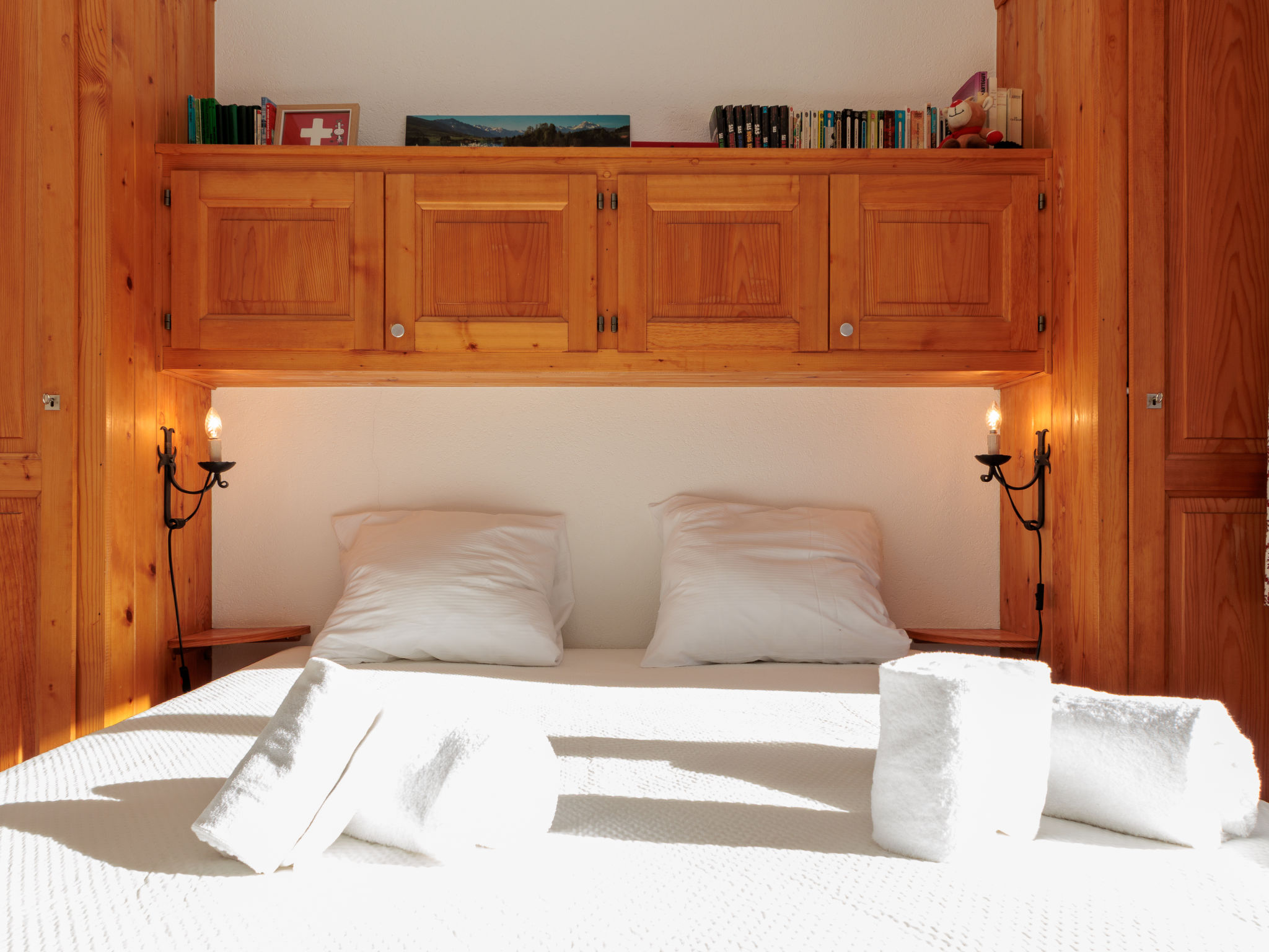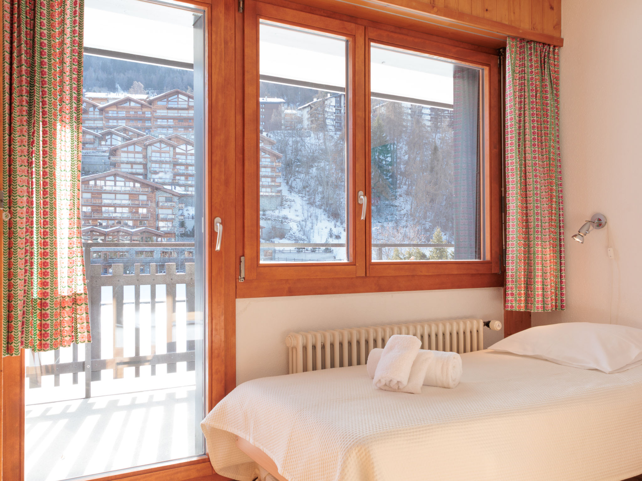 "Ecluses 2", 3-Zimmer-Wohnung 62 m2 im 1. Stock. Teilweise renoviert im Jahre 2026, komfortabel eingerichtet: Wohn-/Esszimmer mit offenem Kamin (nur Deko), Kabel-TV. Ausgang zum Balkon. 1 Zimmer mit 1 Bett (90 cm, Länge 190 cm), 1 x 2 Etagenbetten (90 cm, Länge 190 cm). Ausgang zum Balkon, Richtung Süden. 1 Zimmer mit 1 franz. Bett (160 cm, Länge 190 cm). Ausgang zum Balkon, Richtung Süden. Offene Küche (Backofen, Geschirrspüler, 4 Glaskeramikplatten, Toaster, Wasserkocher, elektrische Kaffeemaschine, Fondue Set (Chinoise, Käse)). Dusche/WC, sep. WC. Balkon, Südlage. Balkonmöbel. Sicht auf die Ortschaft. Zur Verfügung: Haartrockner. Internet (WLAN, gratis). Parkplatz Nr. 2 (überdacht), Höhe 270 cm, Breite 240 cm. Bitte beachten: Nichtraucher-Unterkunft.