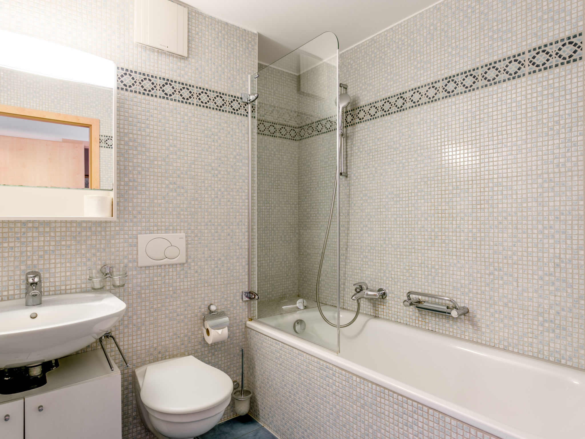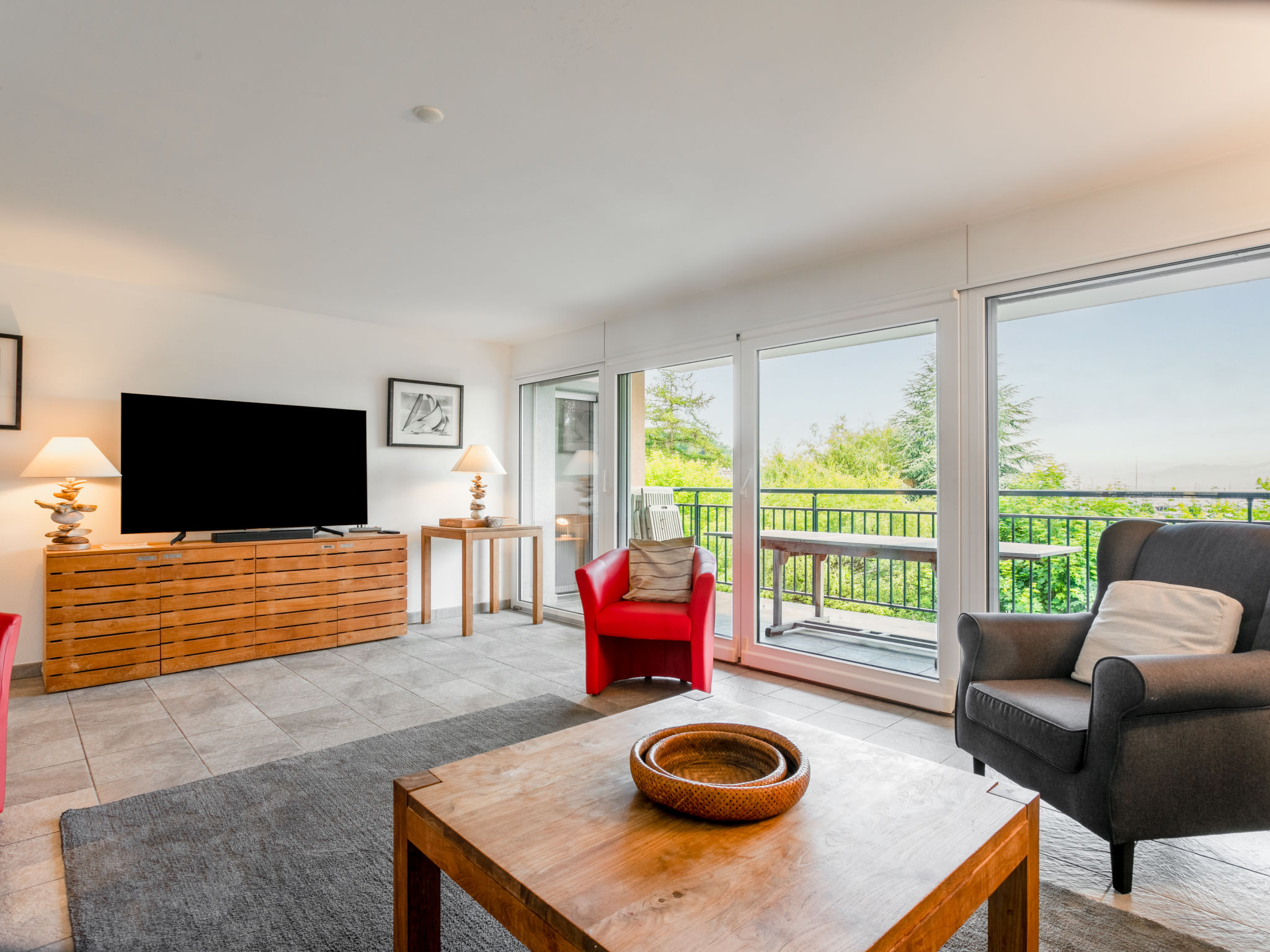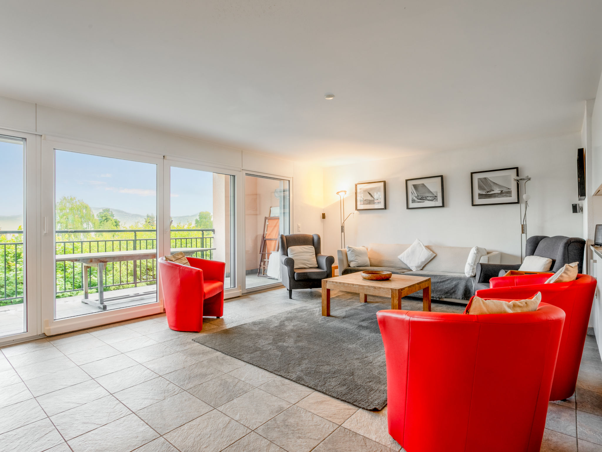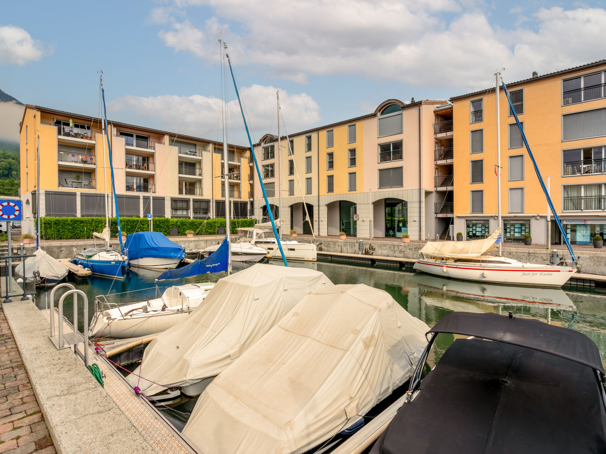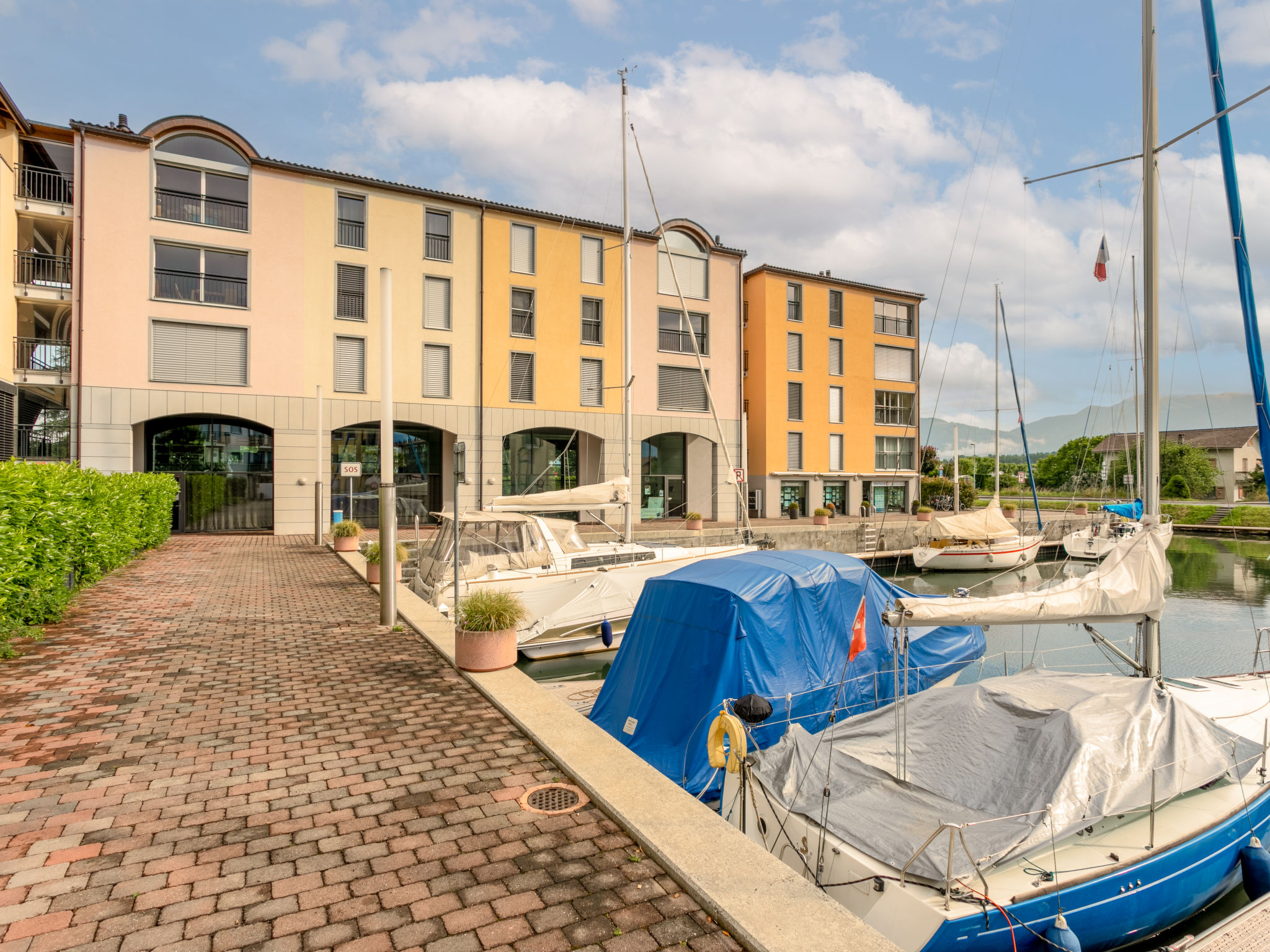 Grosse Ferienanlage "Residenz Marina". Am Ortsrand, 300 m vom Zentrum von Le Bouveret, ruhige, sonnige Lage, 200 m vom See, 50 m vom Kanal. Im Hause: Zentralheizung. Einkaufsgeschäft, Lebensmittelgeschäft 800 m, Restaurant, Bäckerei 500 m, Fahrradverleih 190 m, Bushaltestelle "Bouveret village" 1.2 km, Bahnstation "Le Bouveret" 300 m, Kieselstrand 200 m, Freibad 300 m, Hallenbad 7.2 km, Thermalbad 30 km, Strandbad 300 m, Badesee "Léman" 300 m. Sporthafen 200 m, Golfplatz (18 Loch) 15 km, Surfschule 200 m, Tennis, Minigolf 12 km, Wanderwege ab Haus 300 m, Bergeisenbahn 15 km, Skipisten 18 km, Skischule 18 km, Kinderskischule 35 km, Schlittelbahn 29 km, Langlaufloipe 35 km, Eisfeld 18 km. Nahe gelegene Sehenswürdigkeiten: Parc Aventure 17 km, Château Chillon / Fort de Chillon, Swiss Vapeur Parc 100 m, Aqua Parc 500 m. Bekannte Skigebiete sind gut erreichbar: Les Portes du Soleil 18 km, Villars 35 km, Leysin 31 km. Bekannte Seen in der Umgebung sind gut erreichbar: Lac Léman. Wandergebiete: Portes du Soleil. Die Schlüsselübergabe findet bei der Agentur Interhome in Bouveret statt. Die Nachbarschaft ist sehr lärmempfindlich. Ruhe und gutes Benehmen wird erwartet.