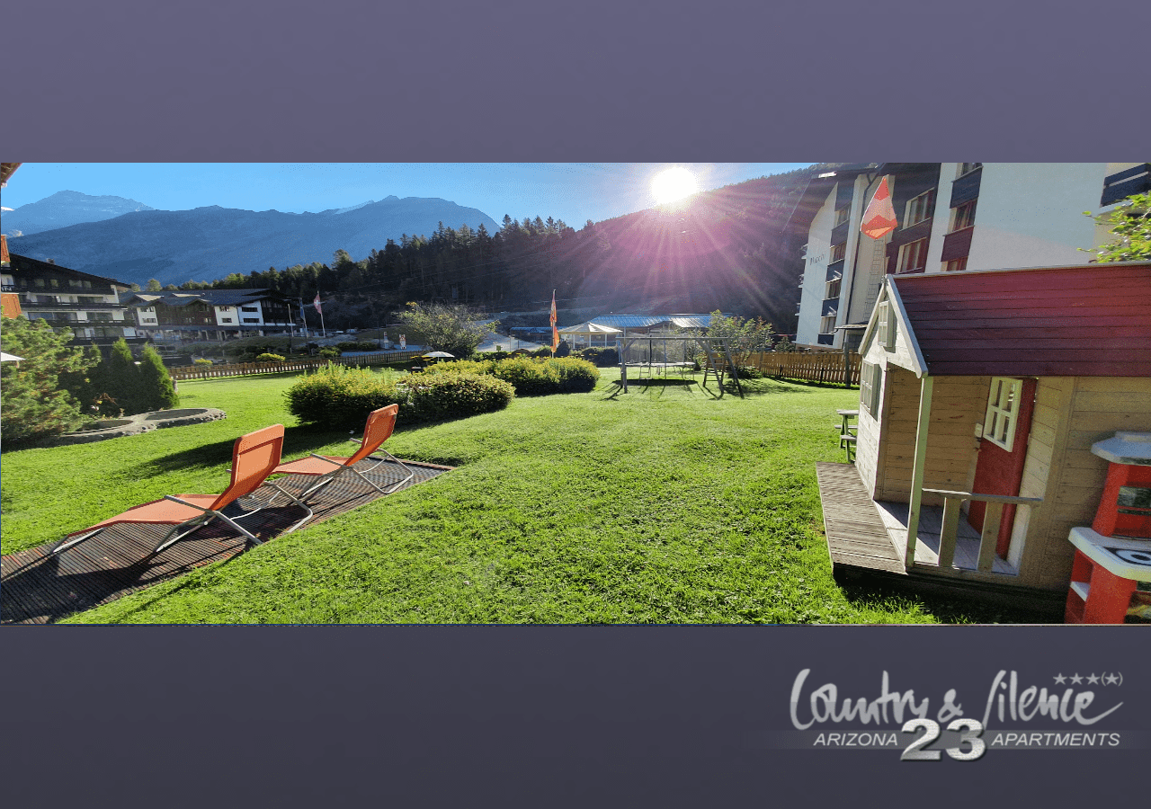 Die Wohnungen sind je nach Wohnungsgrösse mit einem Schlafzimmer, einem Wohnraum mit Polstergarnitur, Esstisch und Kochnische mit Backofen, Geschirrspüler, TV und Radio, WLAN, Dusche - Bad und WC, Balkon ausgestattet. Einen grossen Kinderspielpatz und unsere Liegewiese finden Sie in unserem Garten. Alle Wohnungen sind vom Verband Schweiz Tourismus klassifiziert.