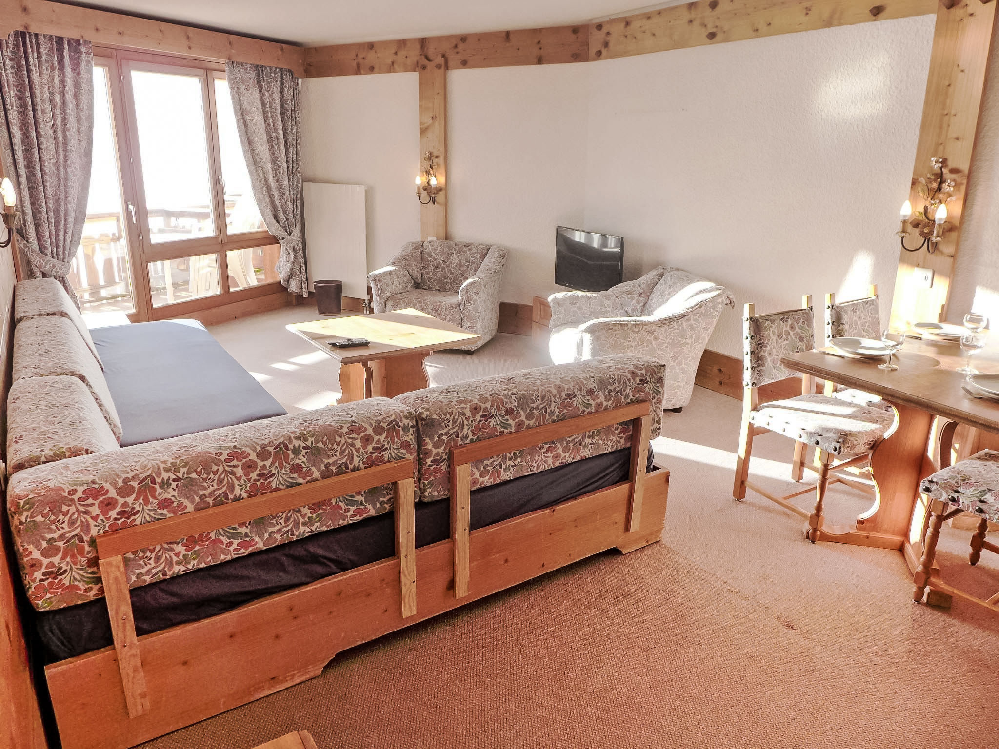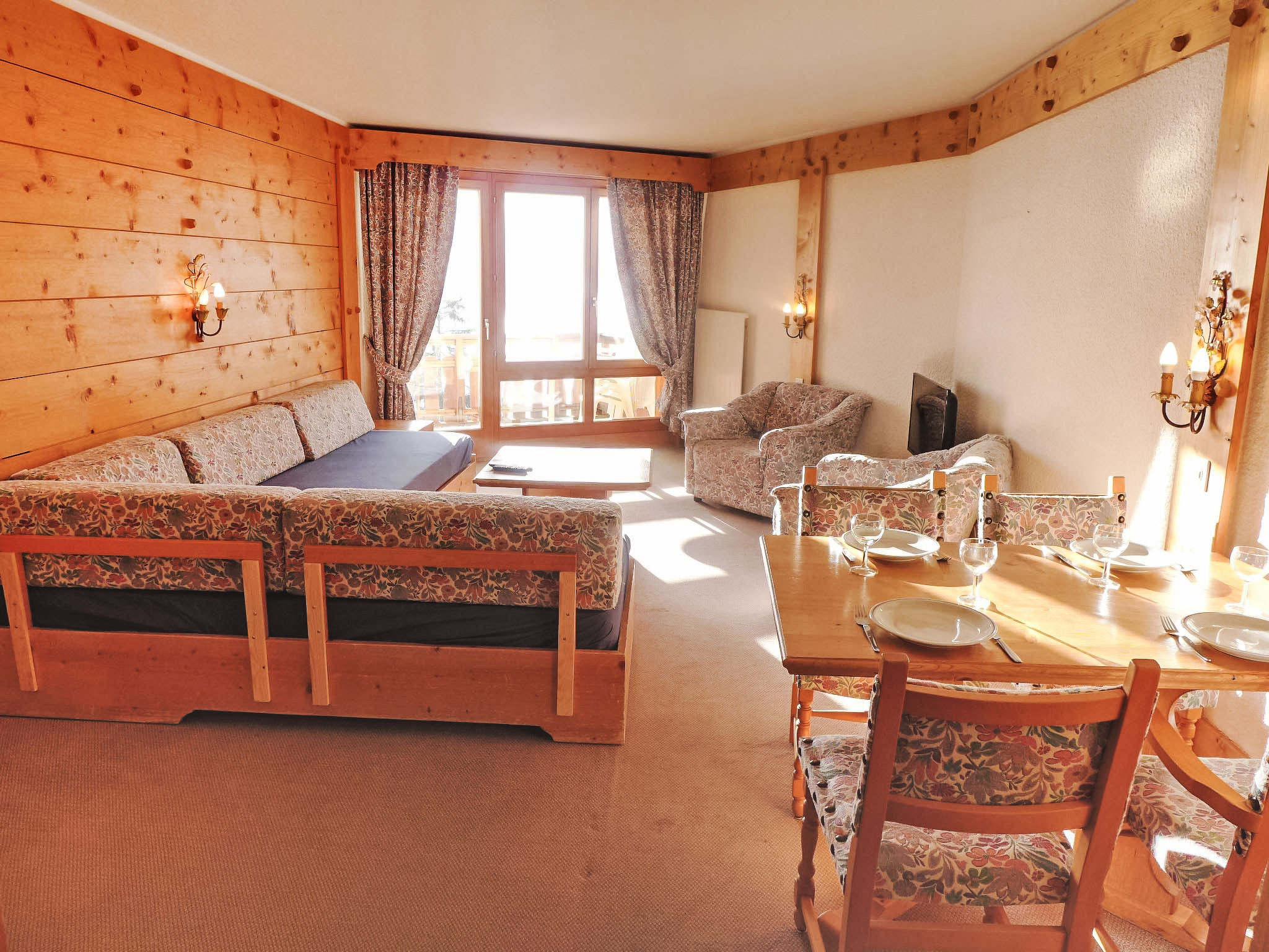 "Le Bristol A28", 2-Zimmer-Wohnung 56 m2 im 2. Stock. Geräumig, komfortabel und schön eingerichtet: grosses Wohn-/Schlafzimmer mit 2 Betten (90 cm), Esstisch, Küchenblock, Bad/WC und TV (Flachbildschirm). Ausgang zum Balkon, Richtung Süden. 1 Zimmer mit 1 Doppelbett (1 x 180 cm), Bad/WC. Ausgang zum Balkon, Richtung Osten und Richtung Norden. Kochnische (2 Glaskeramikplatten, Toaster, Mikrowelle, elektrische Kaffeemaschine, Kapseln für die Kaffeemaschine (Nespresso) extra, Racletteofen, Fondue Set (Käse)). Kleiner Balkon. Balkonmöbel. Sehr schöne Panoramasicht auf die Berge und das Tal. Zur Verfügung: Internet (WLAN, gratis). Bitte beachten: Nichtraucher-Unterkunft.