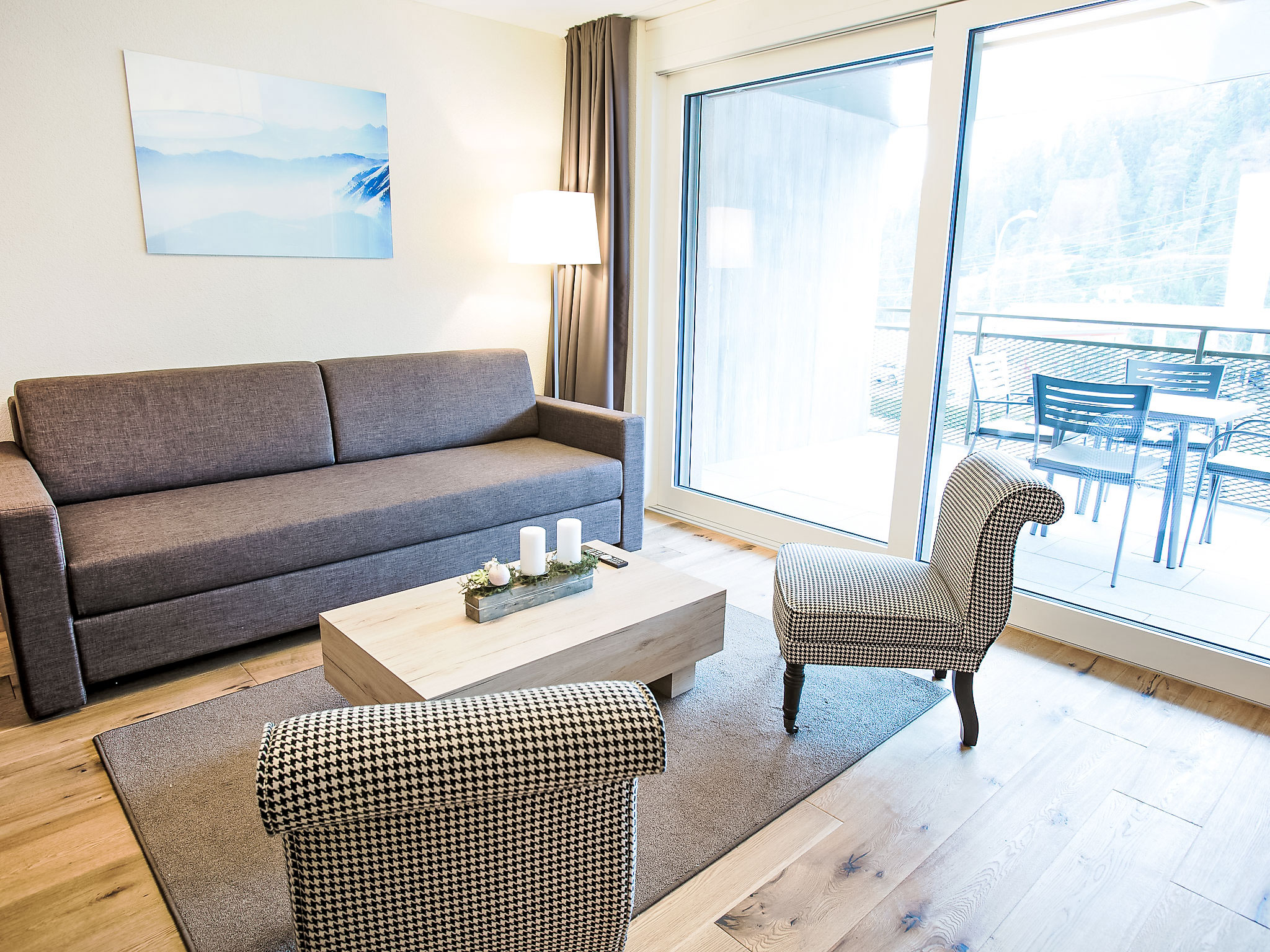 "Peaks Place 3.5 Classic", 3-Zimmer-Wohnung 70 bis 72 m2. Komfortabel und modern eingerichtet: Wohn-/Esszimmer mit 1 Diwanbett (80 cm, Länge 200 cm), 1 Wandklappbett (90 cm, Länge 200 cm), Kabel-TV (Flachbildschirm). 2 Doppelzimmer. Offene Küche (Backofen, Geschirrspüler, 4 Induktionskochplatten, Wasserkocher). Bad/WC, Dusche/WC. Balkon. Balkonmöbel, Abstellkammer. Schöne Sicht auf die Berge und die Landschaft. Zur Verfügung: Safe, Babybett, Haartrockner. Internet (Wireless LAN). Bitte beachten: Nichtraucher-Haus. Maximal 1 Haustier/Hund erlaubt.