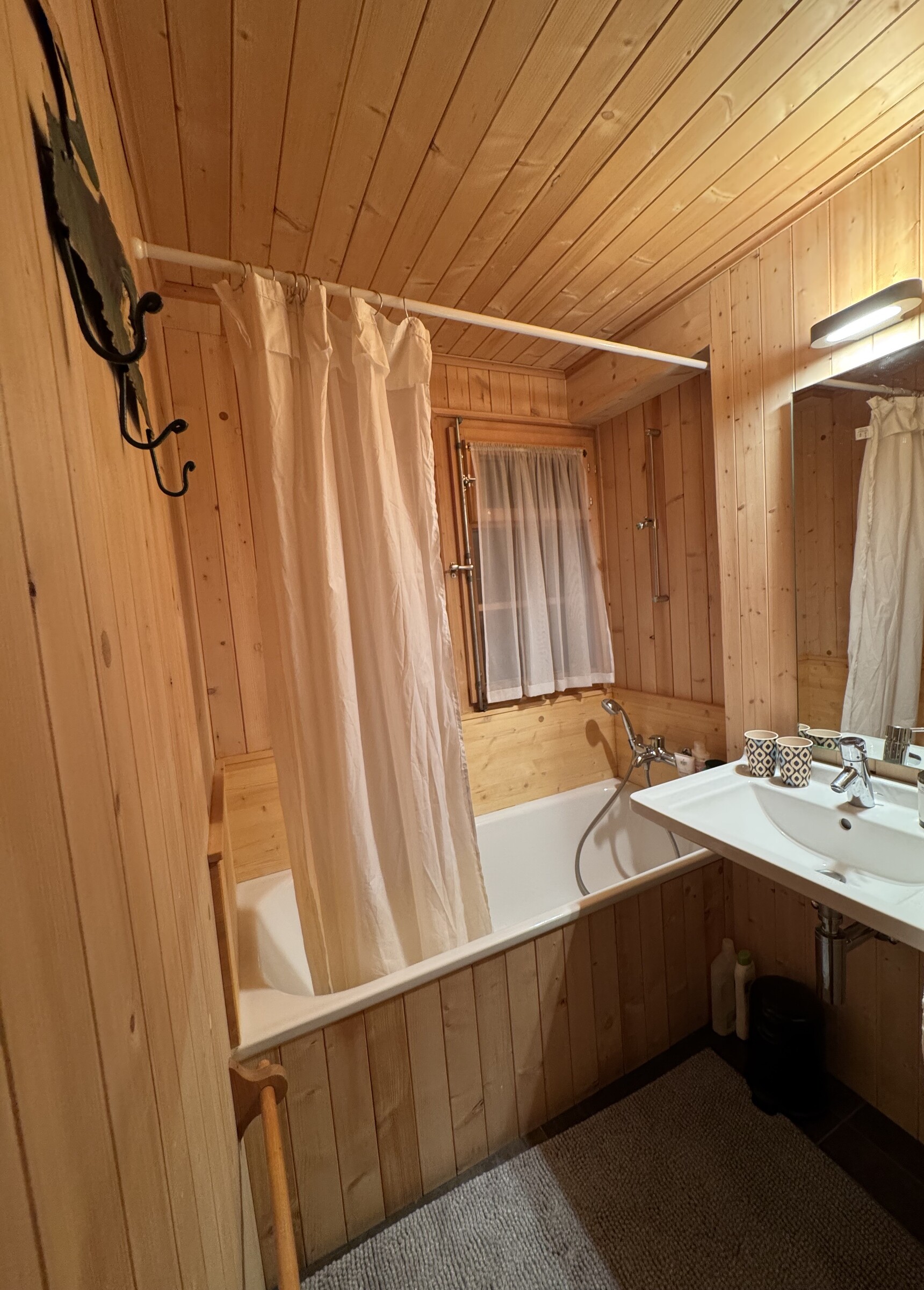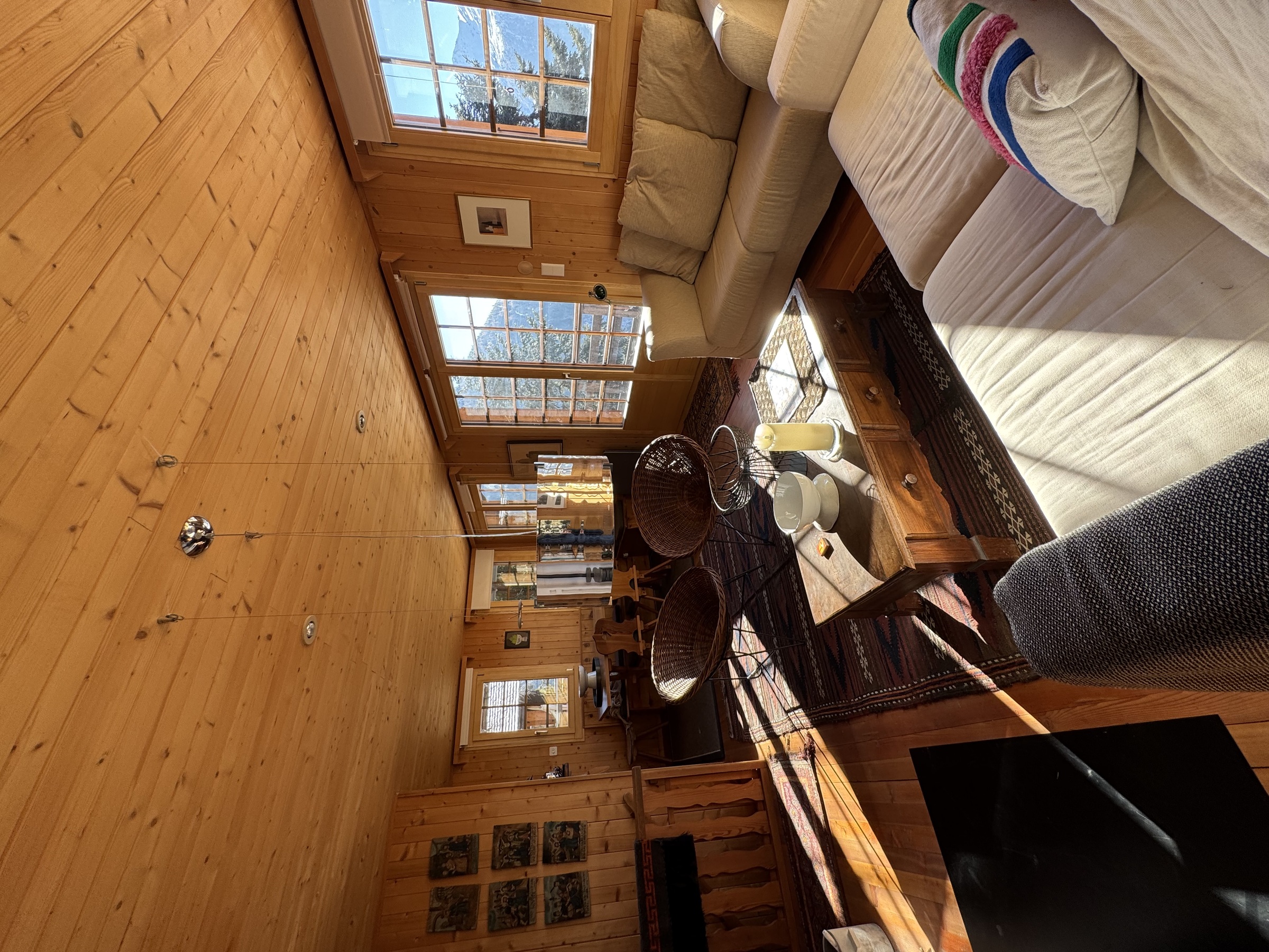 Gemütliches Chalet für 6 Personen, ruhig, Zugang zum Ski, mit herrlichem Blick auf das Matterhorn. -innerhalb: Helles Wohnzimmer mit Sofa, Kamin, Essbereich, TV-Bereich und Schlafsofa im Erdgeschoss – < Schlafzimmer /> Schlafzimmer: 3 Schlafzimmer: eines mit einem Doppelbett, eines mit 2 Einzelbetten, eines mit 2 Etagenbetten.-< / > Gesundheit: Erdgeschoss: Badezimmer mit Dusche und Toilette. Untergeschoss: Badezimmer mit Badewanne und WC.-< / > Küche: Elektroherd, Ofen, Dunstabzugsmaschine, Geschirrspüler, Wasserkocher, Nespresso-Maschine, Fondue-Kanne -verschieden: WLAN, zwei große Balkone mit Blick auf das Matterhorn. Waschbereich mit Waschmaschine, Trockner und Gefrierschrank. Zugang von der unteren Ebene, Eingang von der Garderobe -Zugang: 2 Parkplätze vor dem Chalet (4x4 oder Ketten im Winter) -