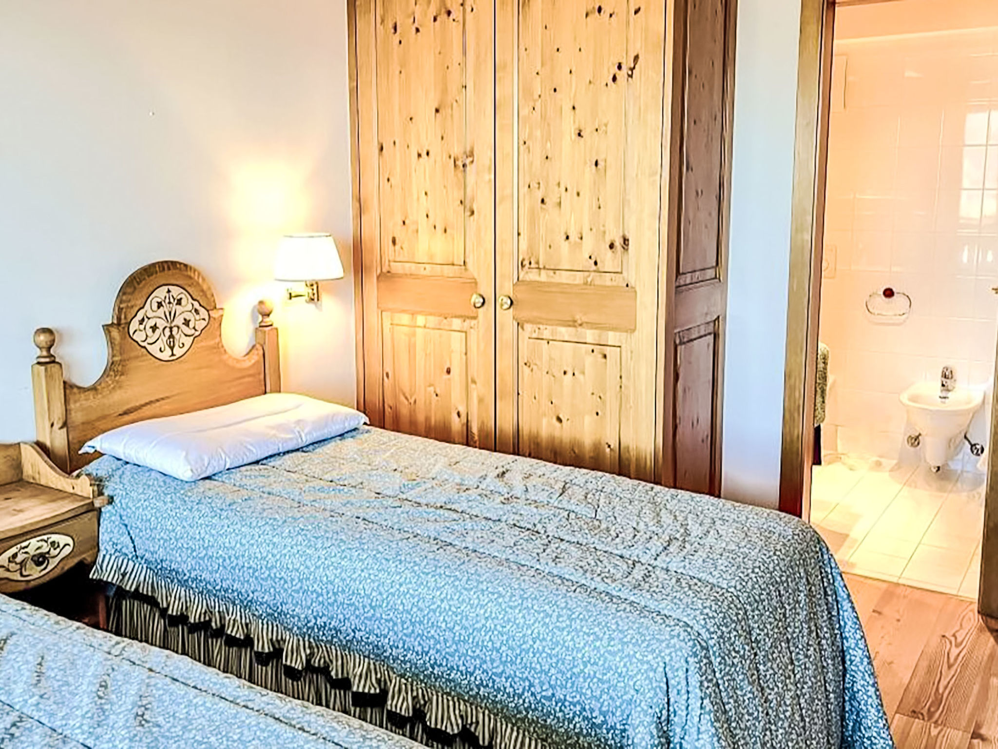 "Les Renardeaux 5", 2-Zimmer-Wohnung 60 m2 im 2. Stock. Geräumig und hell, sehr schön und geschmackvoll eingerichtet: Wohn-/Esszimmer mit offenem Kamin und Kabel-TV. Ausgang zum Balkon. 1 Zimmer mit 2 Betten (90 cm, Länge 200 cm), Bad/Bidet/WC. Ausgang zum Balkon. Offene Küche (Backofen, Geschirrspüler, 4 Glaskeramikplatten, Toaster, Wasserkocher, Mikrowelle, Tiefkühler, elektrische Kaffeemaschine, Kapseln für die Kaffeemaschine (Nespresso) extra). Sep. WC. Parkettboden. Grosser Balkon 18 m2, Südwestlage. Balkonmöbel. Herrliche Sicht auf die Berge und das Tal. Zur Verfügung: Haartrockner. Internet (WLAN, gratis). Garage. Bitte beachten: Nichtraucher-Unterkunft.
