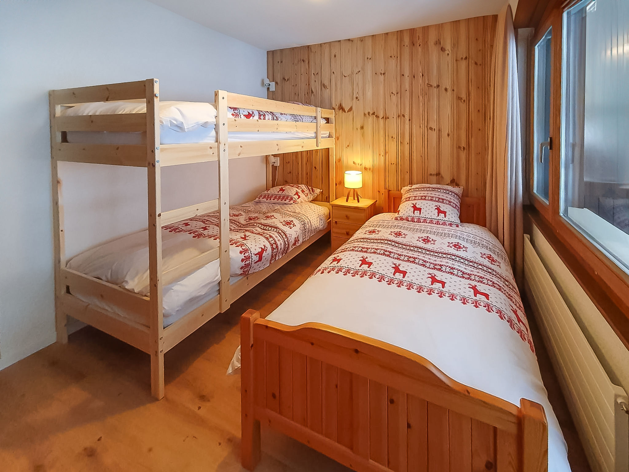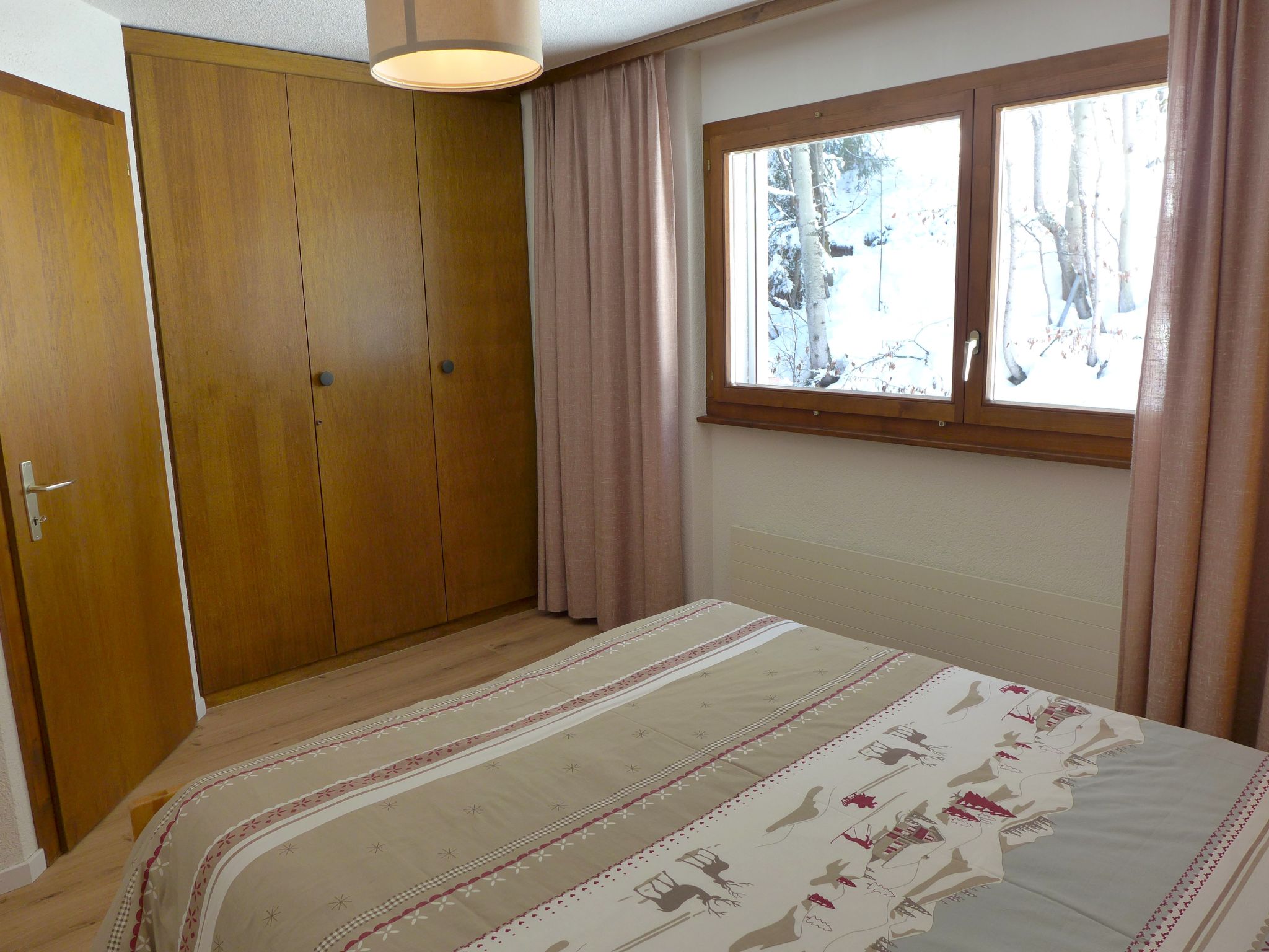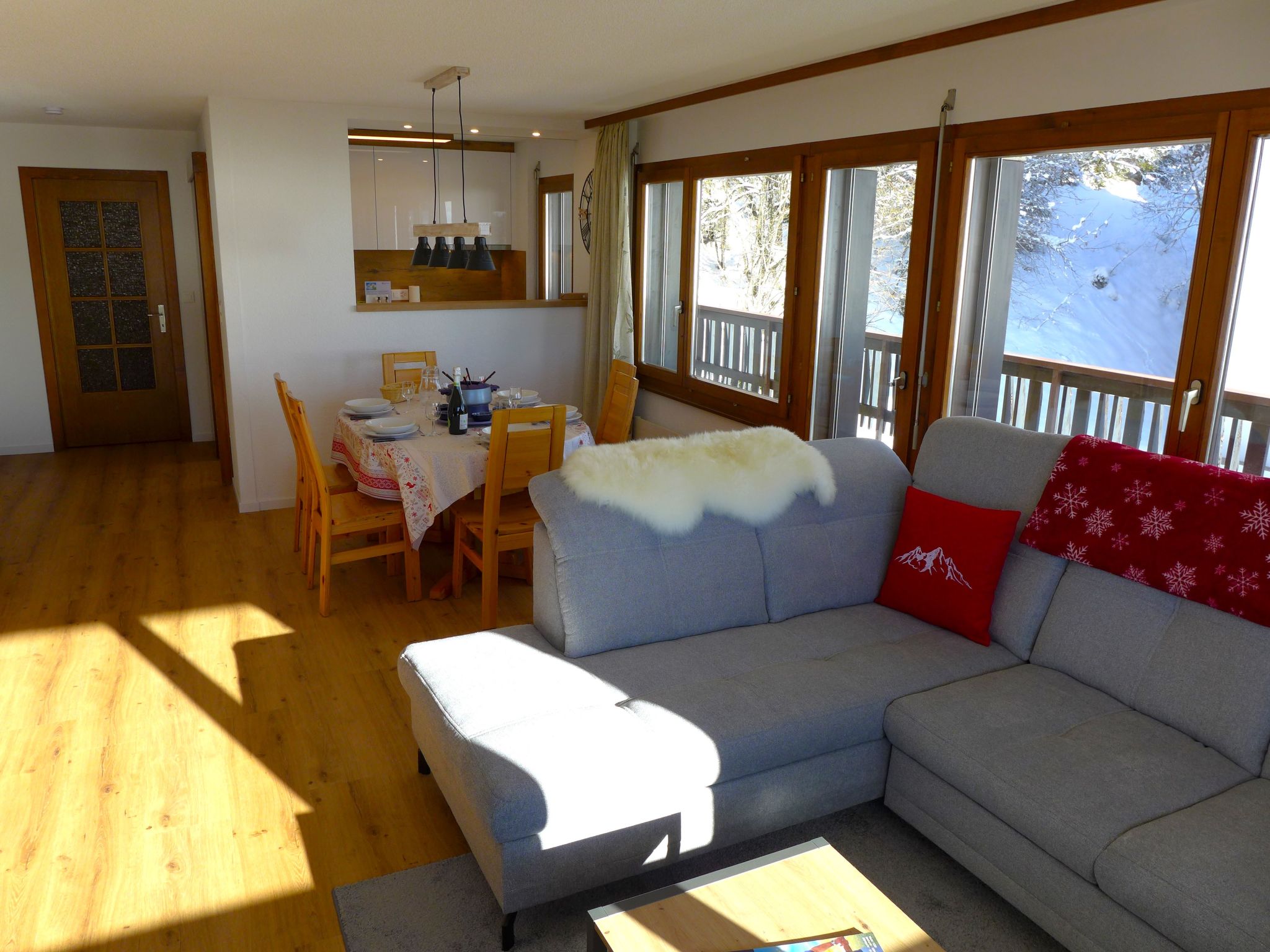 "Mandarin B 19", 3-Zimmer-Wohnung 80 m2 im 2. Stock. Hell, vollständig renoviert im Jahre 2023, komfortabel und geschmackvoll eingerichtet: Wohn-/Esszimmer mit offenem Kamin, Dusche/WC, Kabel-TV und Flachbildschirm. Ausgang zum Balkon, Richtung Süden und Richtung Osten. 1 Zimmer mit 1 franz. Bett (160 cm, Länge 200 cm) mit Bad/WC. 1 Zimmer mit 1 Bett (90 cm, Länge 200 cm), 1 x 2 Etagenbetten (90 cm, Länge 200 cm). Ausgang zum Balkon, Richtung Norden. Offene Küche (Backofen, Geschirrspüler, 4 Glaskeramikplatten, Toaster, Wasserkocher, Mikrowelle, Tiefkühler, elektrische Kaffeemaschine, Kapseln für die Kaffeemaschine (NESPRESSO) extra, Racletteofen, Fondue Set (Chinoise, Käse)). Grosser Balkon 30 m2, Südlage und Ostlage. Balkonmöbel. Sehr schöne Sicht auf die Berge und die Landschaft. Zur Verfügung: Kinderhochstuhl, Babybett bis 2 Jahre, Haartrockner. Internet (Wireless LAN, gratis). Garage Nr. 10 (1 Auto), Höhe 189 cm, Breite 235 cm. Bitte beachten: Nichtraucher-Unterkunft. Rauchmelder. Faltbares Babybett ohne Bettwäsche und ohne Bezüge.