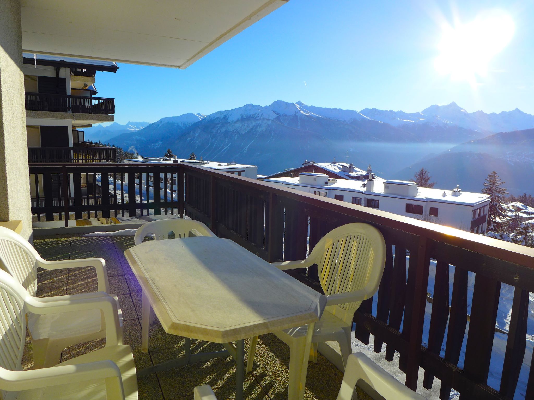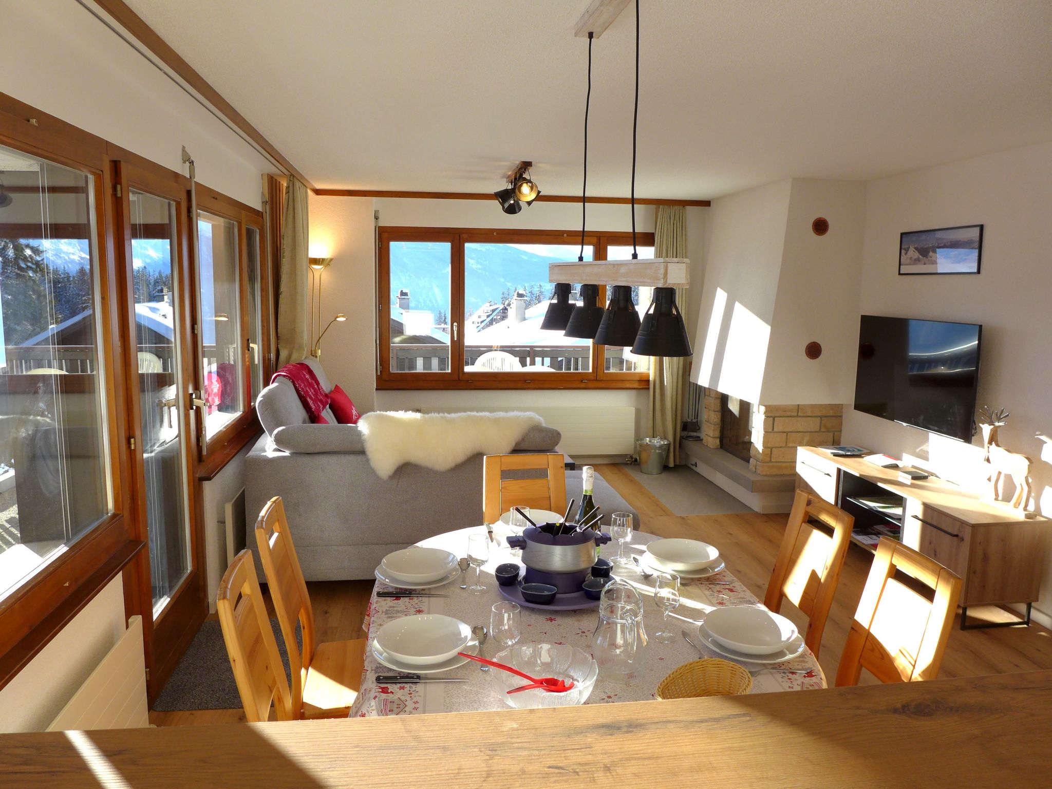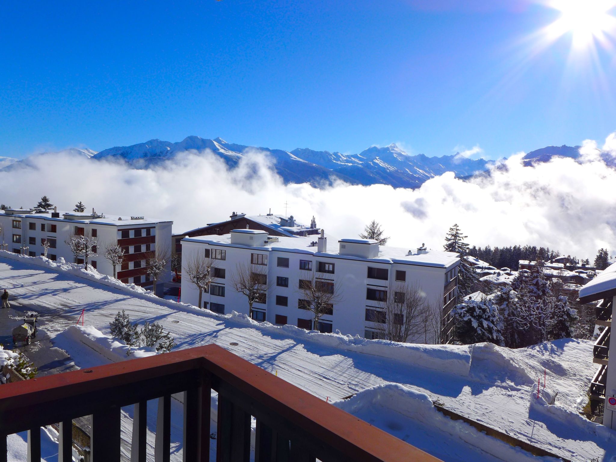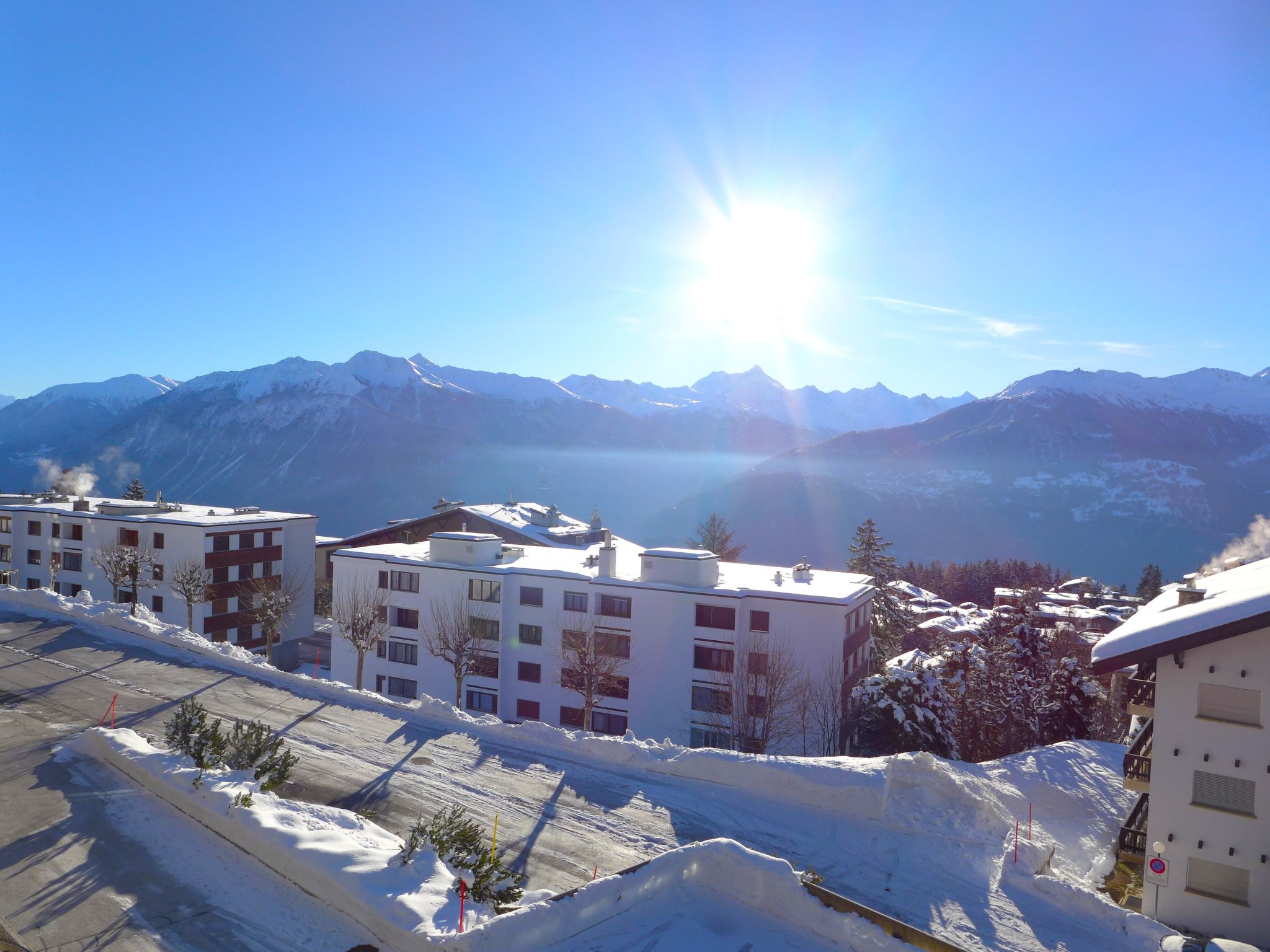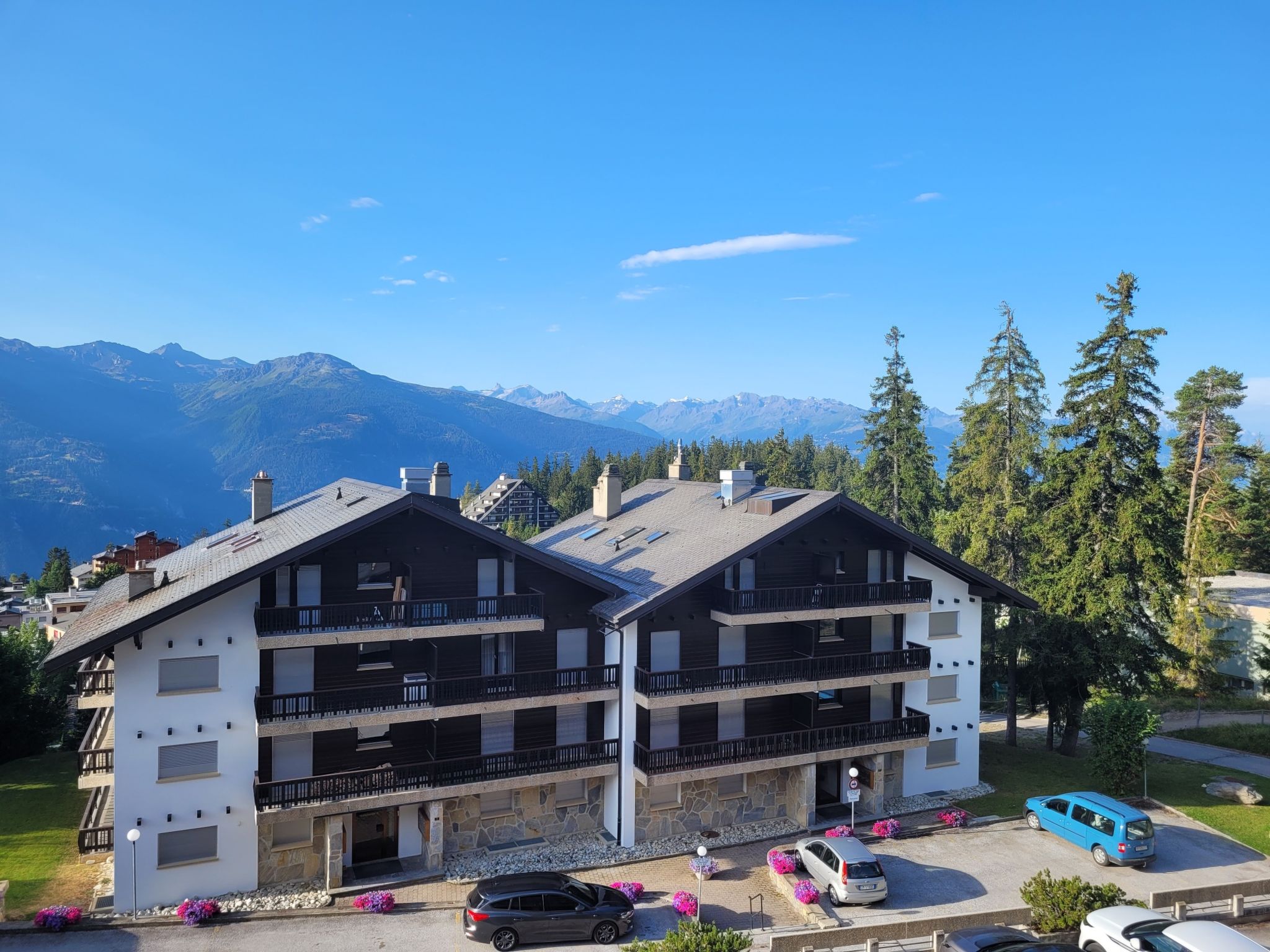 Gemütliche Residenz "Mandarin", auf 4 Stockwerken. Im Ortsteil Les Arolles, 300 m vom Zentrum von Montana, ruhige, sonnige Lage, 650 m vom See, 850 m vom Skigebiet, Richtung Süden. In der Anlage: Fahrstuhl, Skiraum, Zentralheizung, Waschmaschine, Wäschetrockner (zur Mitbenutzung, extra), Trockenraum. Parkplatz (beschränkte Anzahl). Einkaufsgeschäft, Supermarkt, Restaurant, Bäckerei 350 m, Zentrum zu Fuss in 4 Minuten erreichbar, Bushaltestelle "Ycoor" 350 m, Bahnstation "Funiculaire Montana Gare" 1.1 km, Badesee "Moubra" 1.9 km, See Grenon 650 m. Golfplatz (18 Loch) 2 km, Tennis 1.8 km, Tennishalle 1.8 km, Reitstall 1.4 km, Skisportanlagen 450 m, Skibushaltestelle, Skischule, Eisfeld 400 m. Nahe gelegene Sehenswürdigkeiten: Casino 400 m. Bitte beachten: Gratis Skibus.