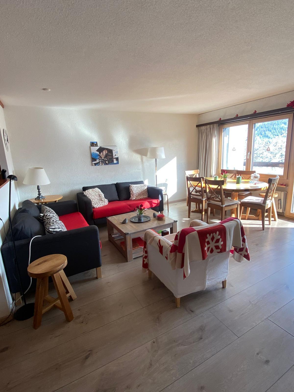 Das Appartementhaus Waldrand liegt ca. 3 Gehminuten vom Sessellift entfernt. Zu den Geschäften und ins Dorf ist es ca. 1 km. Die Wohnung bietet Platz für max. 7 Personen und befindet sich im Dachgeschoss. Der Ausblick am Balkon ist zu einem hübschen kleinen Lärchenwald gerichtet. Es gibt einen reservierten Parkplatz vor dem Haus. Im Sommer kann man den hauseigenen Picknickplatz mit Grill/Brunnen/Holztisch und Bänken benutzen.