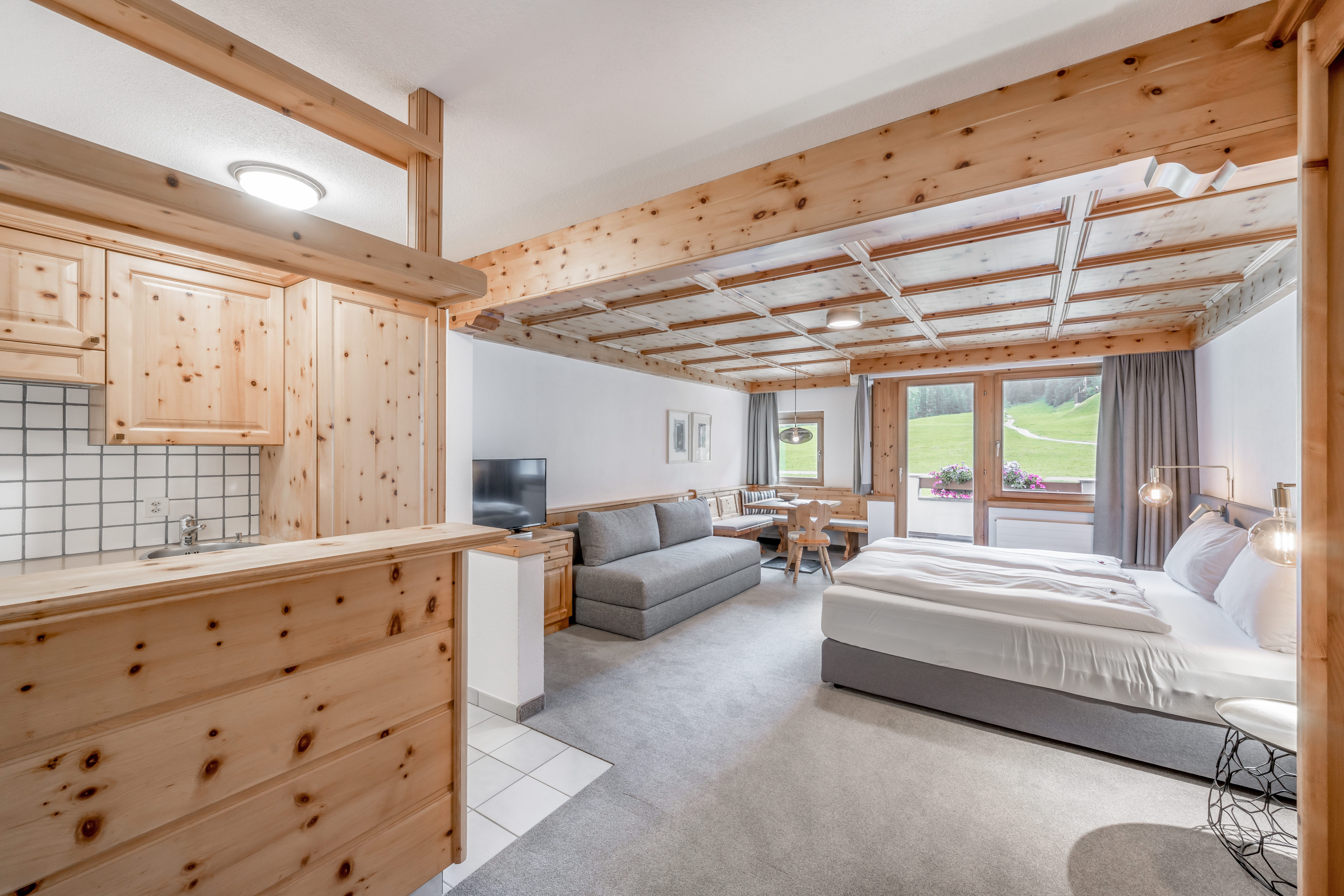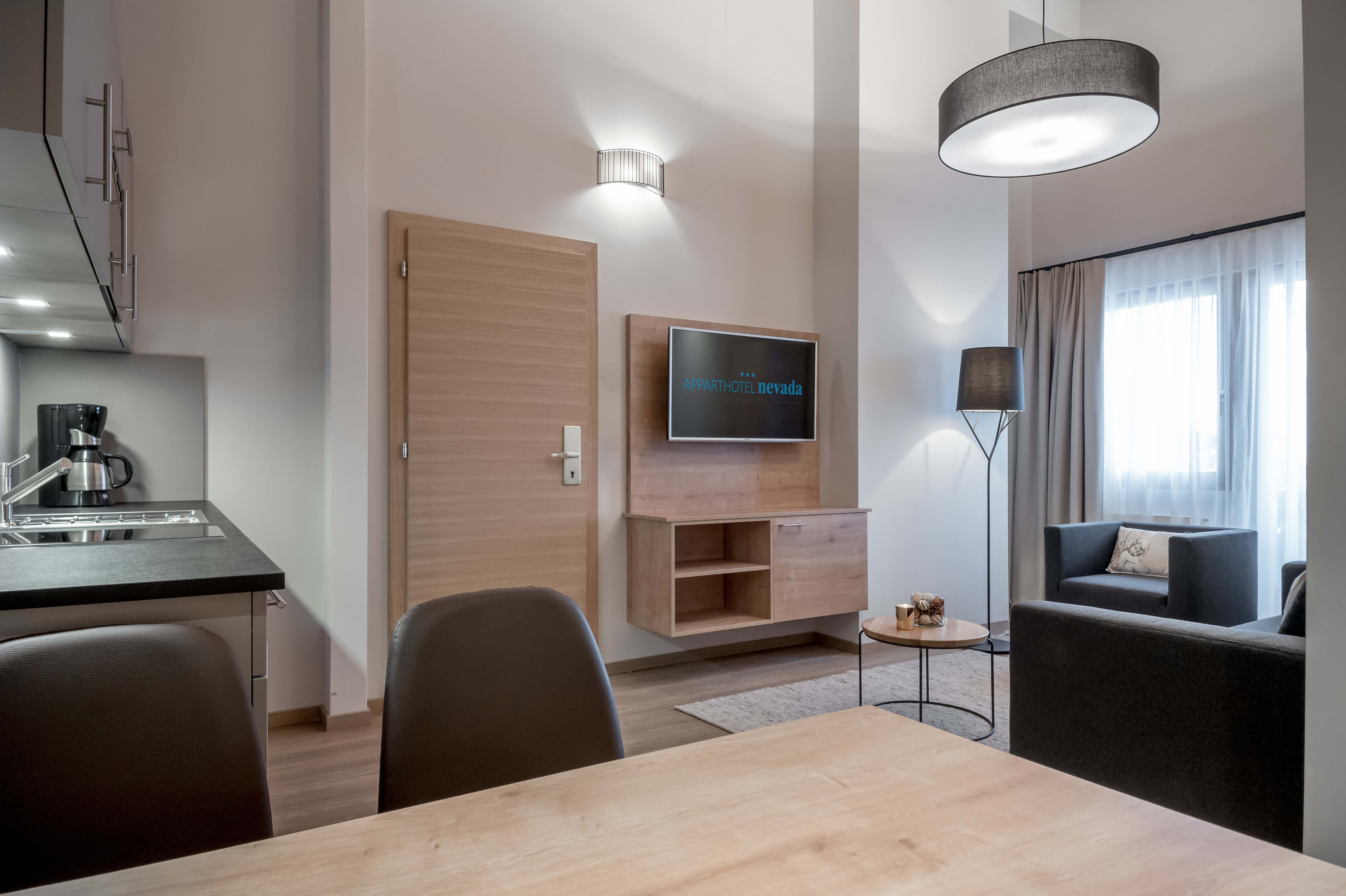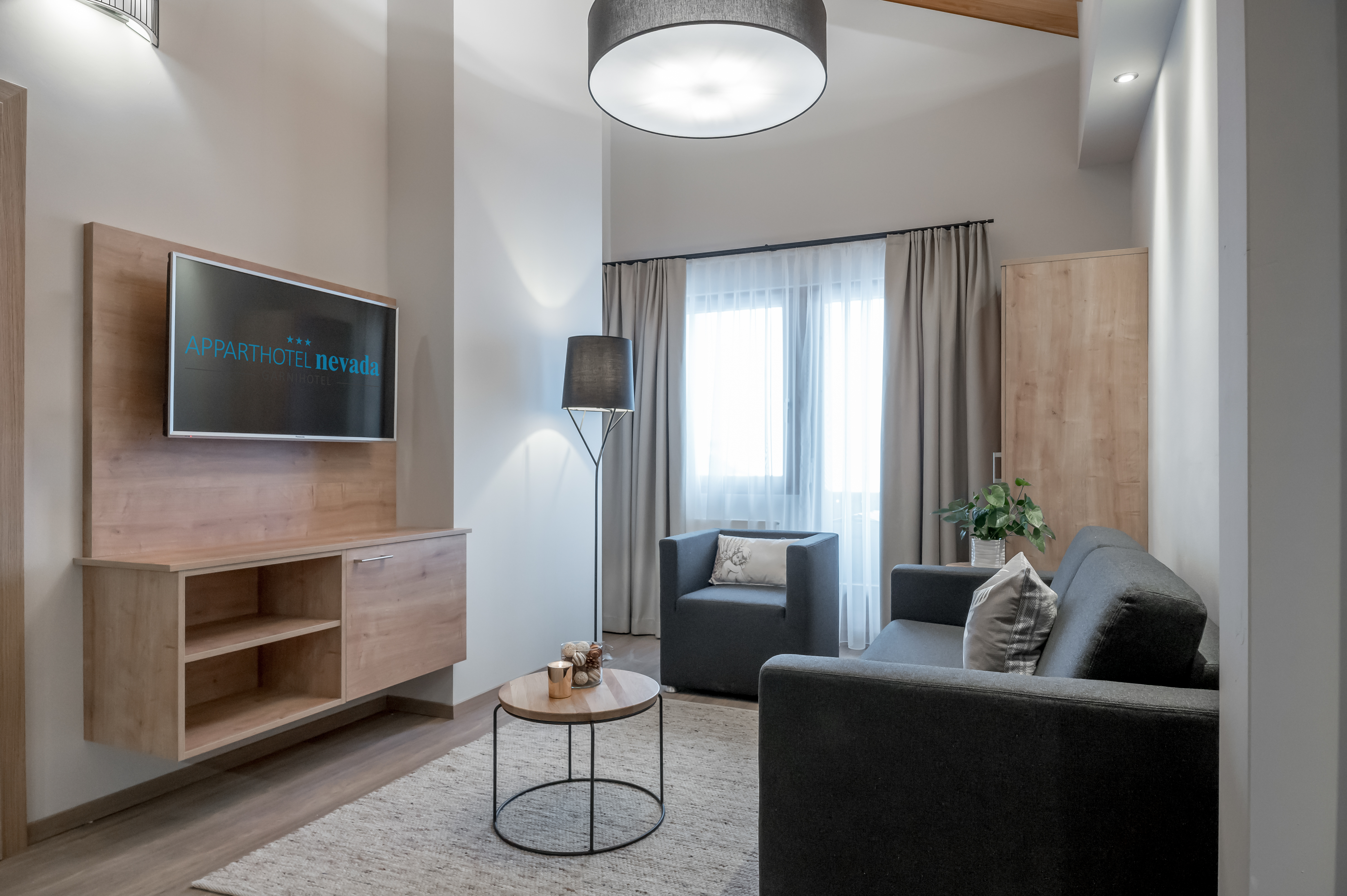 Vom ersten Moment an werden Sie die besondere Gastfreundschaft im Hotel NEVADA spüren. Geniessen Sie die besondere Atmosphäre unseres Hauses. Und wohnen Sie in den liebevoll gestalteten Zimmern. Doppelzimmer Süd und Nord verfügen über Bad/WC oder Dusche/WC, Küche/Kitchenette, Radio, Sat-TV, Balkon, Durchwahltelefon, Internetanschluss (WLan/WiFi)kostenlos; Nach einem erlebnisreichen Tag an der frischen Luft verheissen das grosszügige Erlebnishallenbad oder die Wellness- und Beautylandschaft "Alpienne SPA" traumhafte Entspannung für Körper und Seele. Die unterirdische Verbindung mit beiden Partnerhotels macht's möglich.