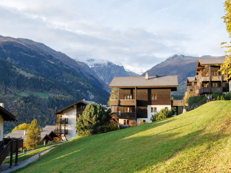 Gemütliches, rustikales Feriendorf "Aragon", 1'200 m.ü.M.. 21 Häuser im Ferienresort. Am Ortsrand, 500 m vom Zentrum von Ernen, ruhige, sonnige Lage am Hang, 4 km vom Skigebiet. Zur Mitbenutzung: Tischtennis, Grill, Feuerstelle, Kinderspielplatz. Im Hause: Einstellraum für Fahrräder, Skiraum, Zentralheizung, Waschmaschine, Wäschetrockner (zur Mitbenutzung, extra). Zufahrt bis zum Grundstück (Bergstrasse). Im Winter bitte Schneeketten mitbringen, im Winter 4x4 empfohlen. Gemeinschaftsgarage. Einkaufsgeschäft 500 m, Bushaltestelle 100 m. Golfplatz (18 Loch) 25 km, Tennis 4 km, Tennishalle 4 km, Sportzentrum 4 km, Gondelbahn 4 km, Skisportanlagen 4 km, Skiverleih 4 km, Skibushaltestelle 100 m, Skischule 4 km, Langlaufloipe 4 km. Bekannte Skigebiete sind gut erreichbar: Aletsch Arena 4 km, Bellwald 12 km. Wandergebiete: Landschaftspark Binntal 10 km. Die neue Hängebrücke verbindet die beiden Wandergebiete von Ernen und Bellwald (zum Gommer Höhenweg) sowie die Anbindung der nationalen Veloroute Nr.1 (Rhoneroute von Gletscher- bis Genfersee). Zwischen Ernen - Mühlebach bringt die Brücke die direkte Verbindung an die Matterhorn Gotthard Bahn. mit der Gästekarte erhalten Sie diverse Vergünstigungen und gratis Angebote in der Region.